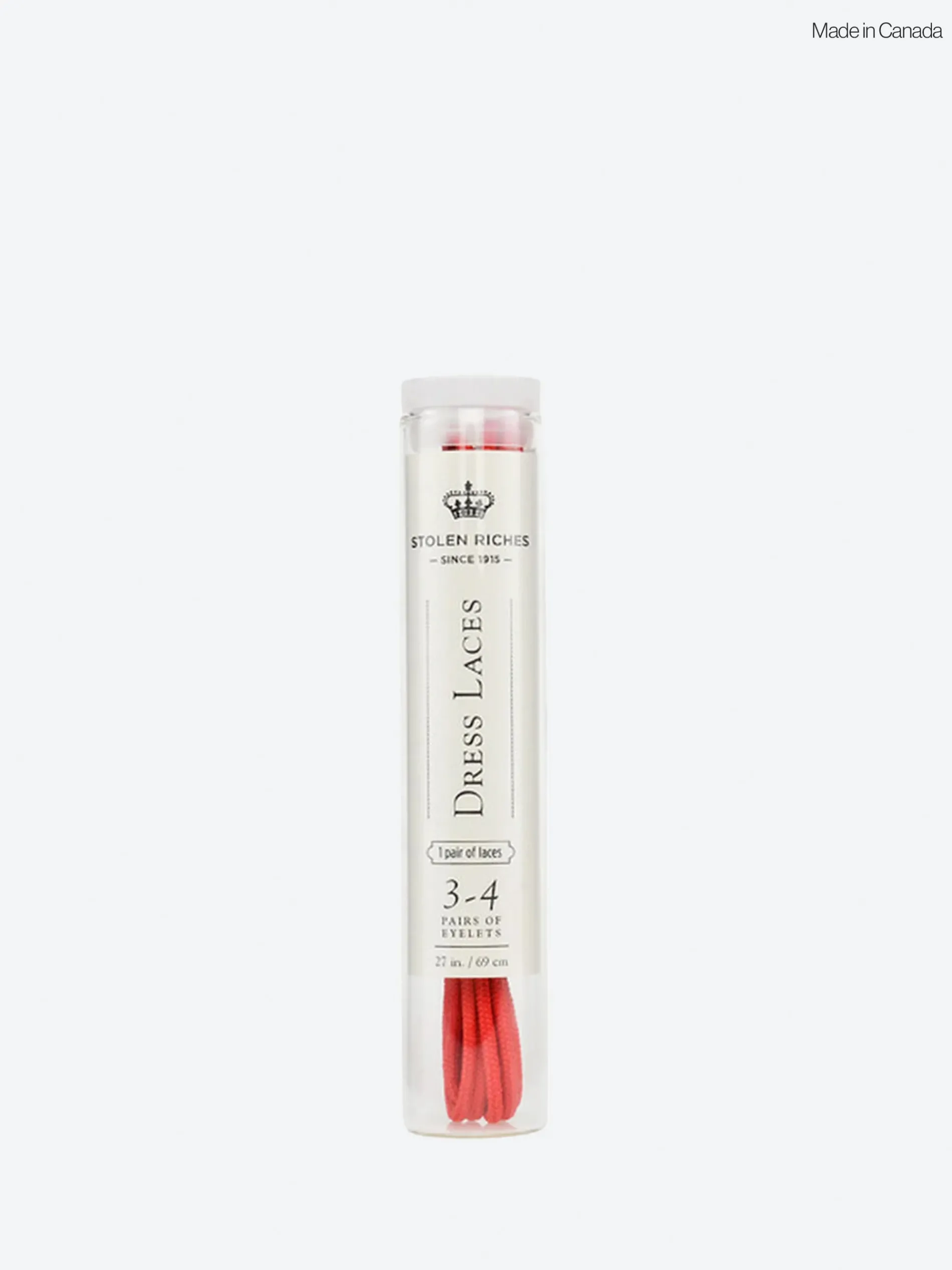 Stolen Riches dress shoe laces, made using recycled plastic bottles. Strength tested to over 210lbs and guaranteed not to break.