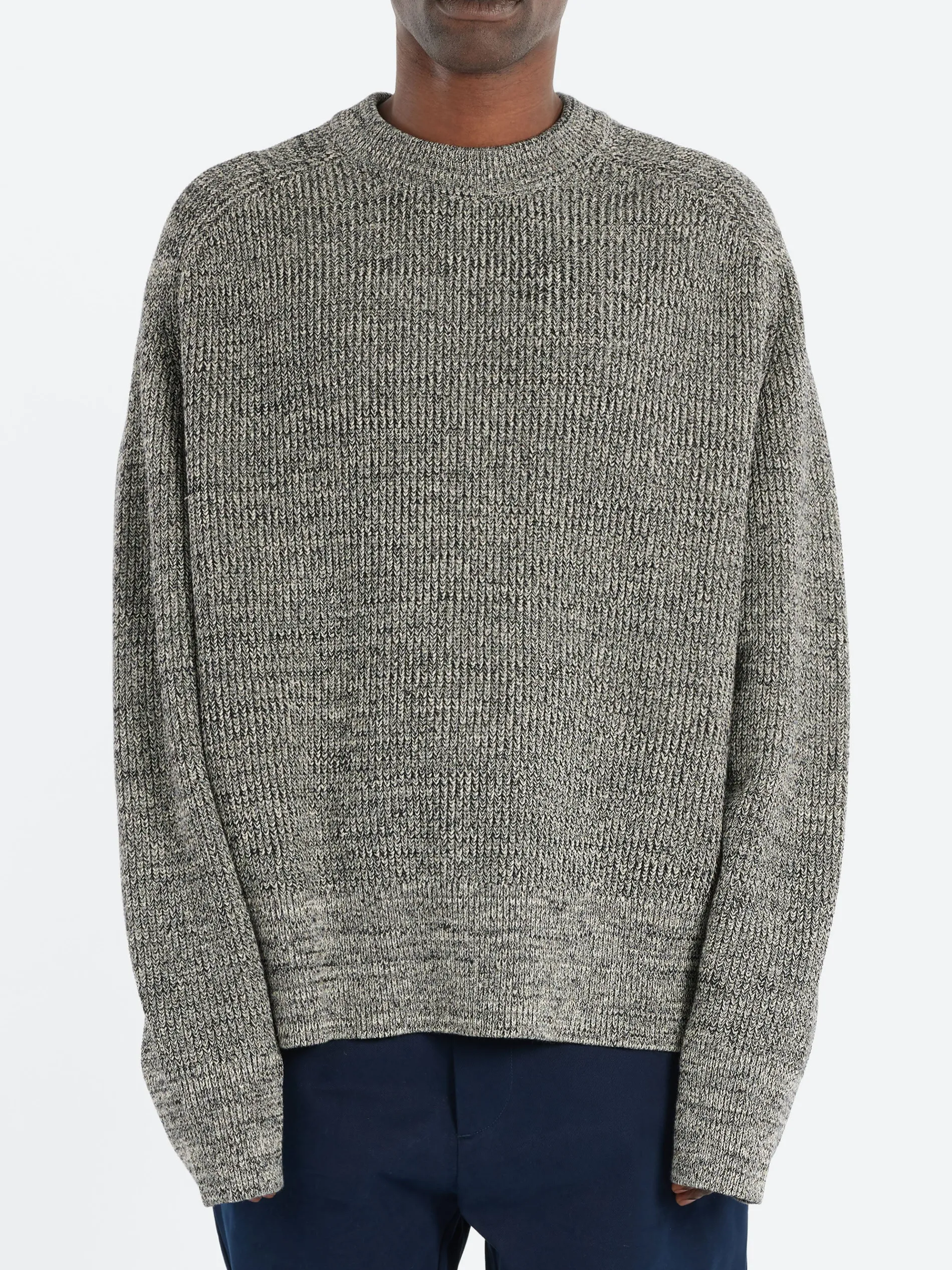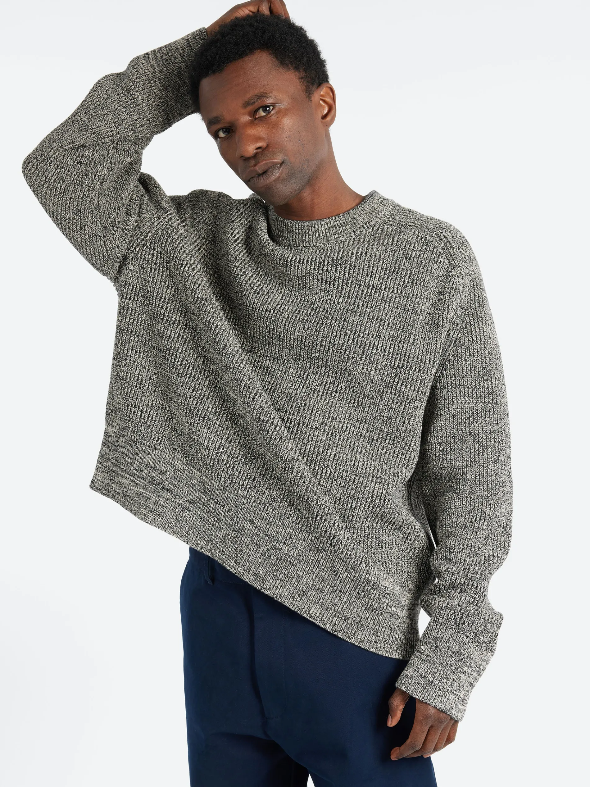 With a chunky, textured rib knitted from a matte cotton yarn, Coe is a classic crew neck in a substantial weight. Its boxy shape is complemented by a casual saddle shoulder, which together create a relaxed, laidback appeal.