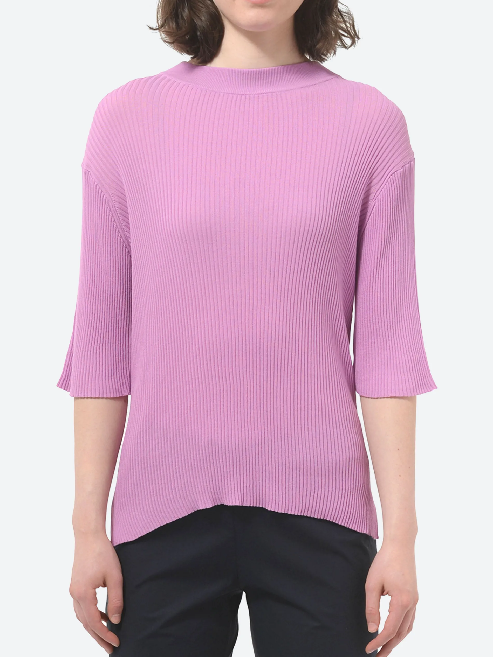 Studio Nicholson half sleeve delicate 18 gauge knit top made from a cotton crepe.