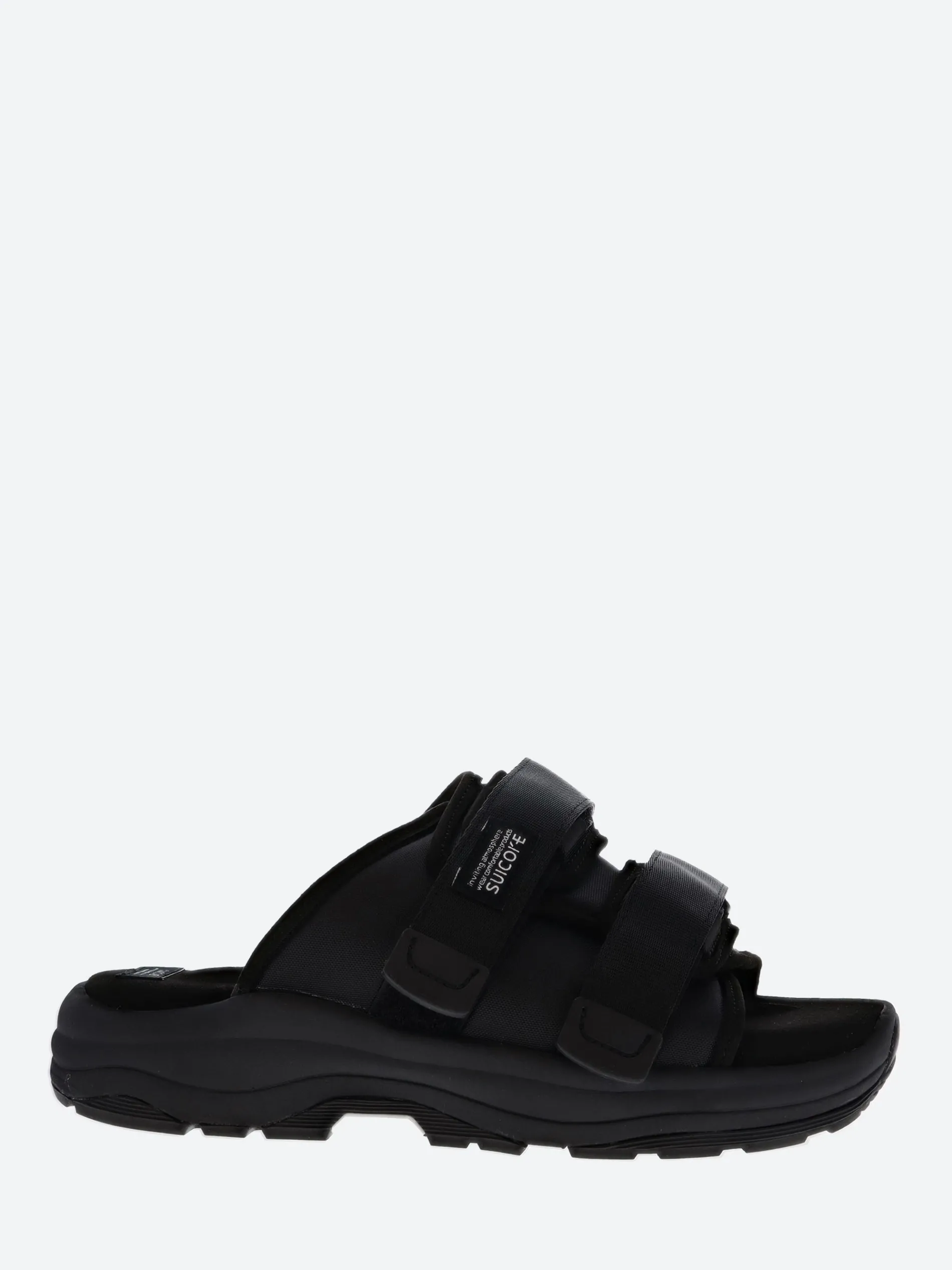 Suicoke MOTO RUN sandals with a full-coverage upper that is secured with double velcro straps. The antibacterial EVA footbed provides cushioned comfort.