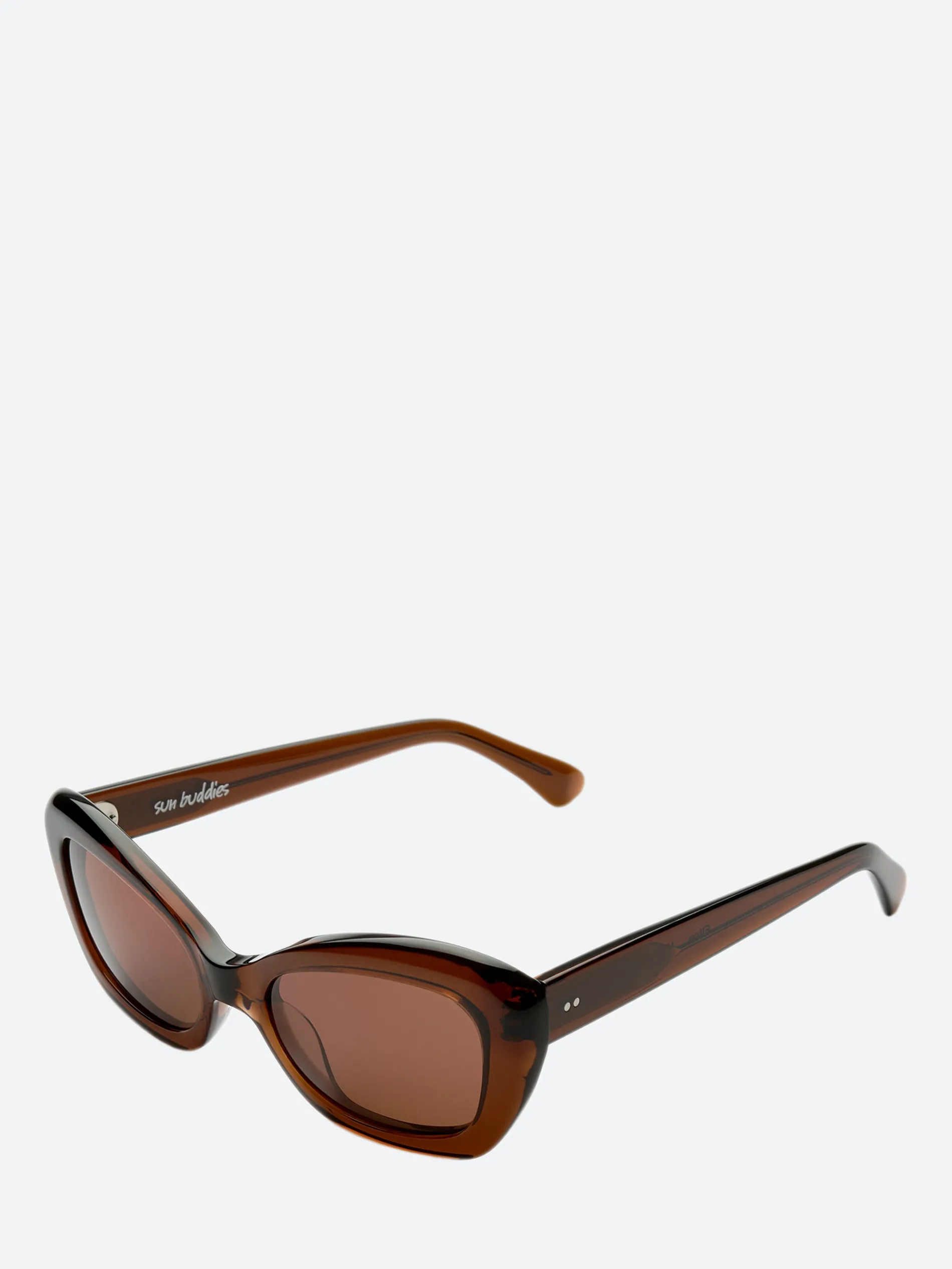 Transparent, slightly thicker square cat eye frame with rounded corners in a brown colorway, handmade of Italian acetate.