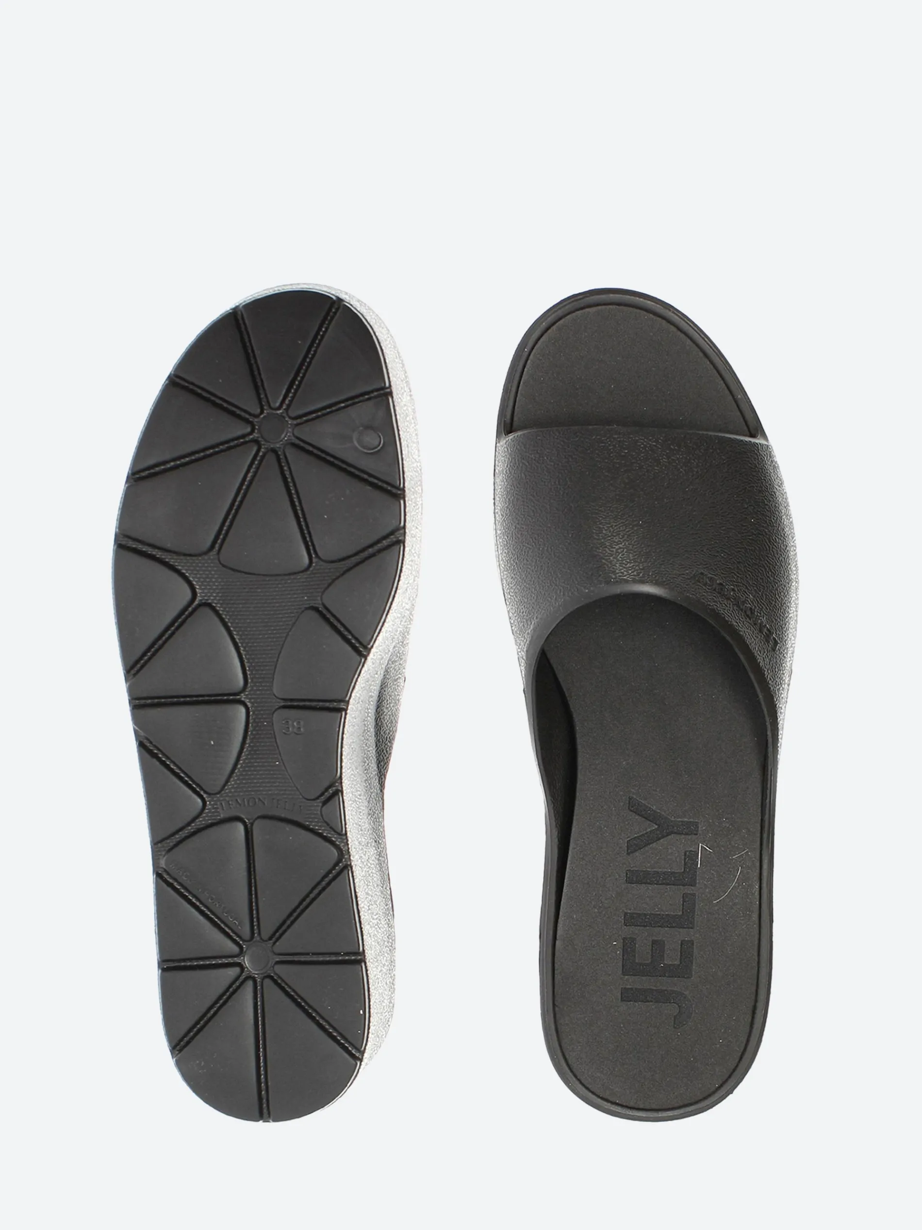 Platform slides in black. Elegant, lightweight and super comfortable thanks to the memory foam special feature.