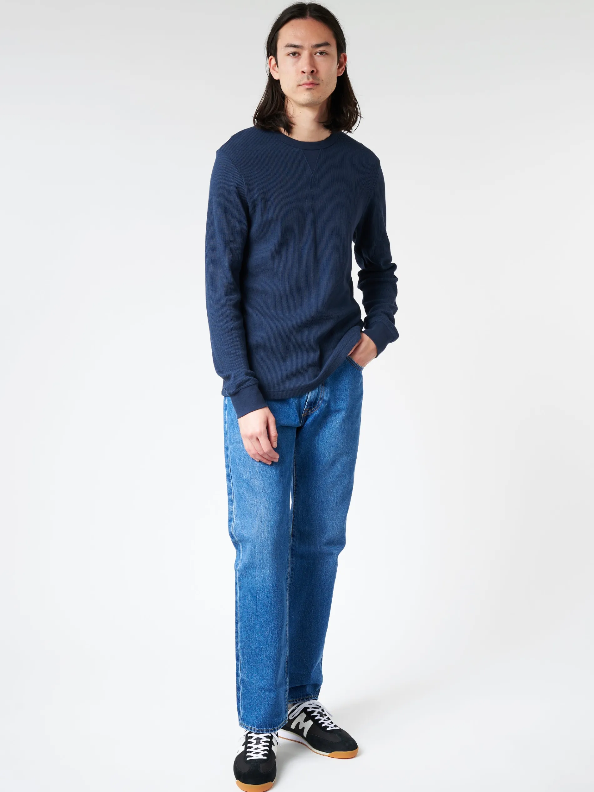 A lightweight, long sleeve T-shirt, made with a cotton waffle fabric, specially developed for a soft handle. Crafted from extra-long staple Supima cotton which is sustainably grown and traceable to a single Californian farm.