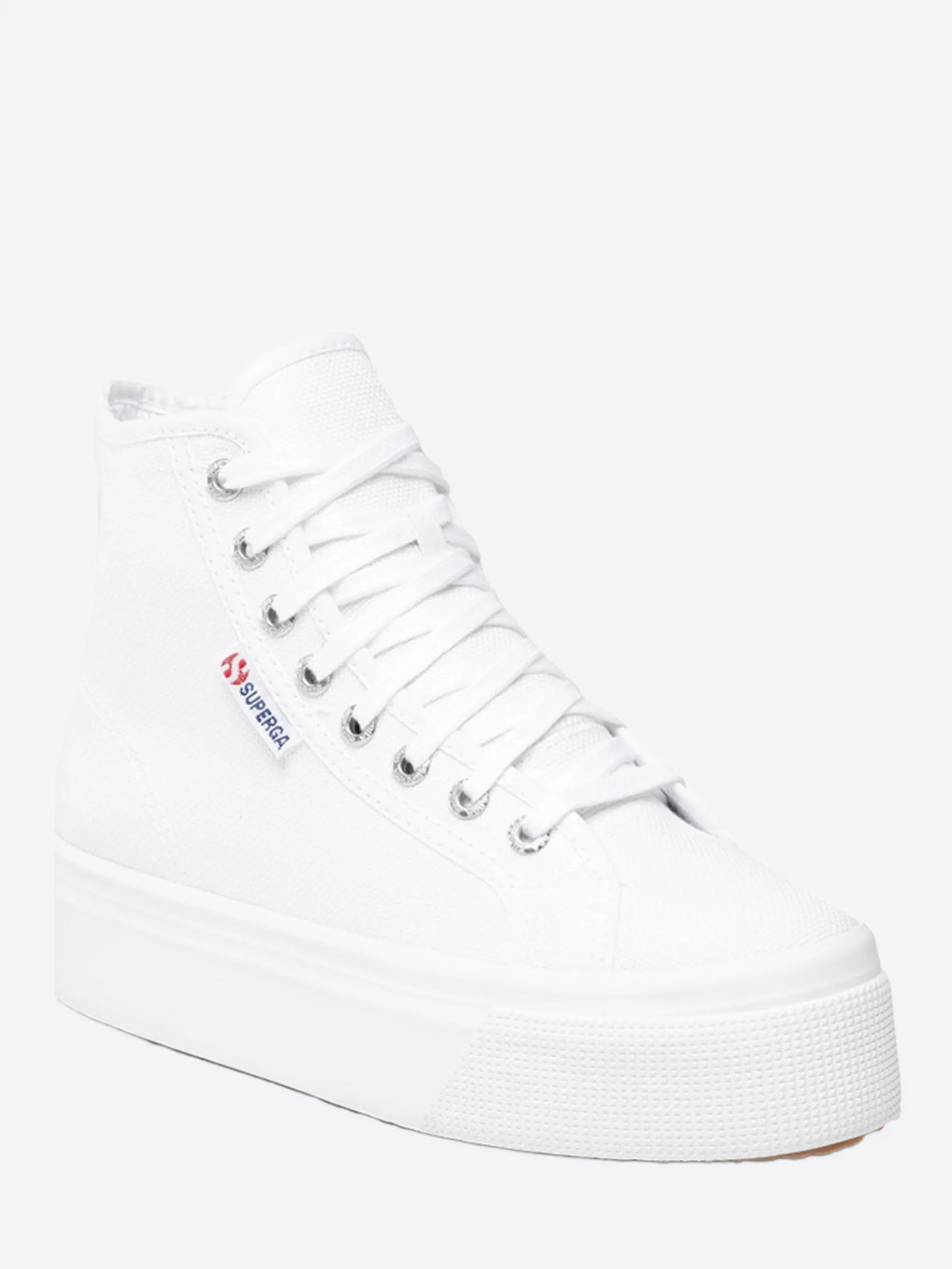The Superga Hi Top is a cross between their classic tennis shoe shape, and a platform shoe, featuring a chunky vulcanized rubber sole for extra height.