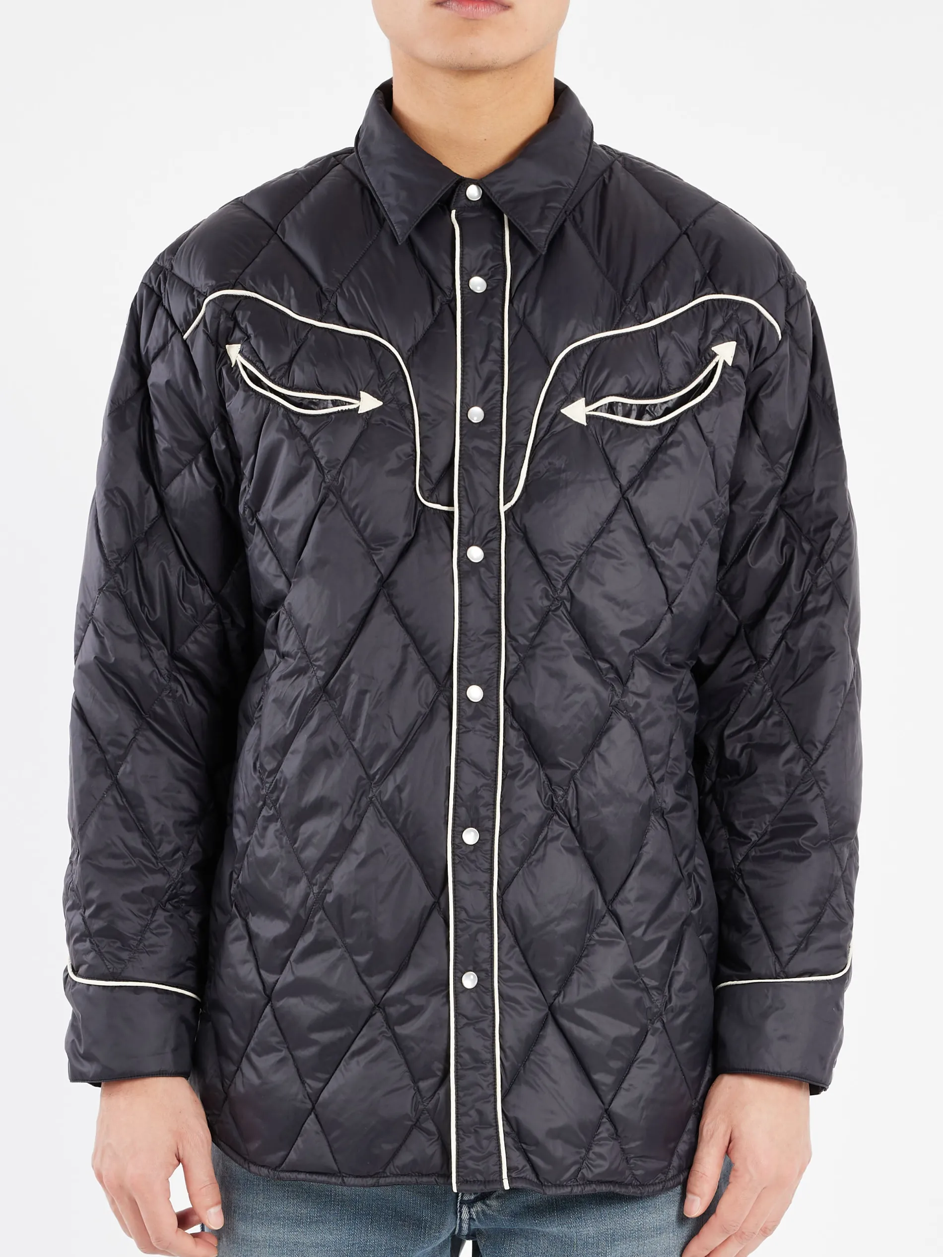 TAION shirt down jacket with western-style piping and diamond quilting. It can be stored compactly and is convenient to carry. Perfect for going out and traveling.