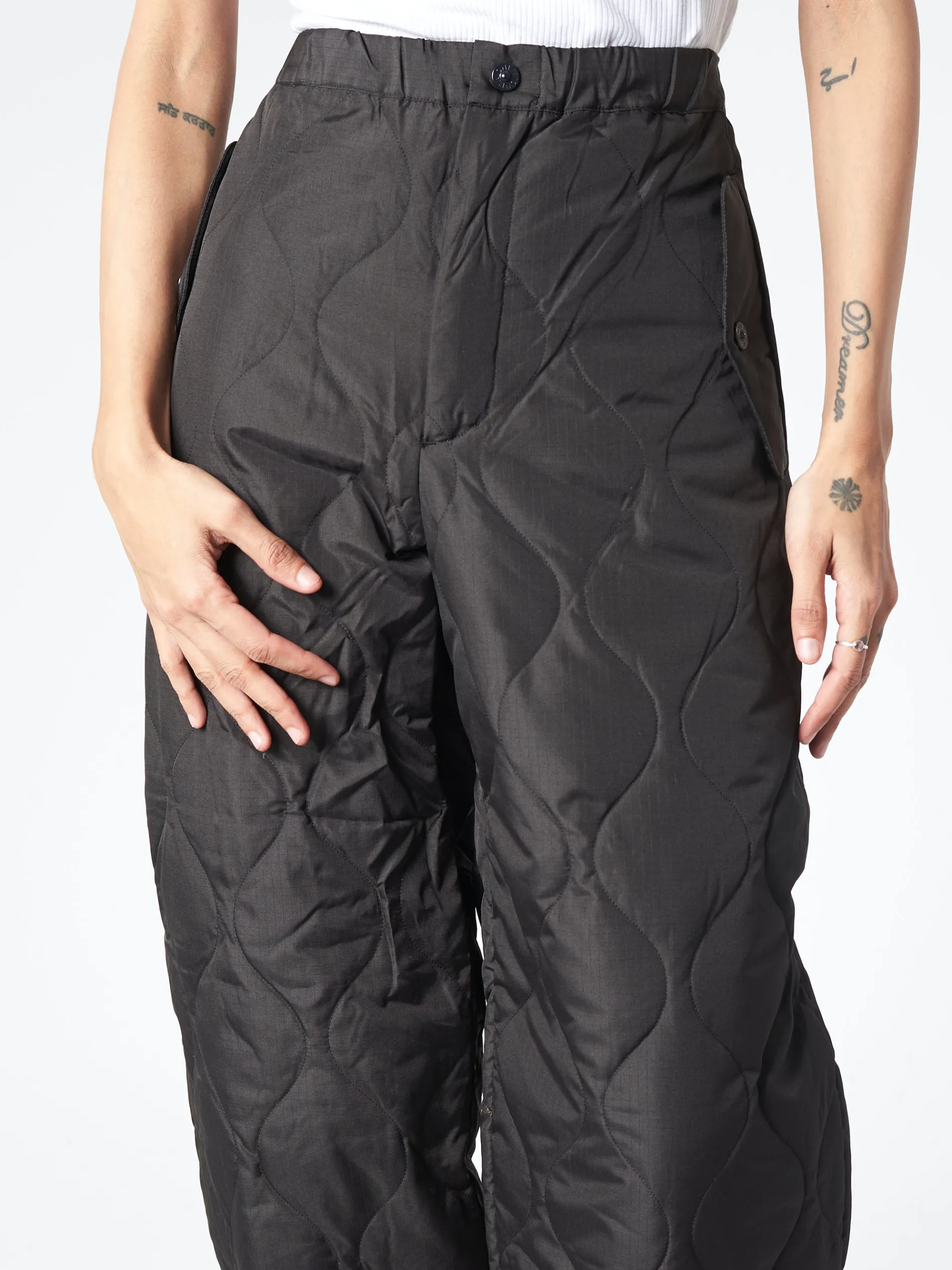 TAION military down pants with a semi-wide silhouette. The comfortable voluminous feel goes perfectly well with winter outerwear.