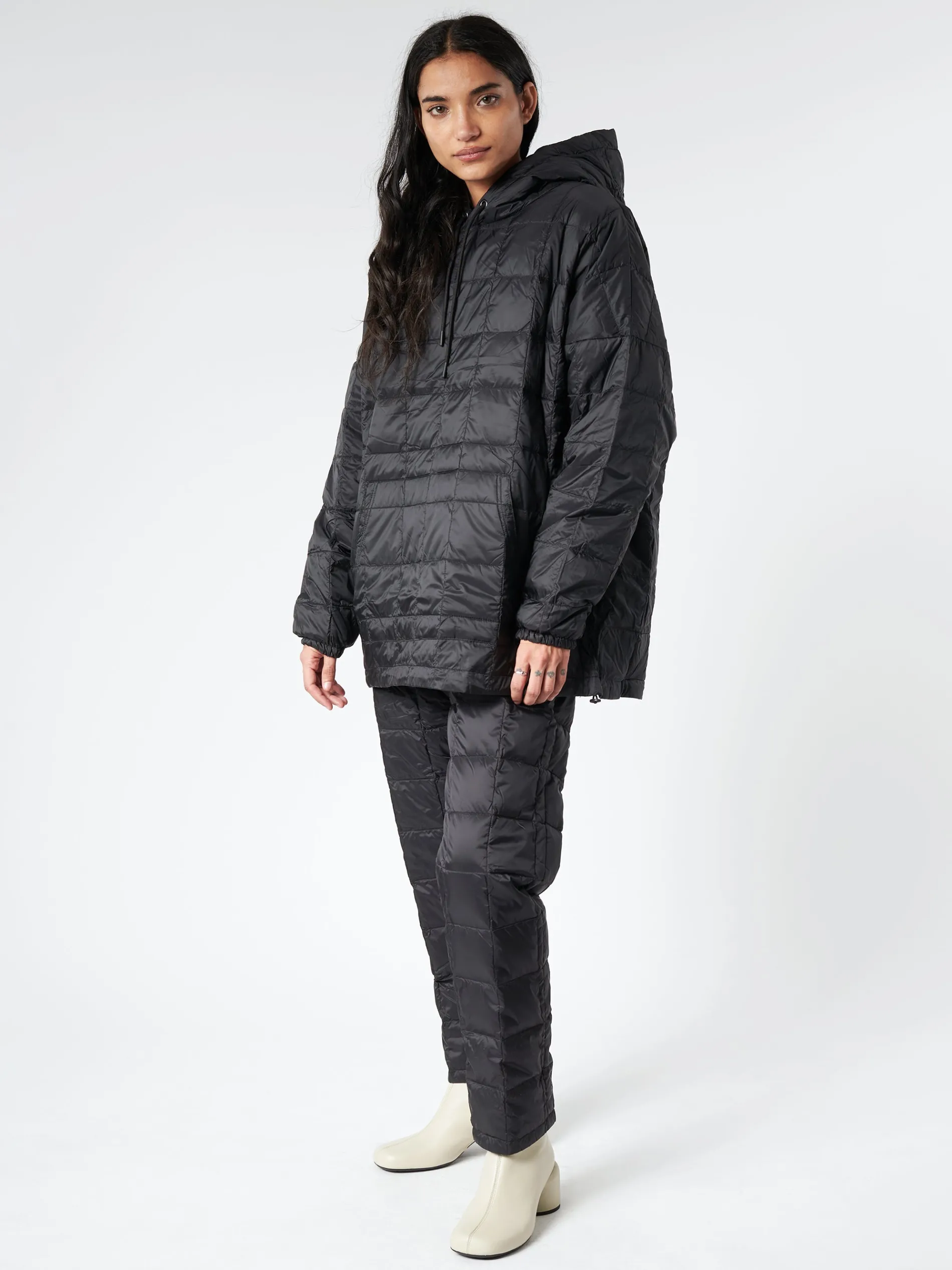 Lightweight and warm, and have an elastic waistband and drawstrings for easy wear. These TAION tapered down pants are made with high quality 800 fill power down.