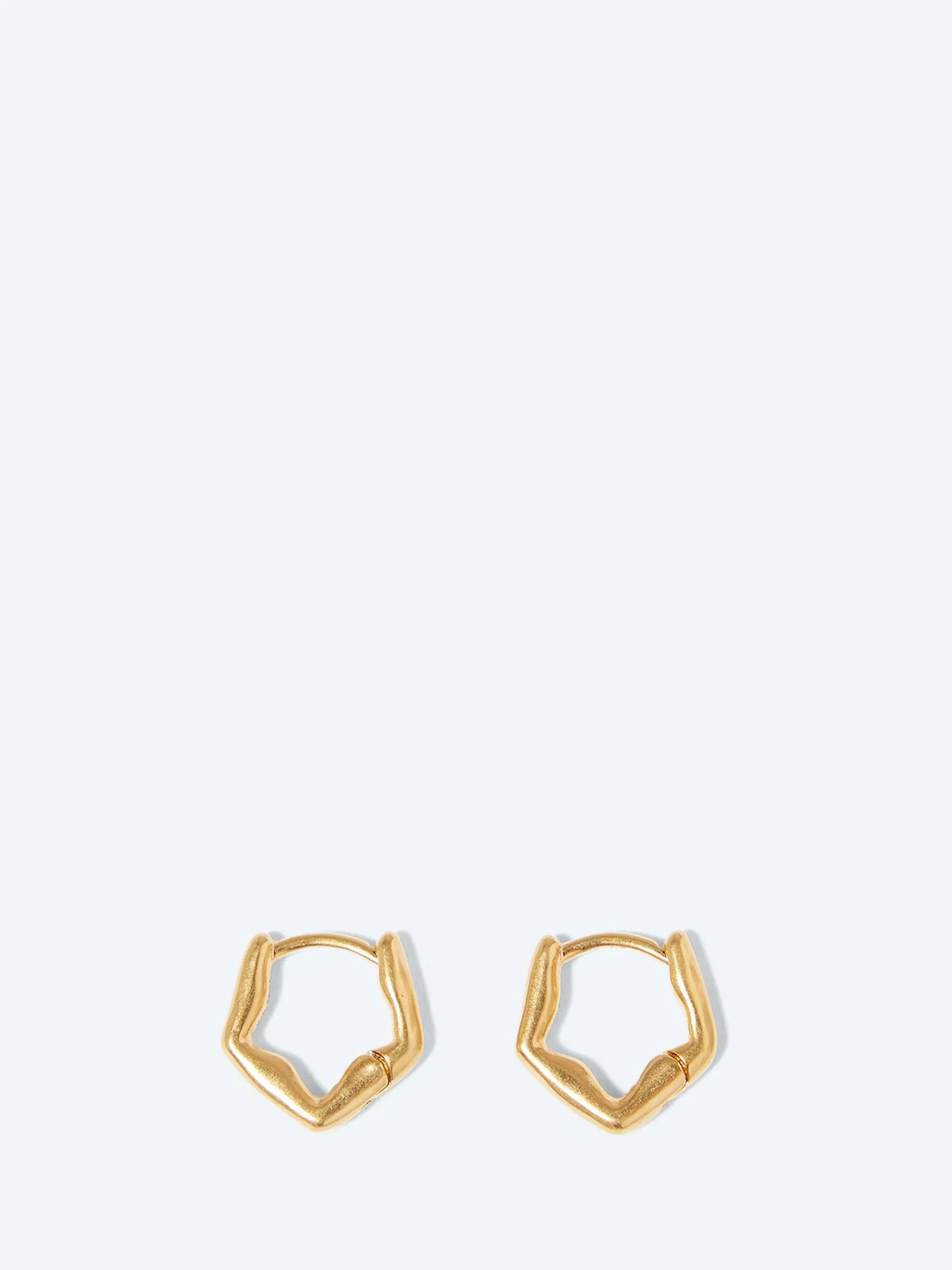 Small, simple hoop earrings with an organic pentagon shape.