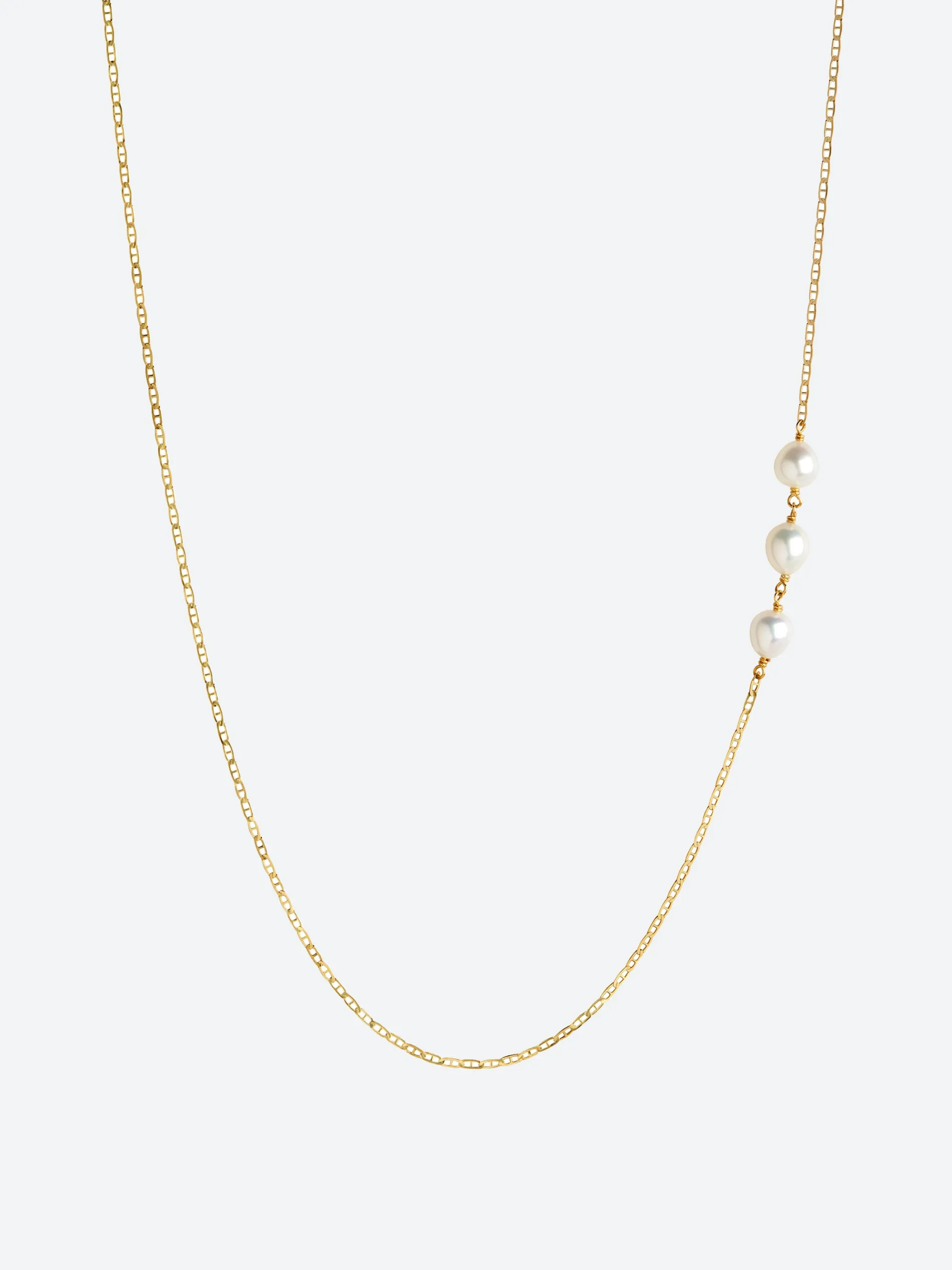 Stand out from the crowd with Maria Black Tessoro Necklace that beautifully displays three unique freshwater pearls.