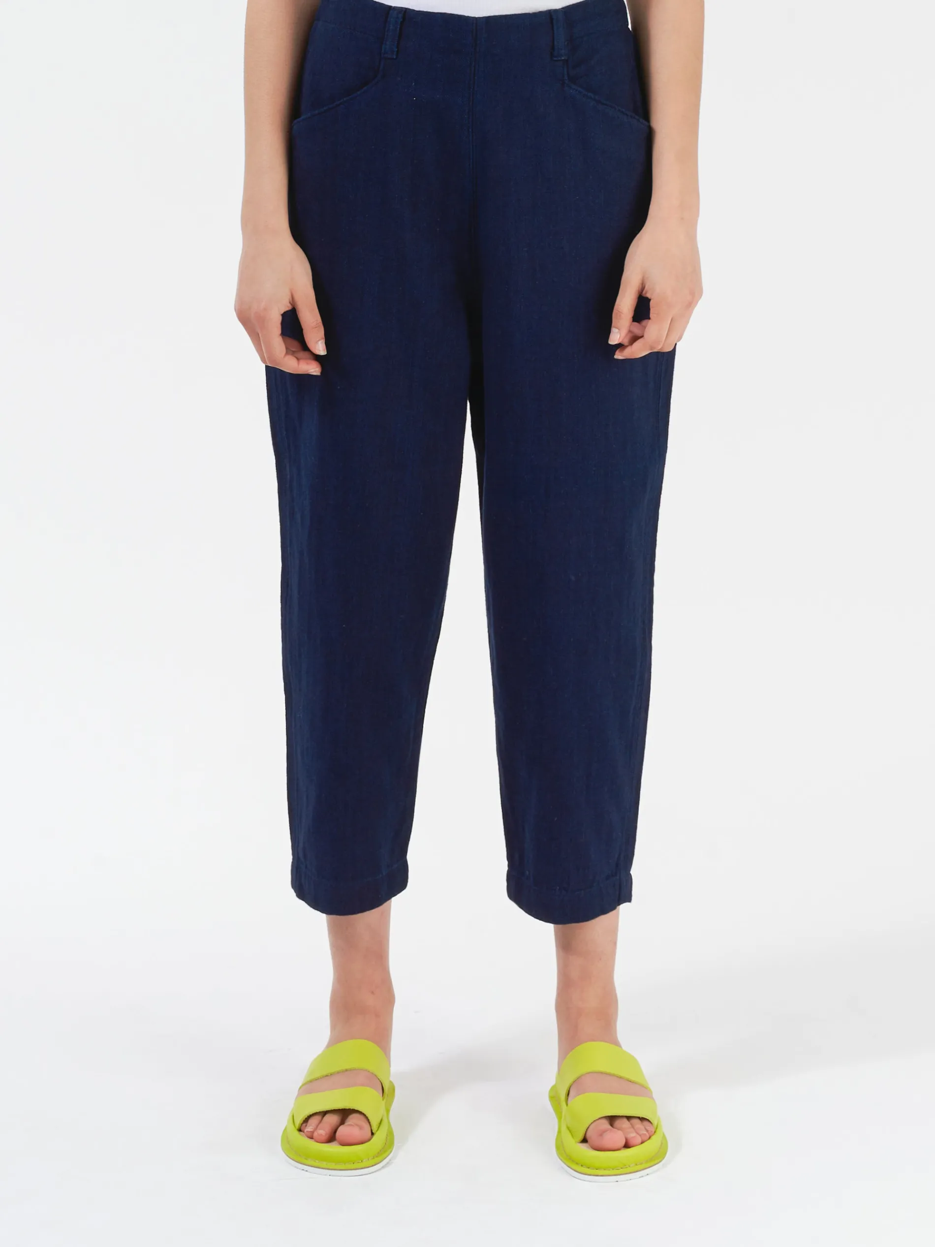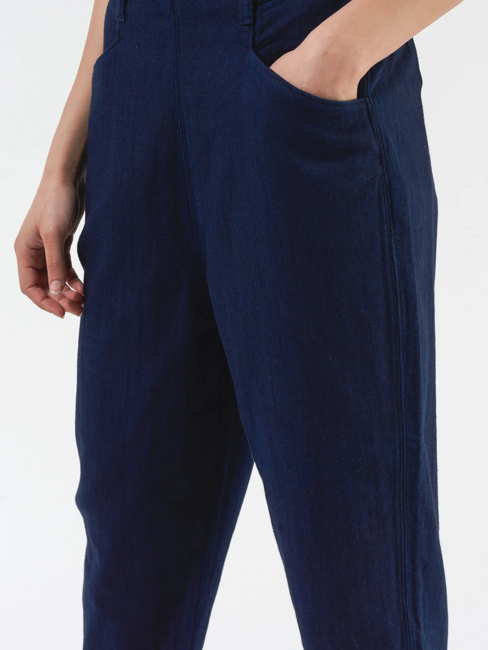 TOAST Alix trousers are crafted from cotton denim woven on traditional shuttle looms in Okayama, Japan. The mill was established in 1950. Cut with easy, tapered legs and finished with an elasticated section at the back of the waist.