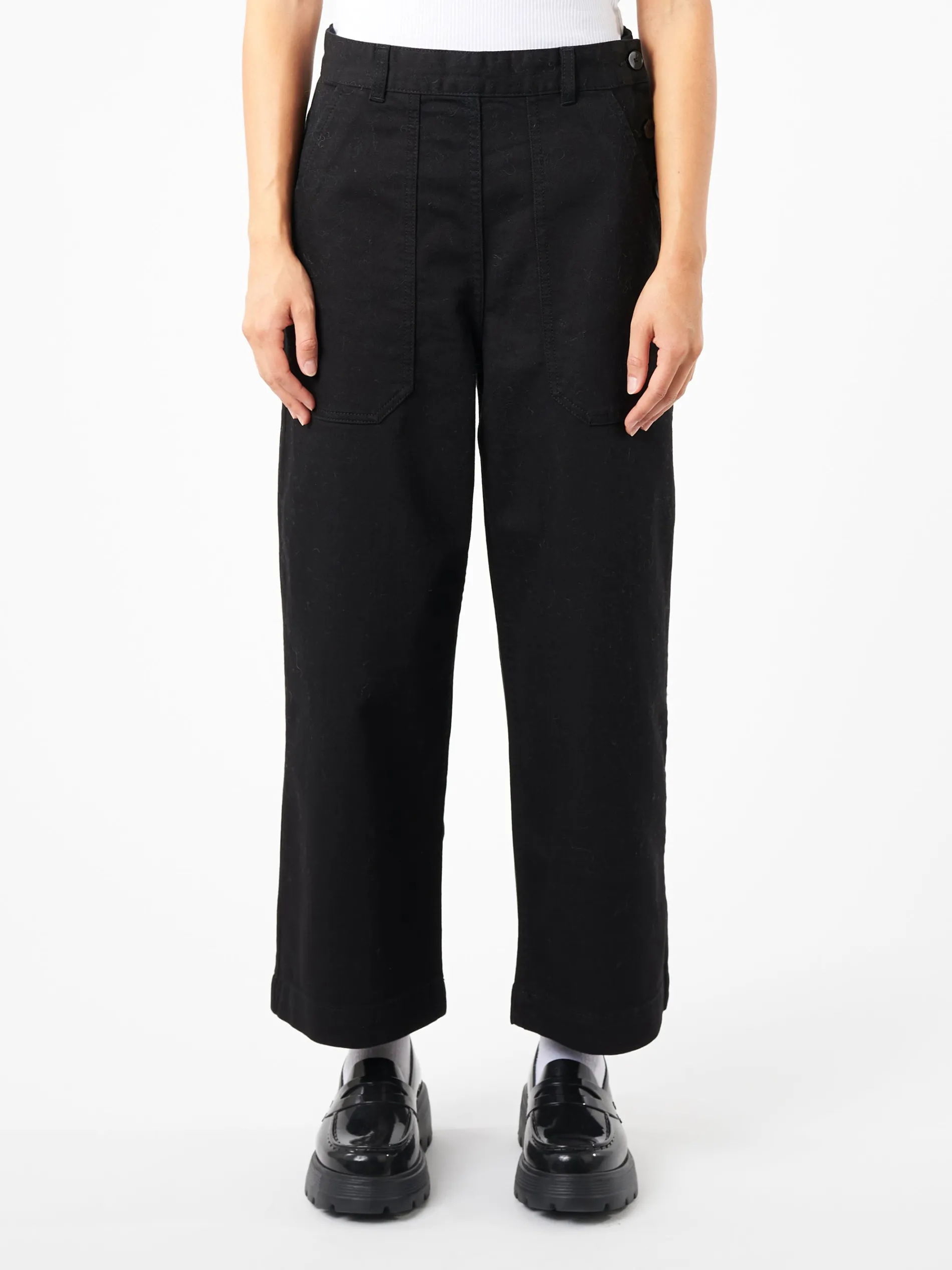 TOAST Annie trousers feature deep patch pockets at the sides that nod to workwear pieces. Crafted from organic cotton denim with a touch of stretch to fit neatly at the waist with long-cropped legs. The horn used for these buttons is a by-product of food production and has been carefully sourced.