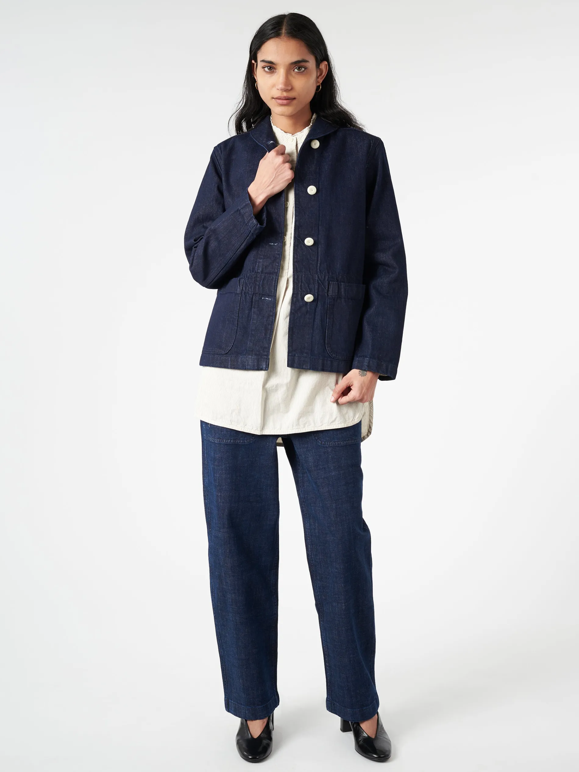 Ashley Jeans are cut with easy, straight legs that fall to long cropped hems for an unstudied air. Crafted from organic cotton denim dyed with indigo-coloured dye, through a technique that uses up to 70% less water than regular processes.