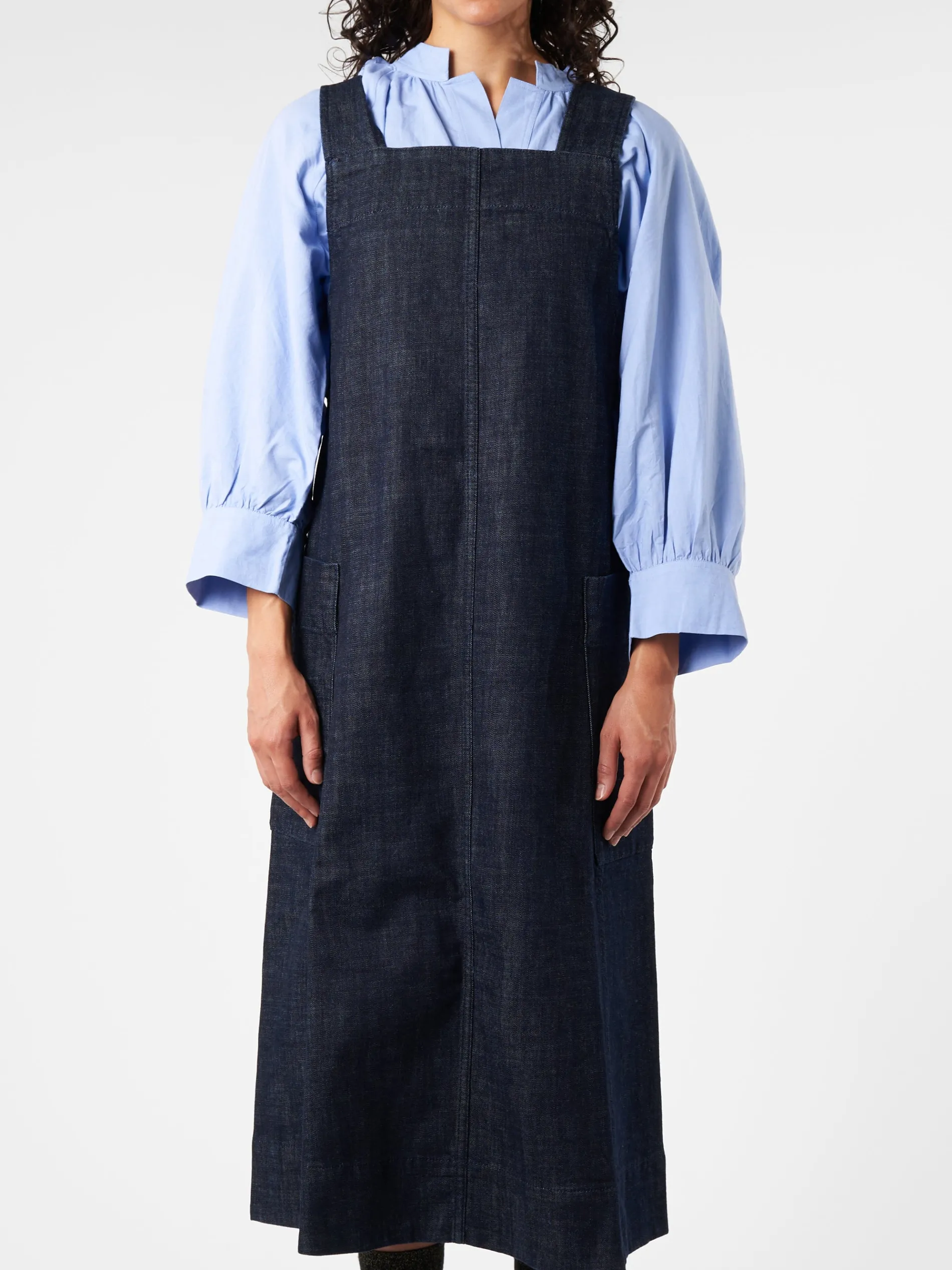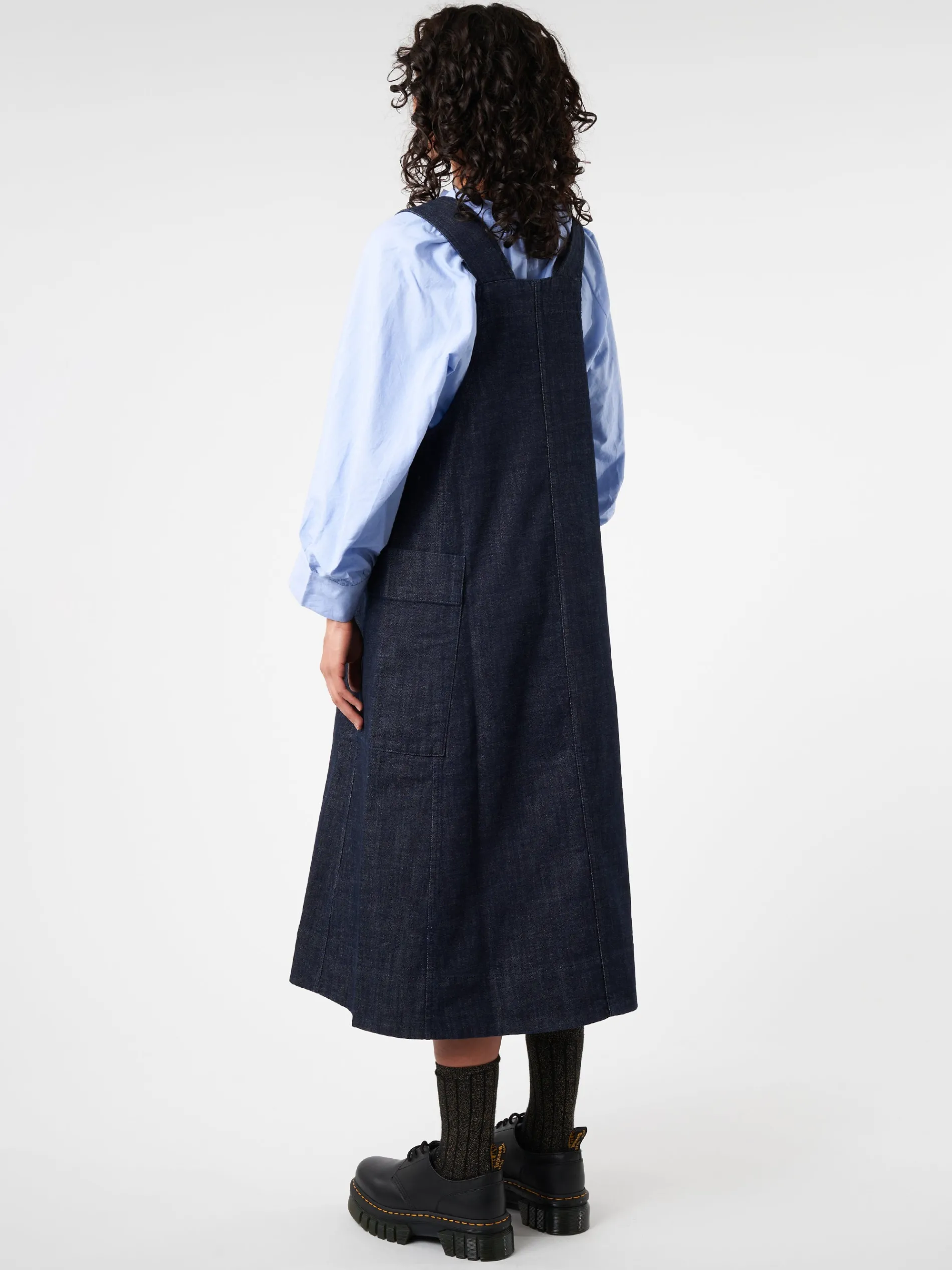 TOAST Pinafore Dress made from a supple and quite weighty, organic indigo-dyed cotton denim with 2% stretch.