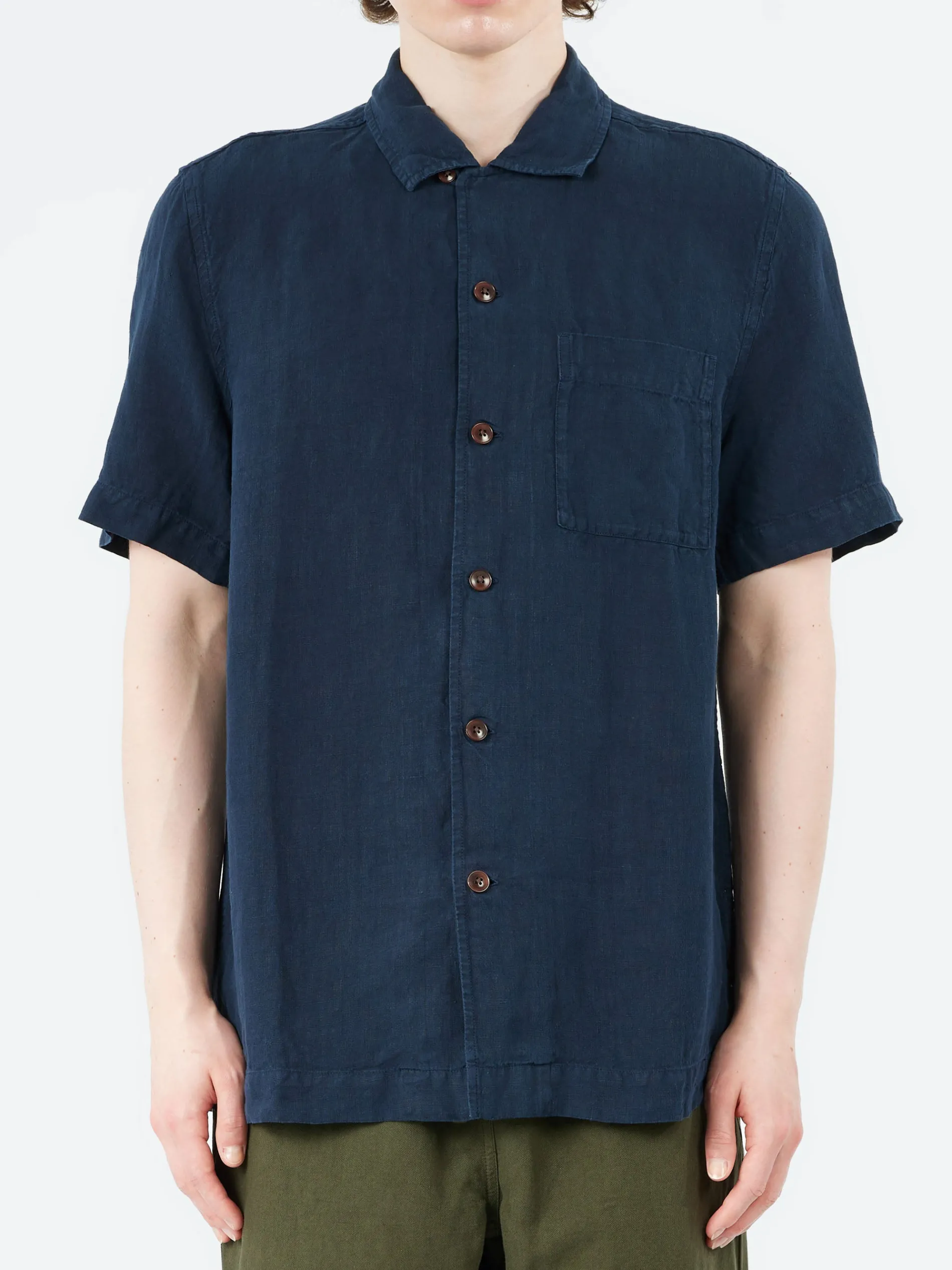 Supple slubbed linen heightens the laid-back quality of TOAST’s garment-dyed shirt. Featuring a convertible camp collar with a button at the top, allowing it to be worn open or closed.