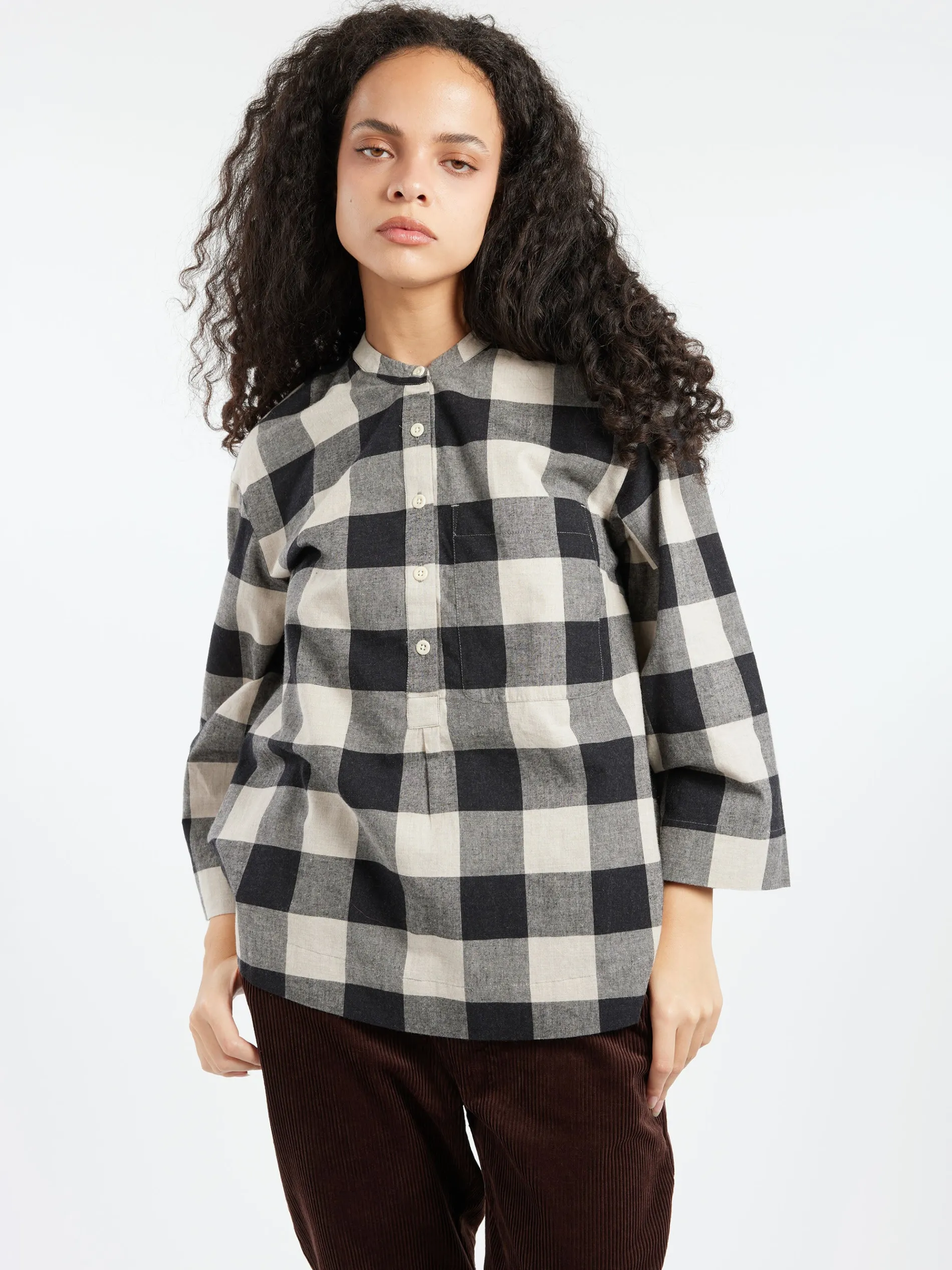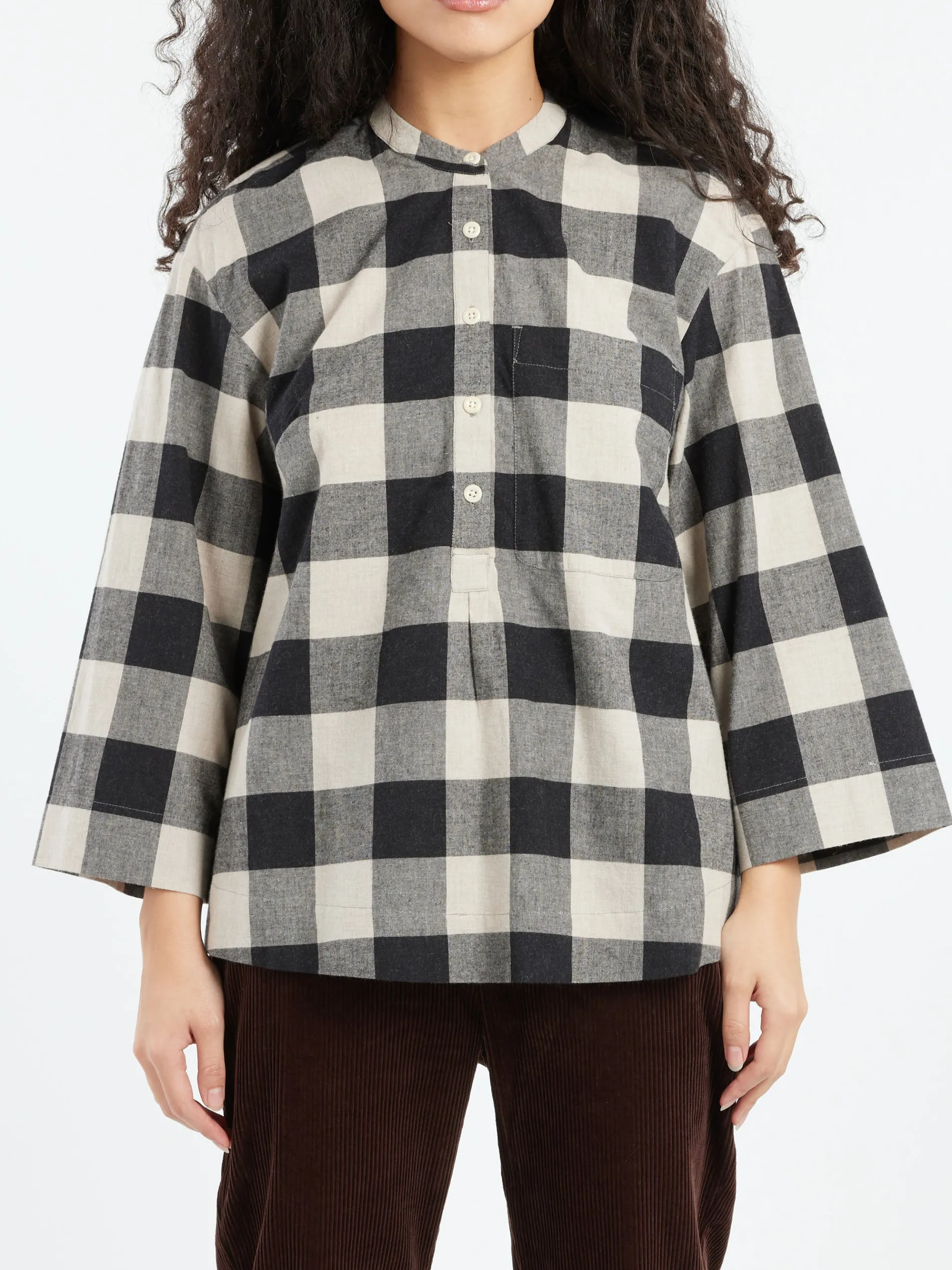 The cashmere blend gives a tactile feel to TOAST’s gingham shirt. Cut to an easy shape with dropped shoulders and a box pleat for subtle shape through the back.