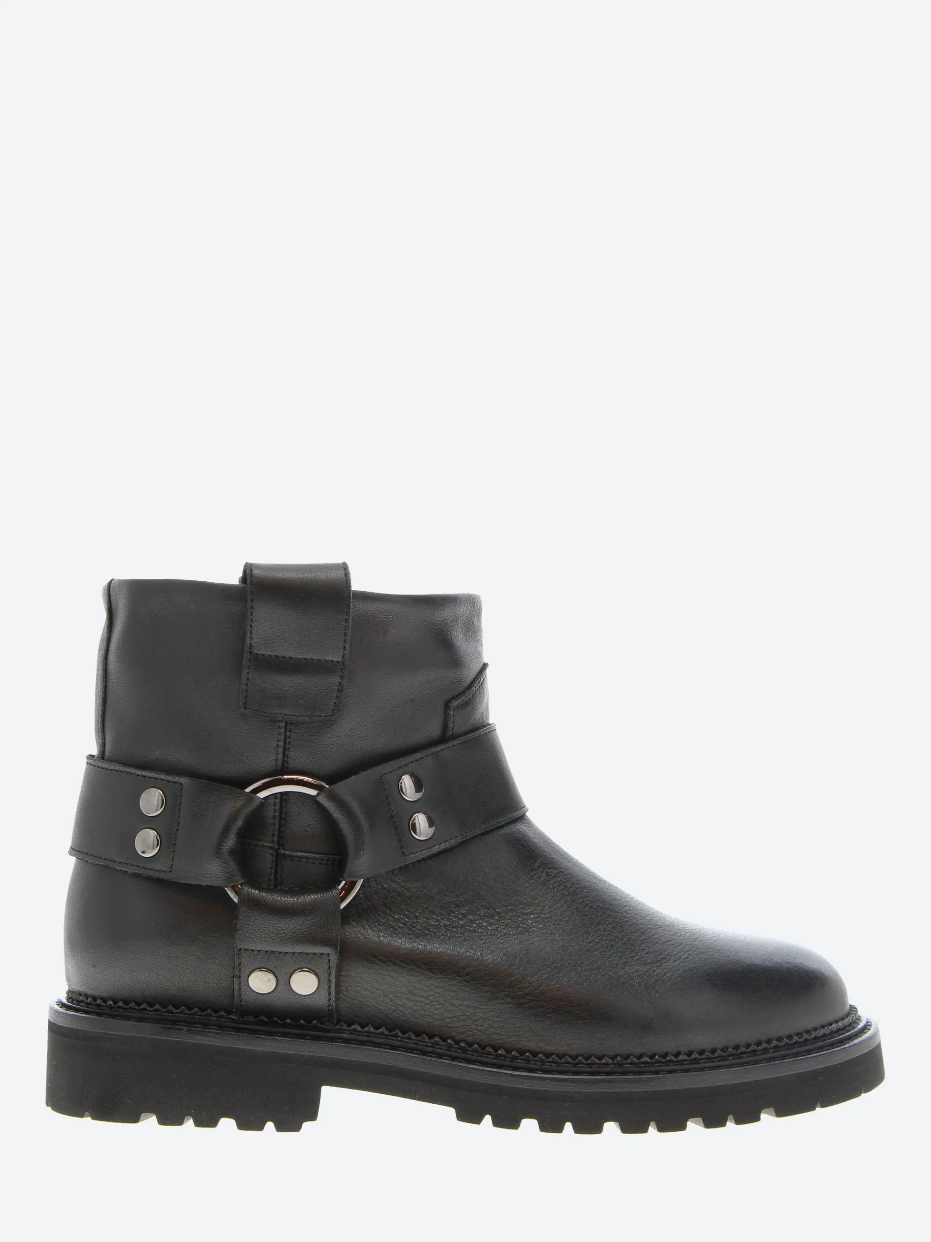 TOu0026amp;CO. short engineer boot with harness detailing, polished hardware and a shapely round toe.