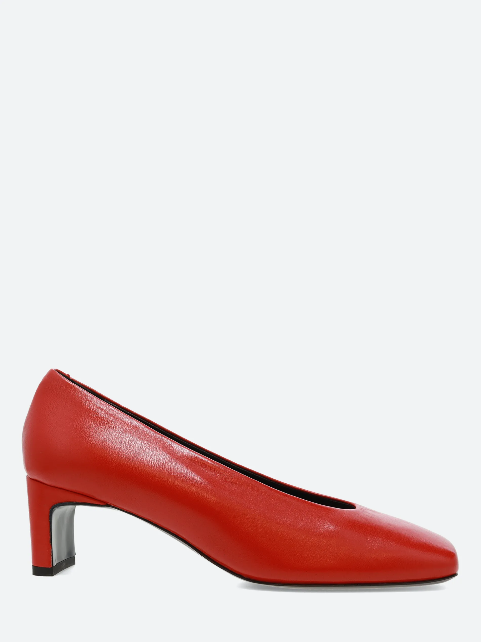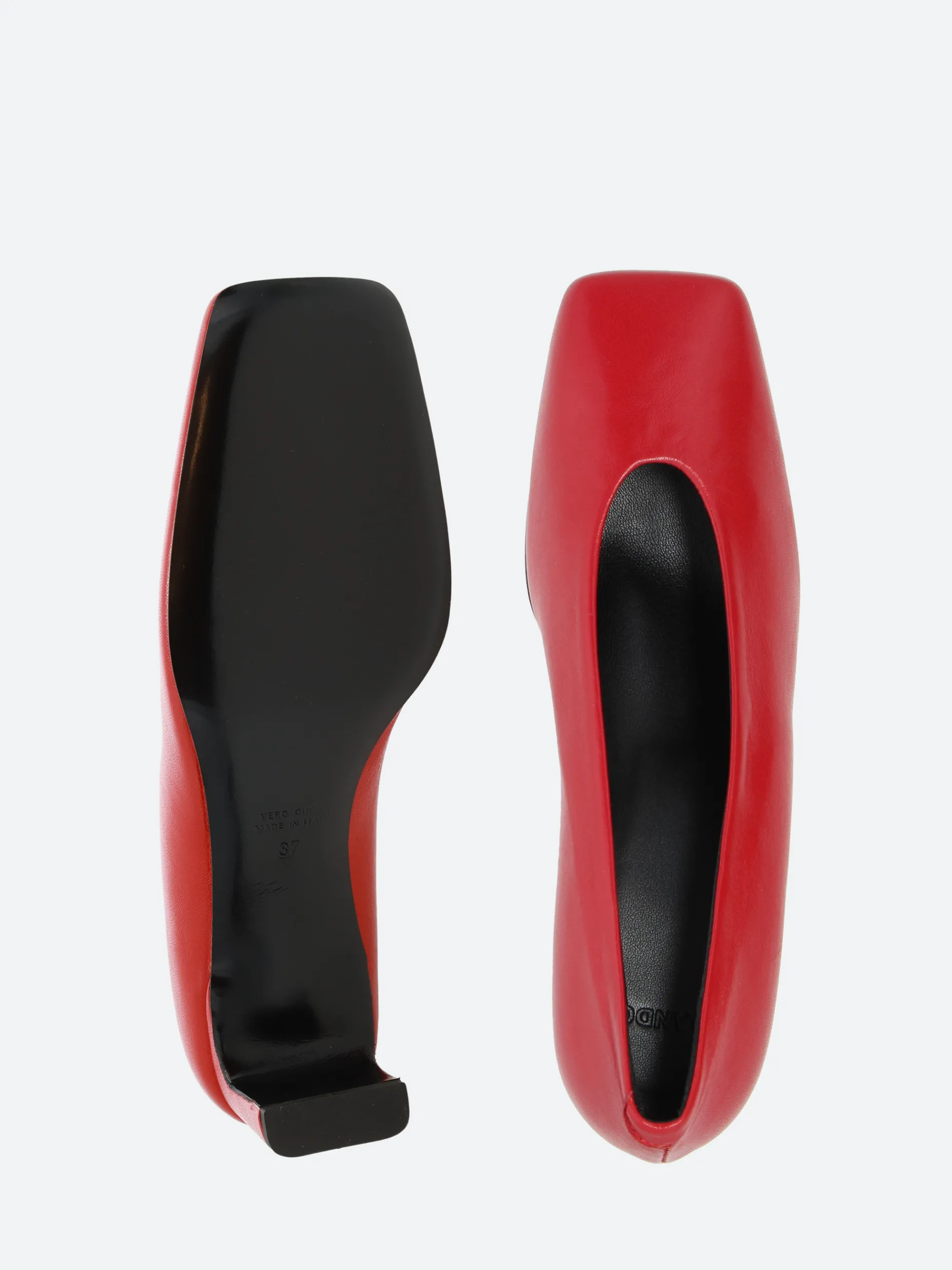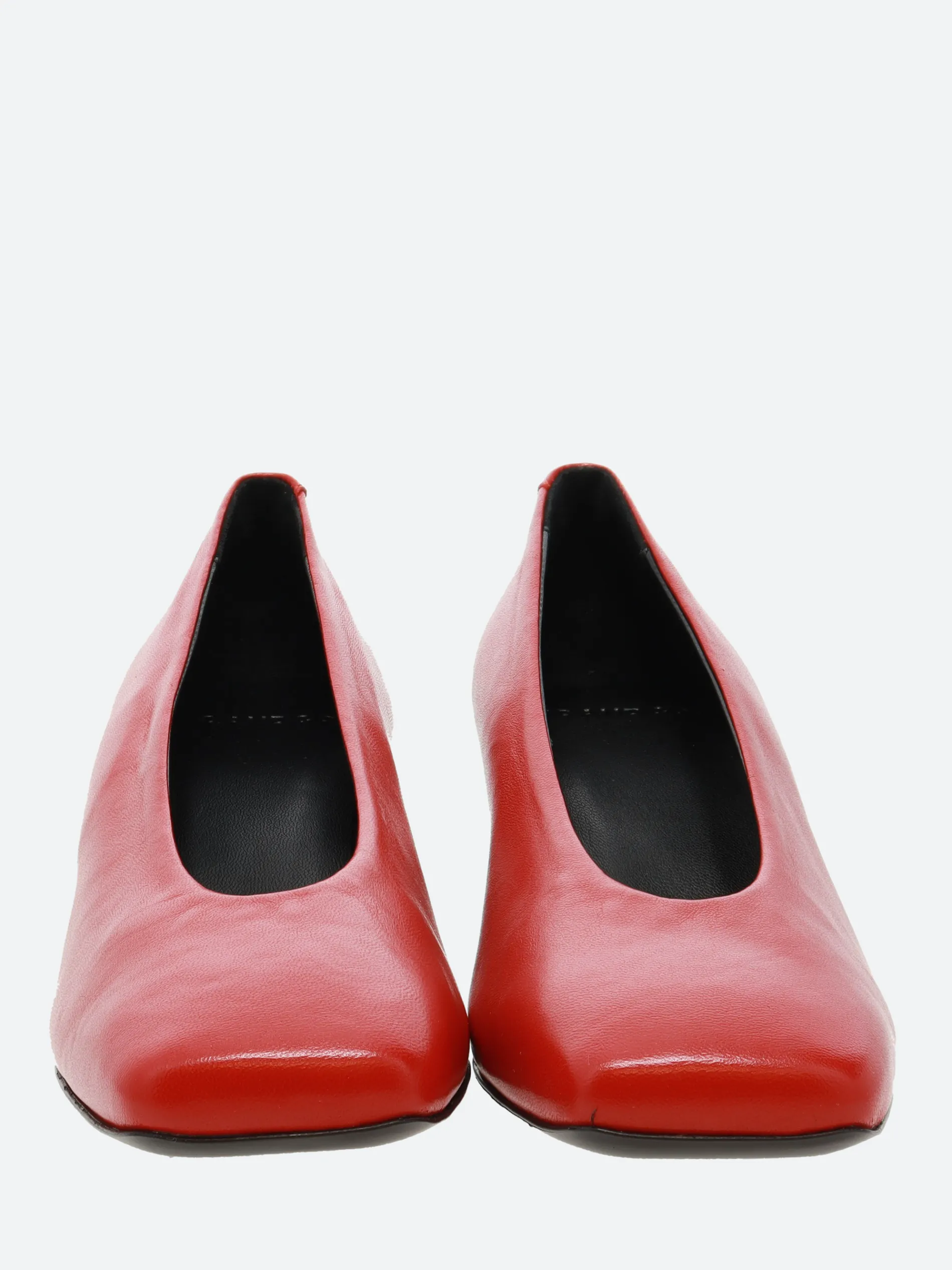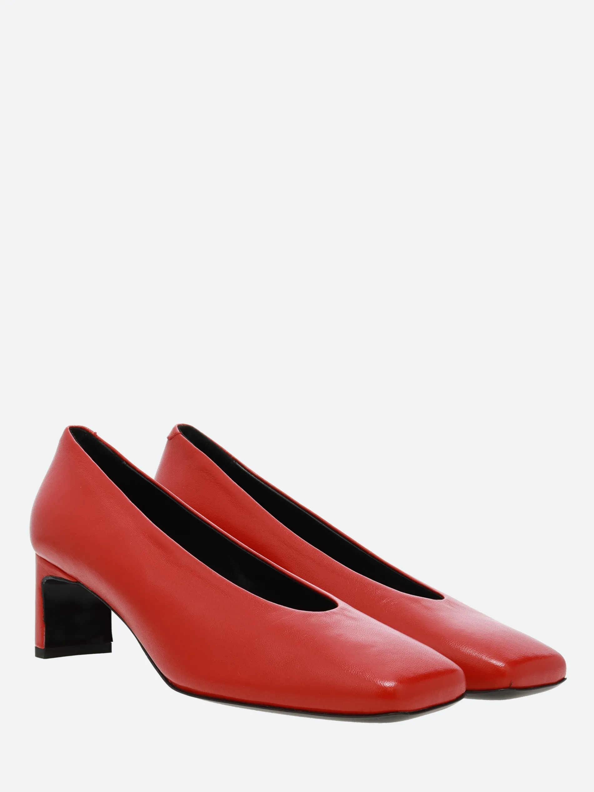 Effortlessly transition from day to night with these versatile pumps. The square toe and geometric heel provide a modern touch.