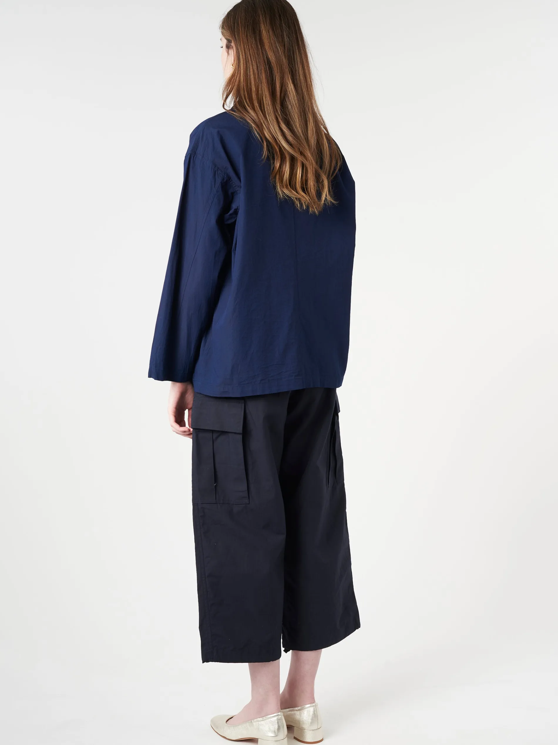 A simple, French inspired jacket with a dark, rich indigo colour.