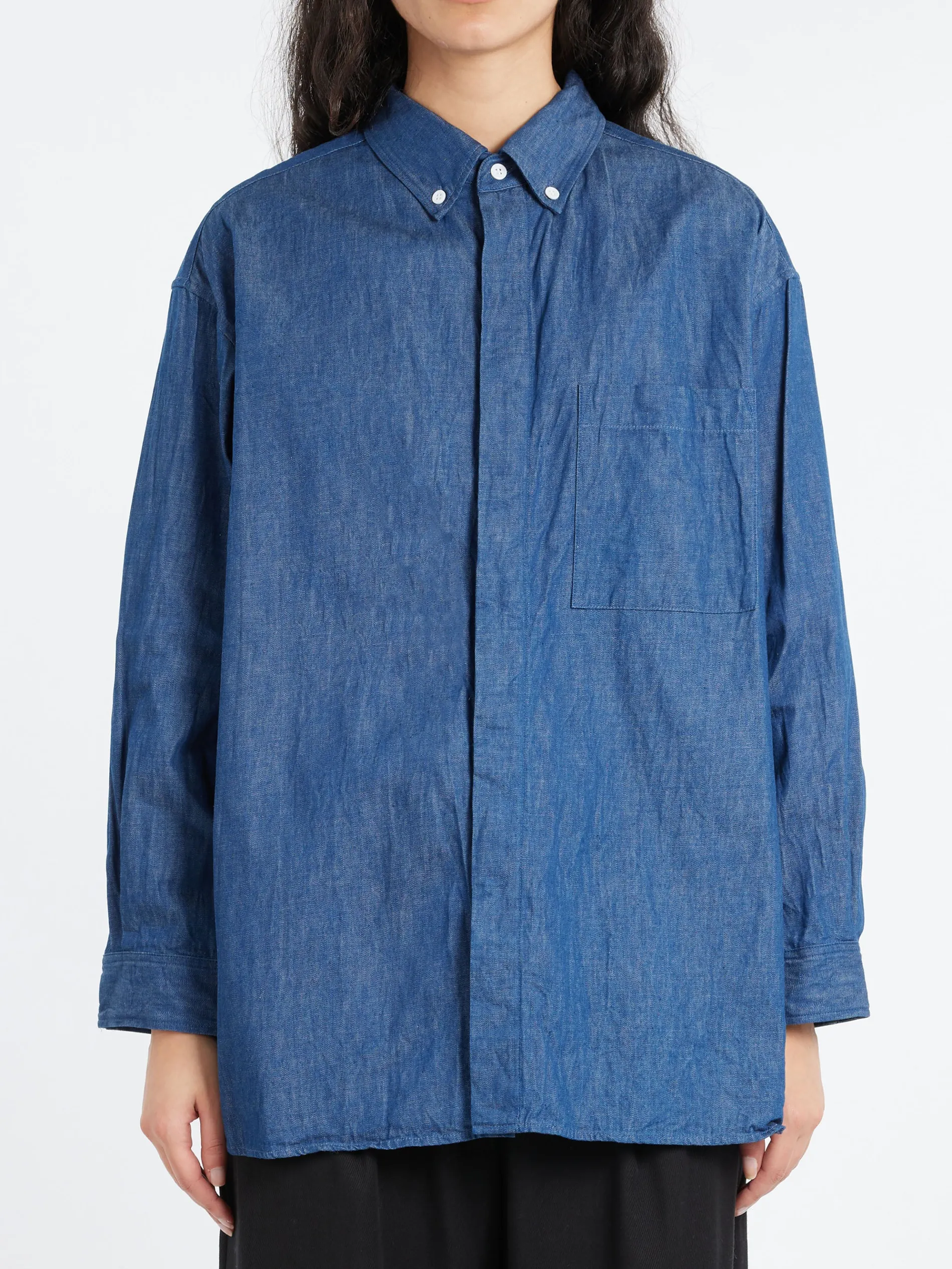 A simple button-down shirt made from 6.5 oz organic cotton denim.