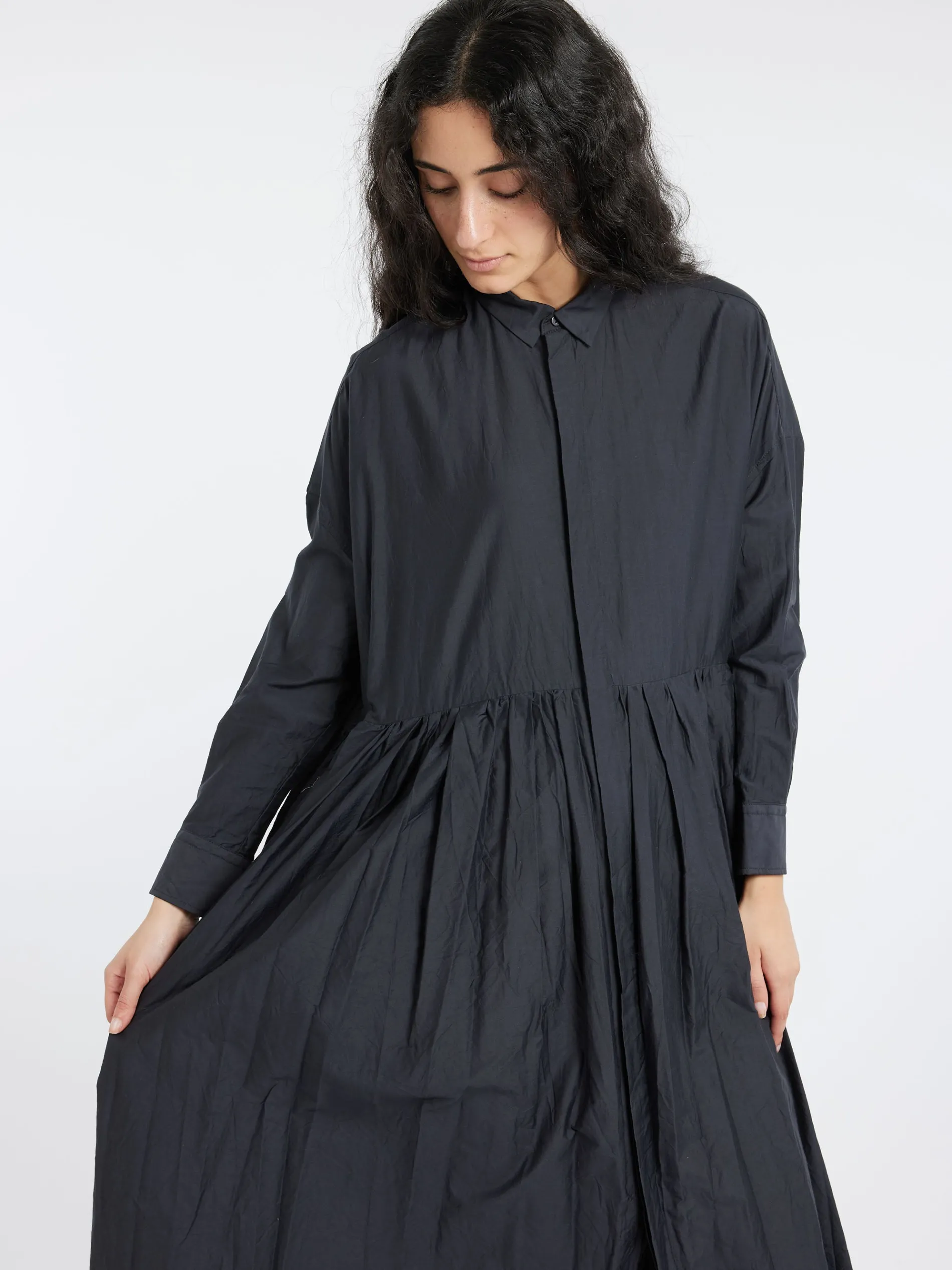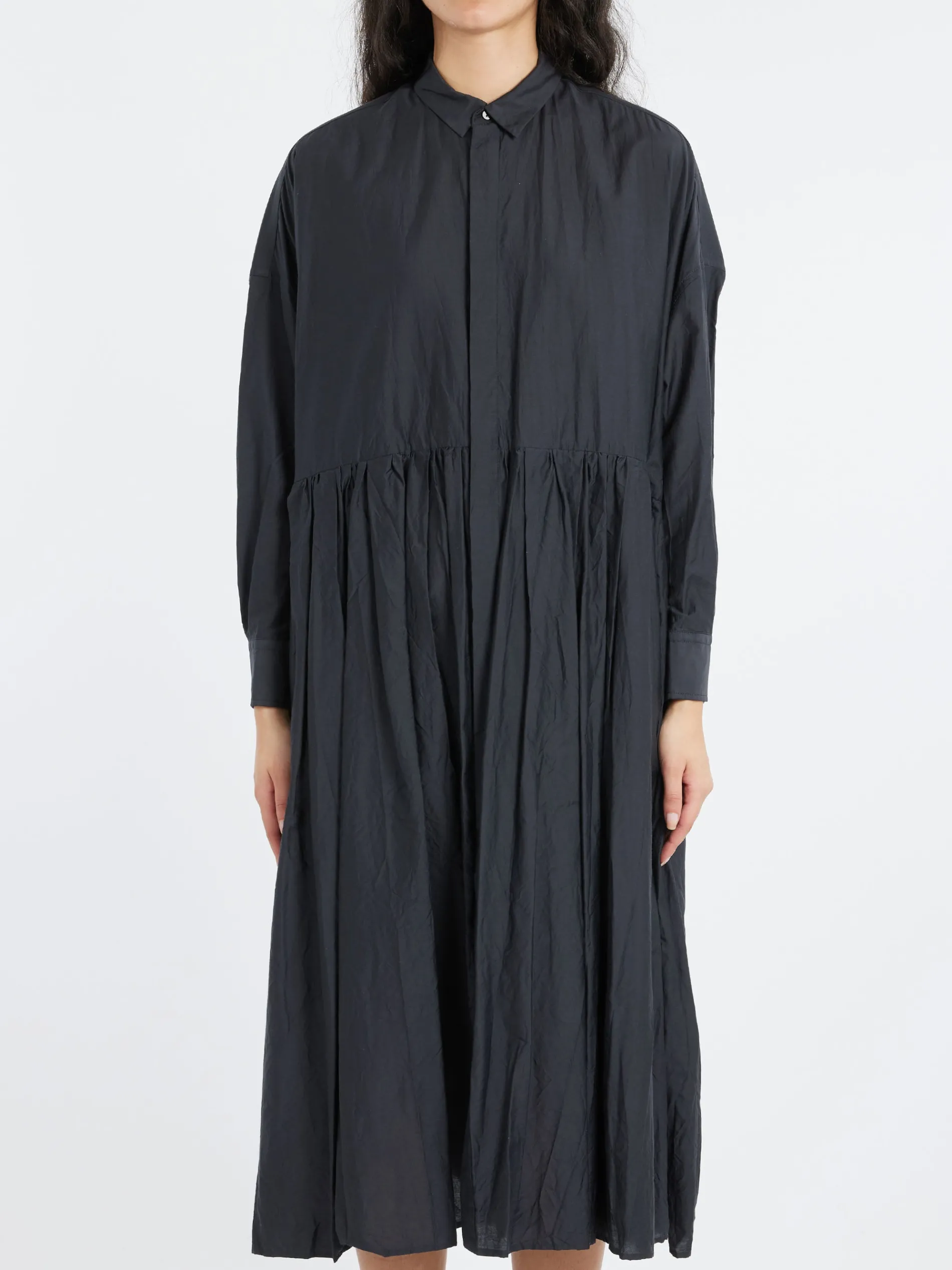 Toujours shirt dress with gathered waist and concealed button full placket in small checked cotton silk blend.