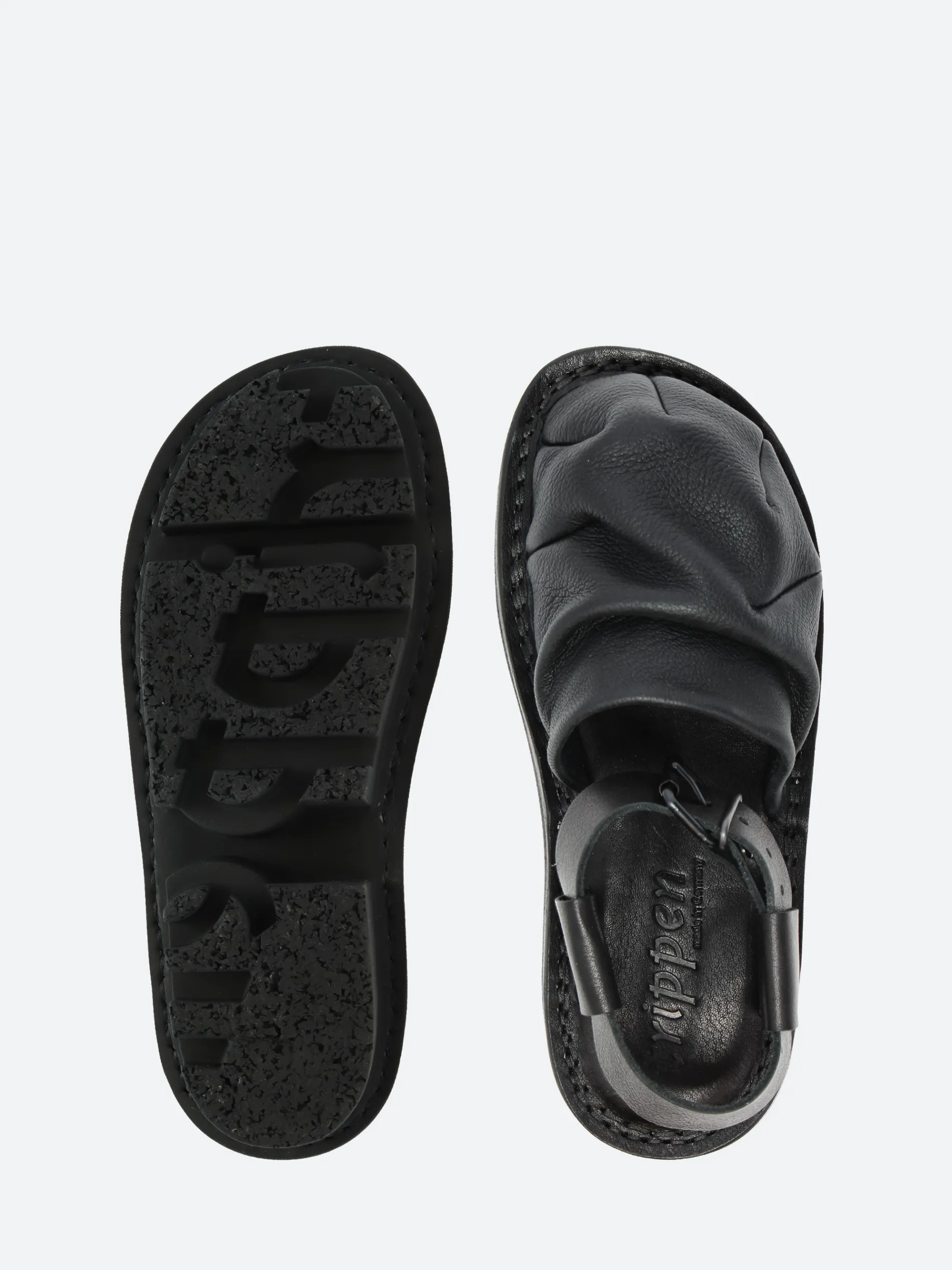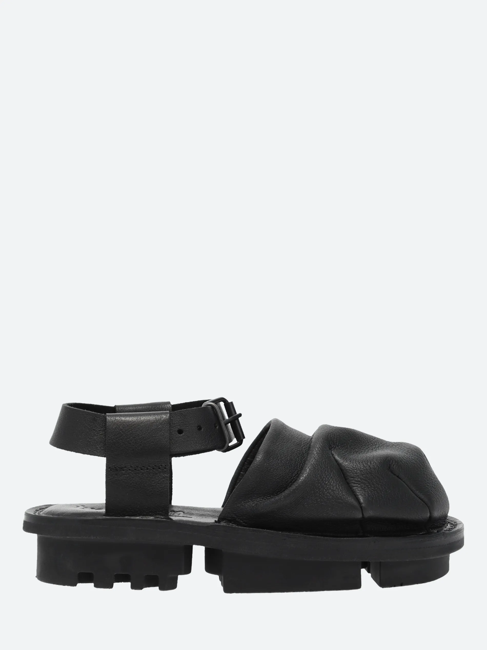 Trippen Closed Surplus minimalist slip-on mule with an adjustable buckle ankle strap.