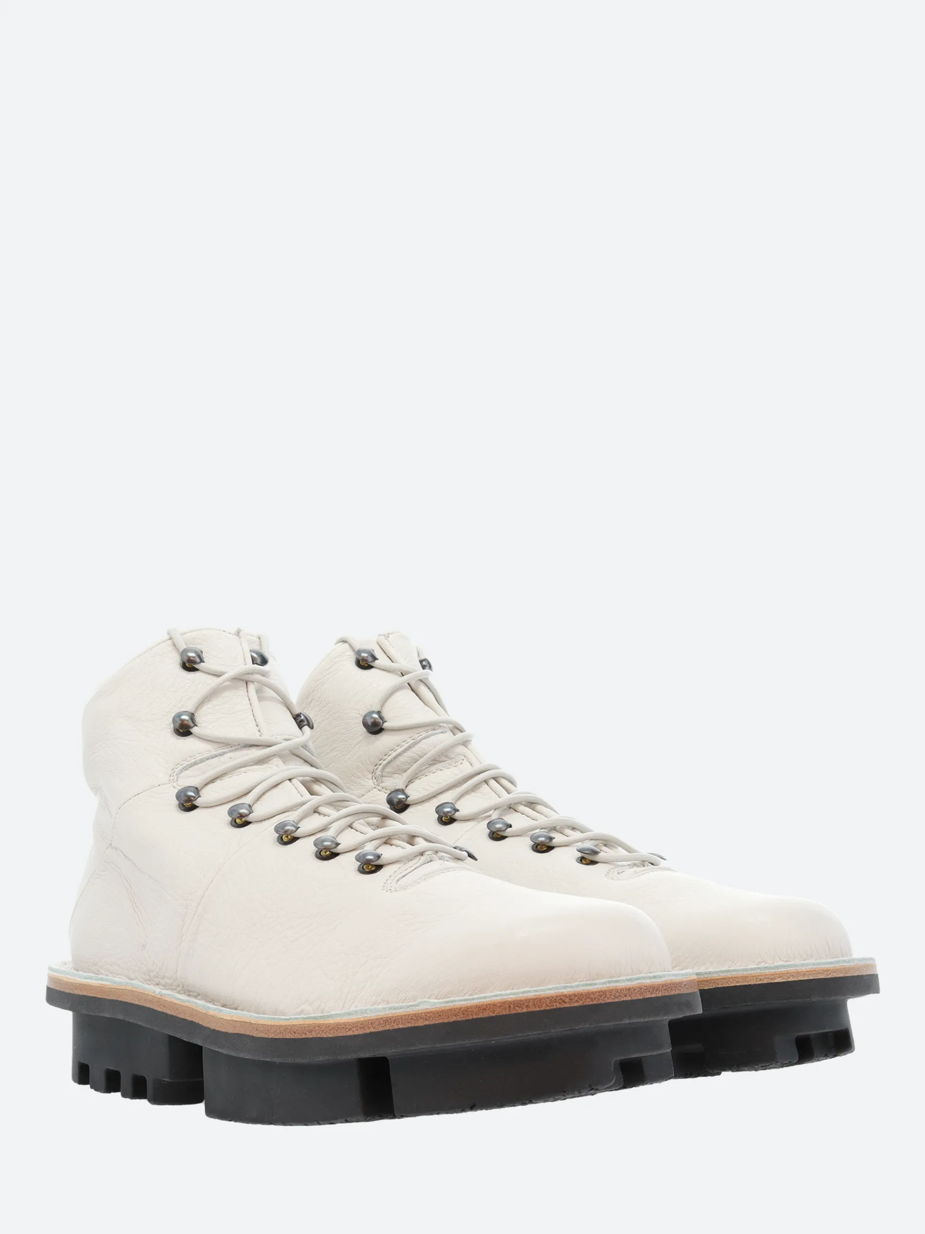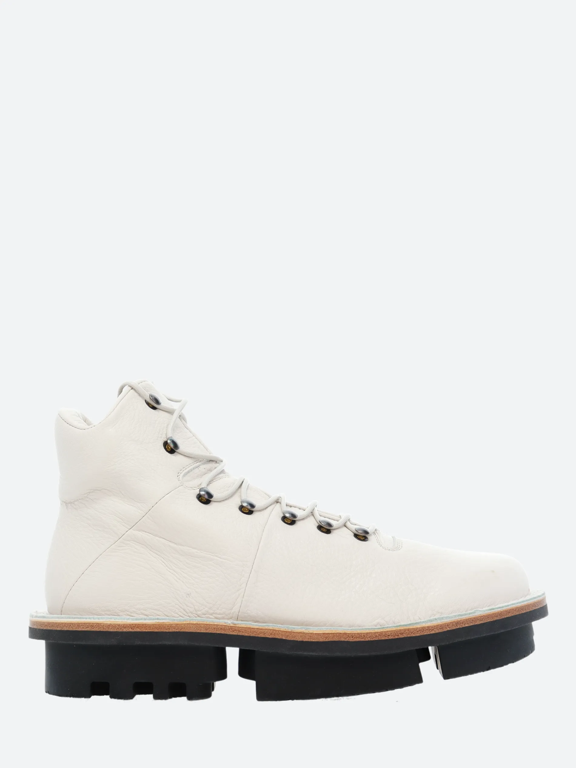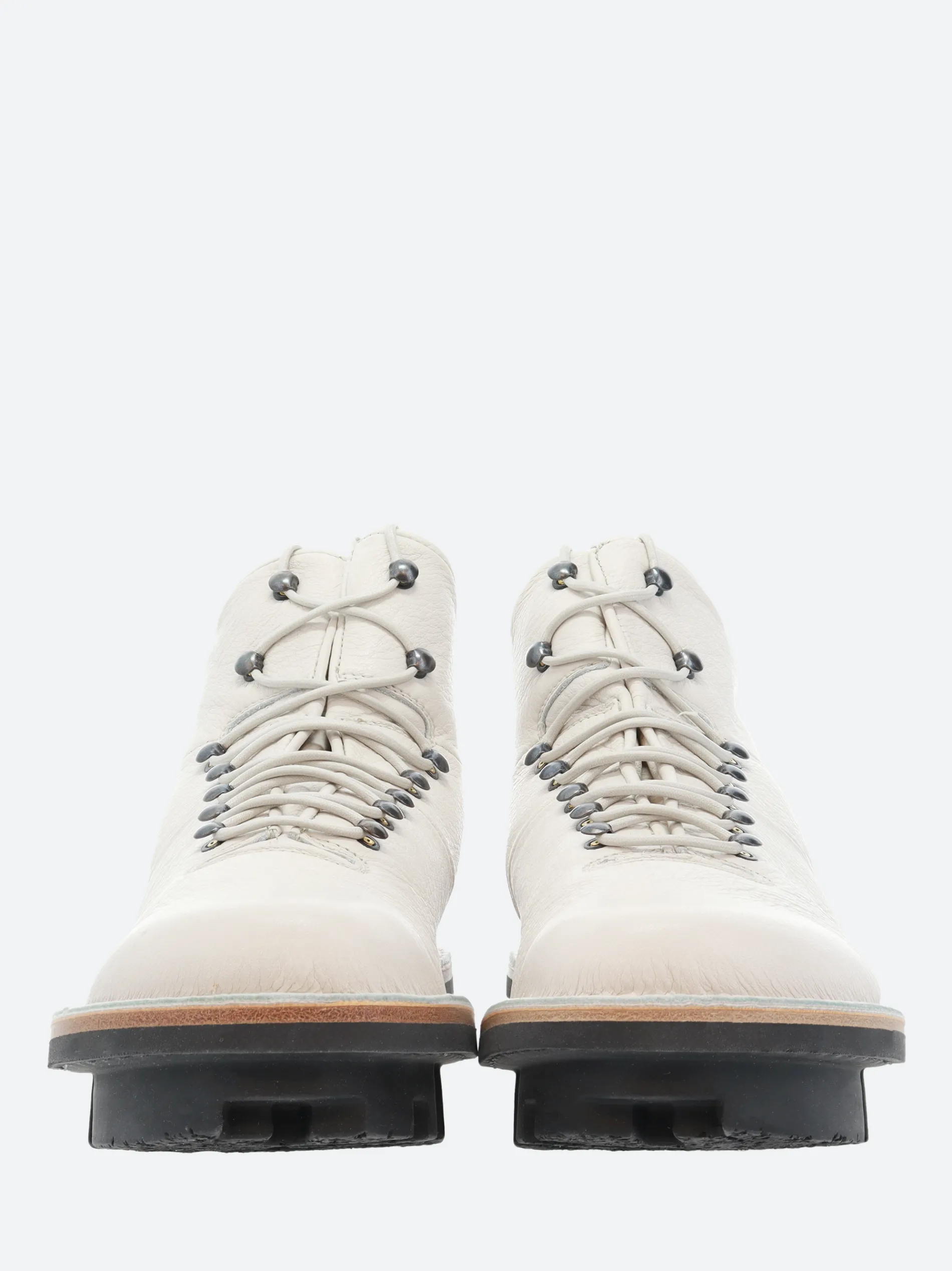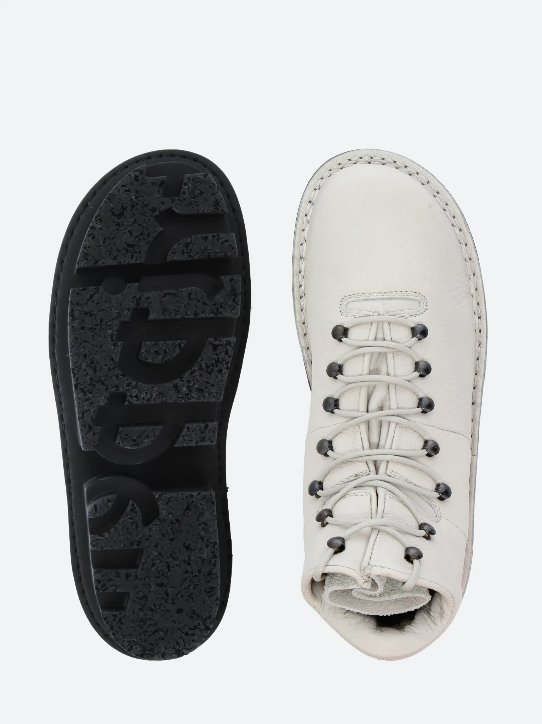 Trippen lace-up boot featuring hooks and eyes in the style of classic mountain boots.