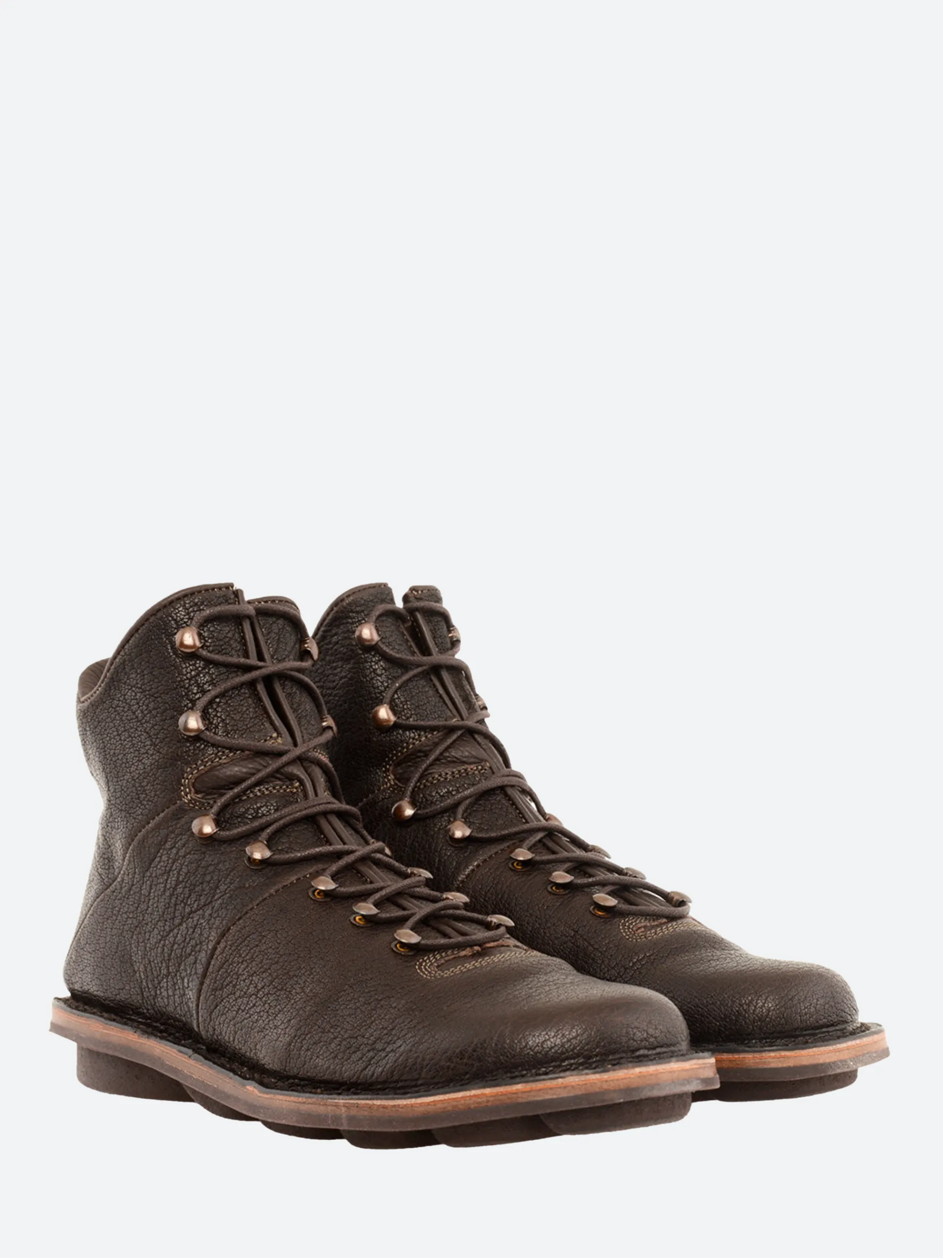 Trippen lace-up boot featuring hooks and eyes in the style of classic mountain boots.