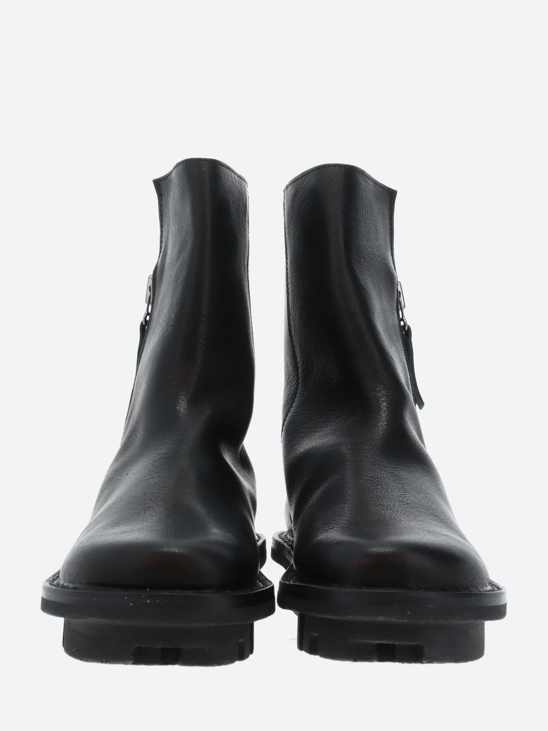 Trippen ankle boot with exterior metal zip fastening. Thanks to the large underlay and leather lining, the upper can be turned decoratively inside out at the top.