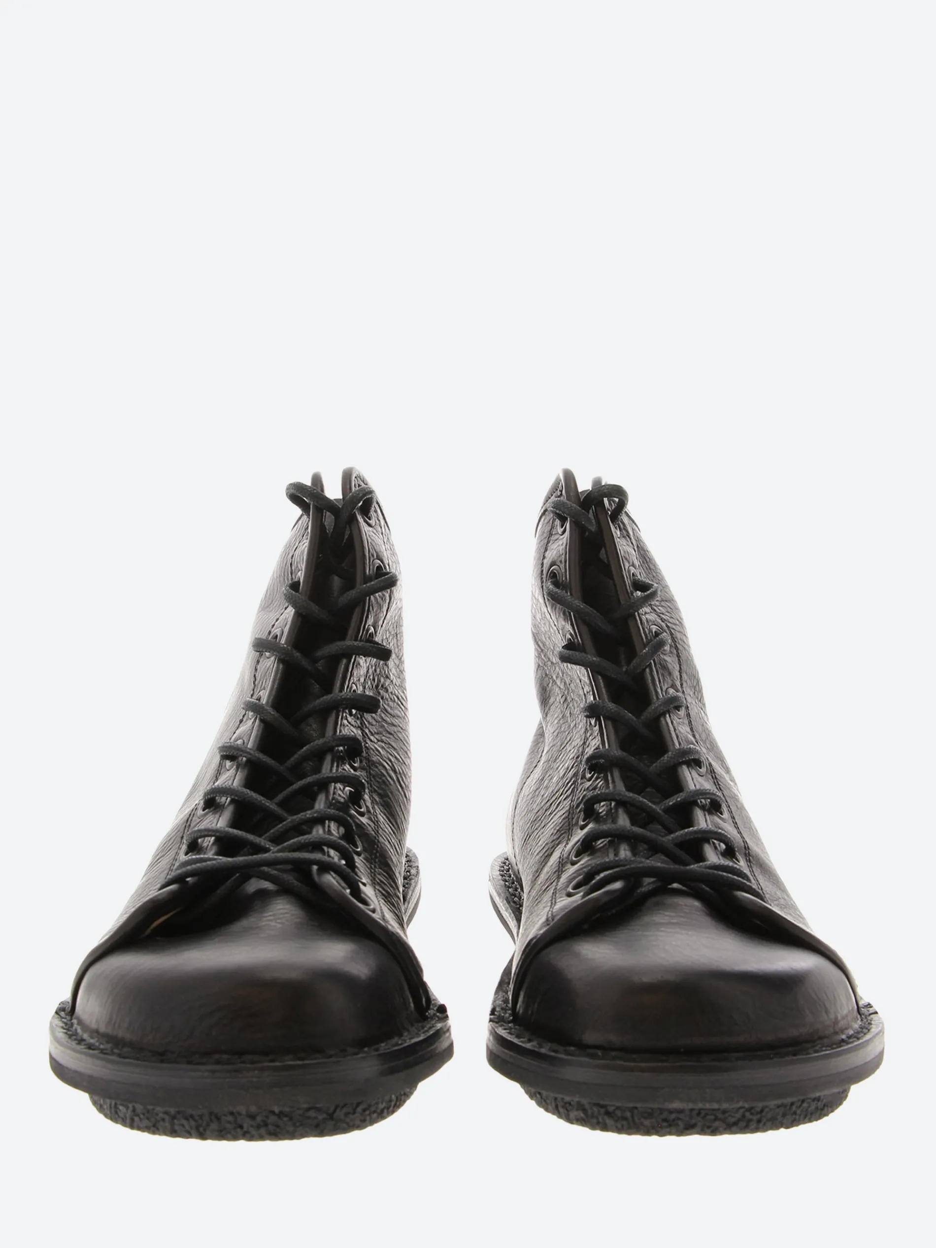 With their strong eyelets, the distinctive laces recall worker boots of the 1990s.