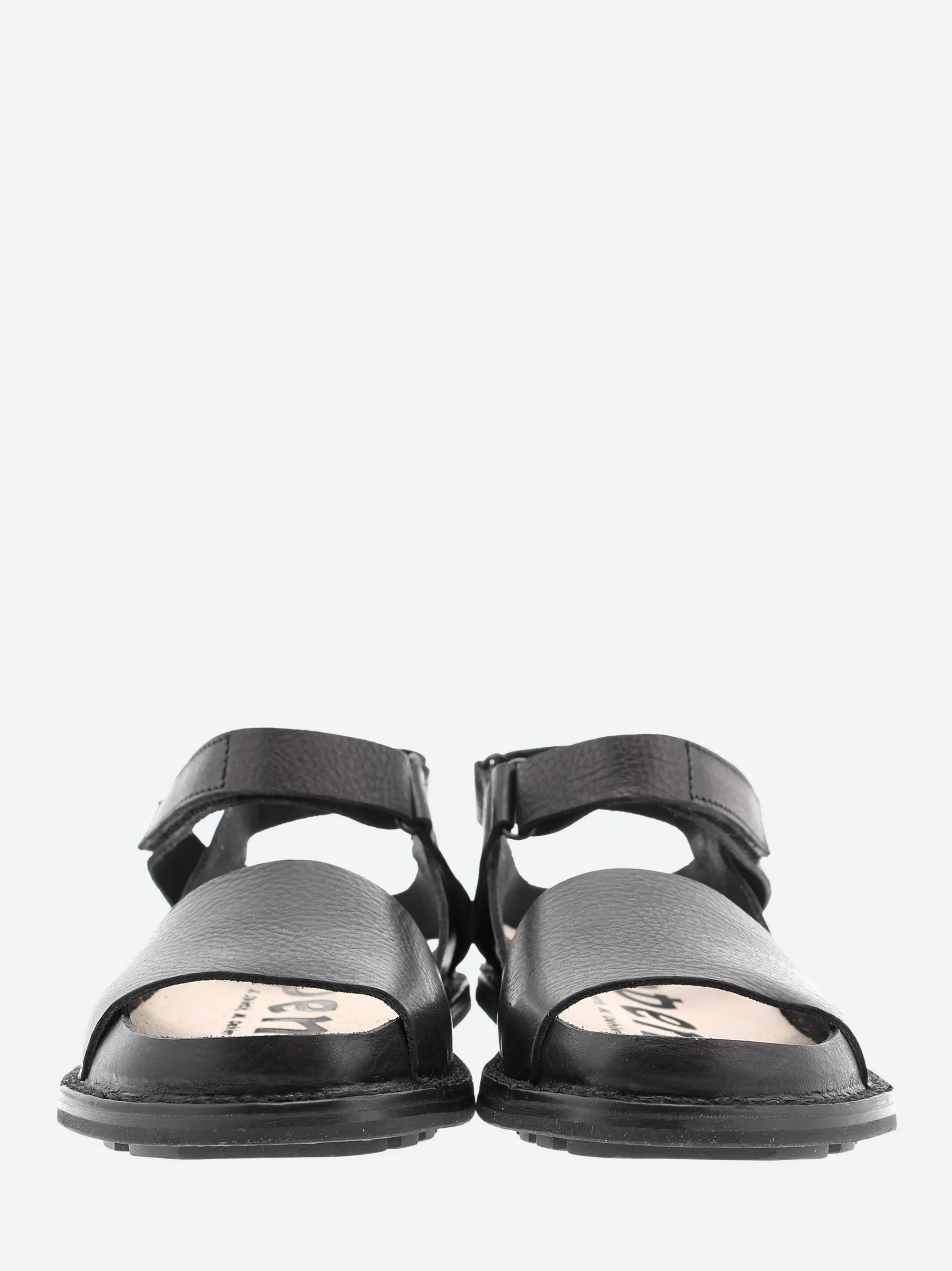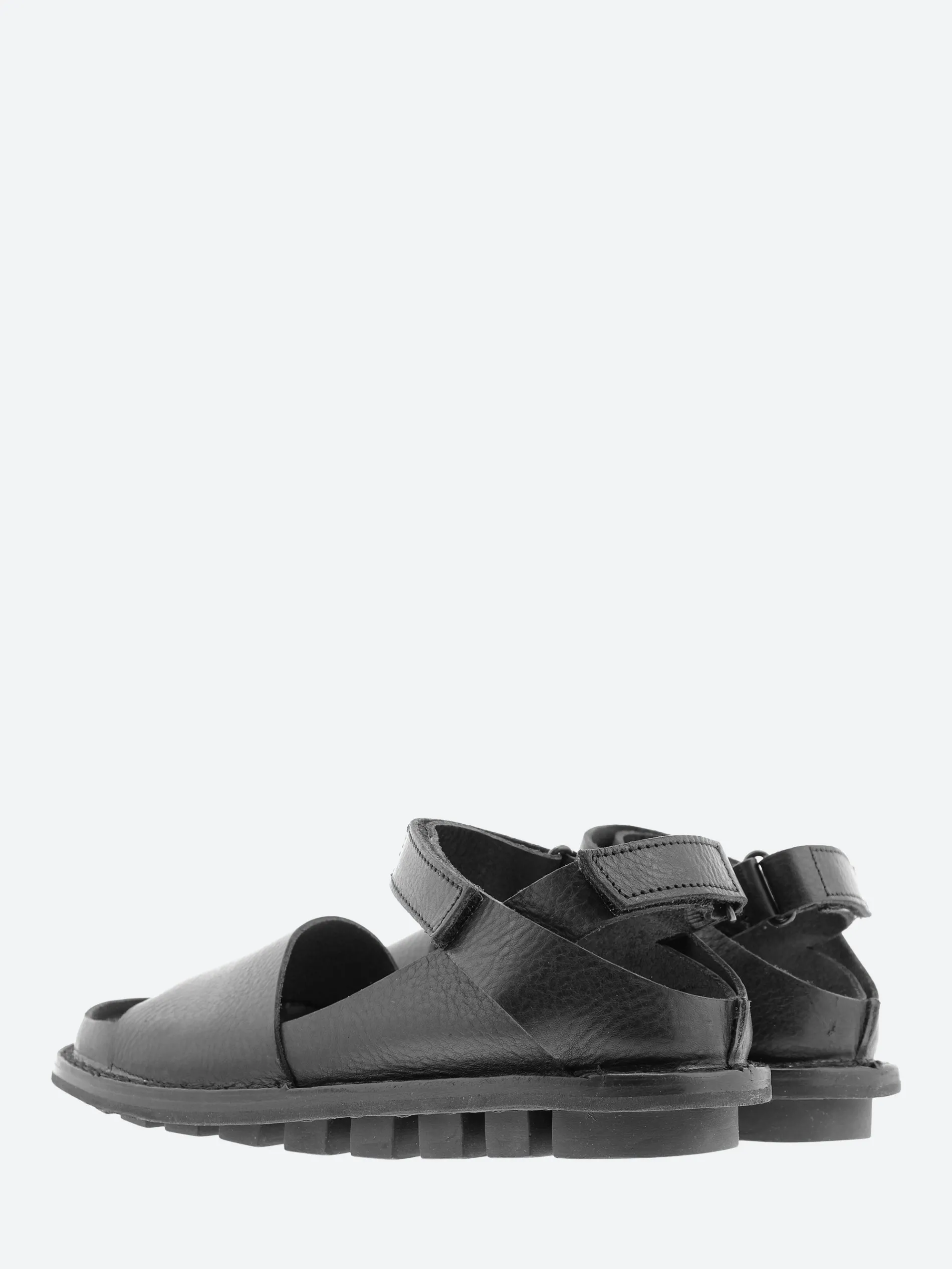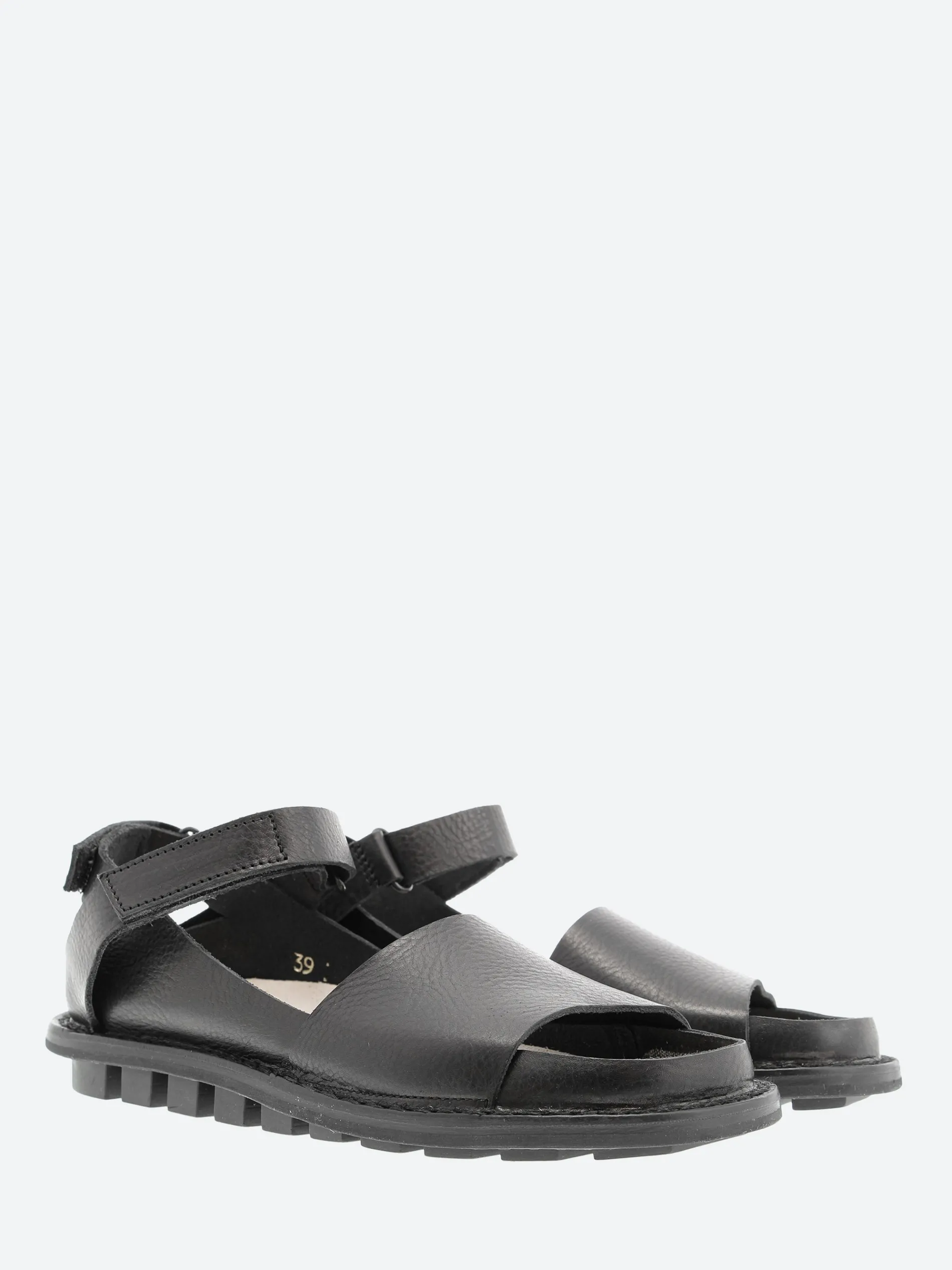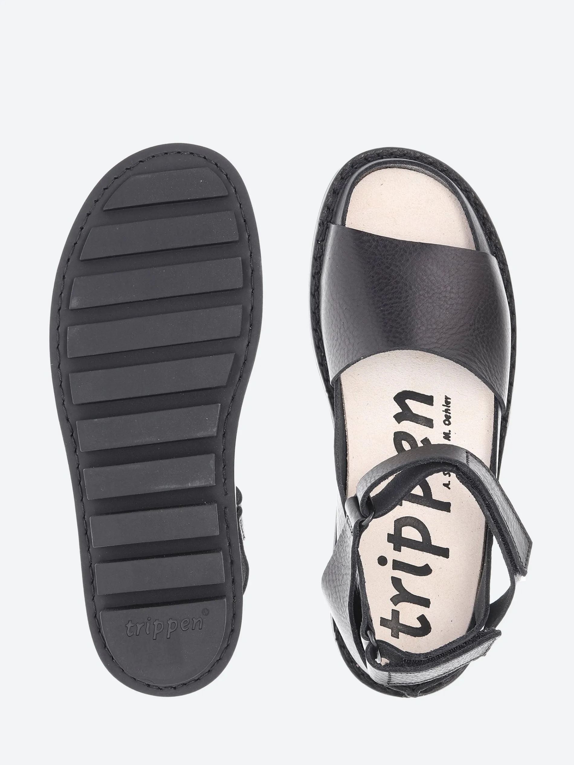 Trippen Fez minimalist sandal featuring an inner section with Velcro strap at the heel, a narrow front strip and a second Velco strap over the foot.