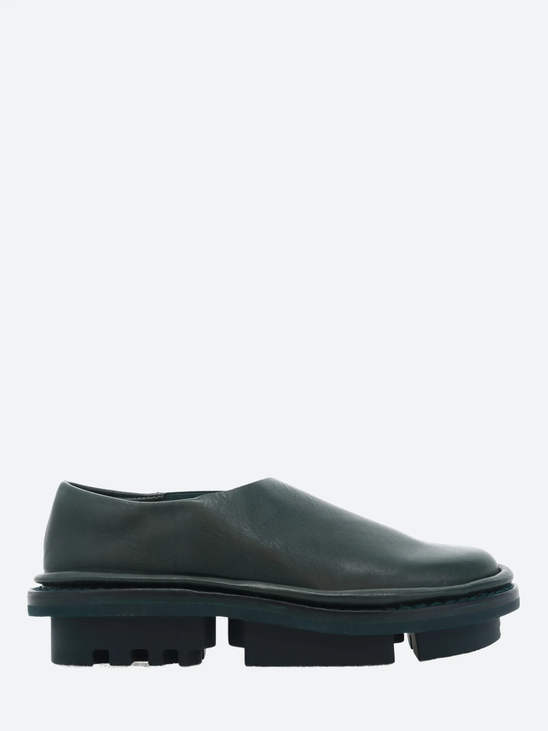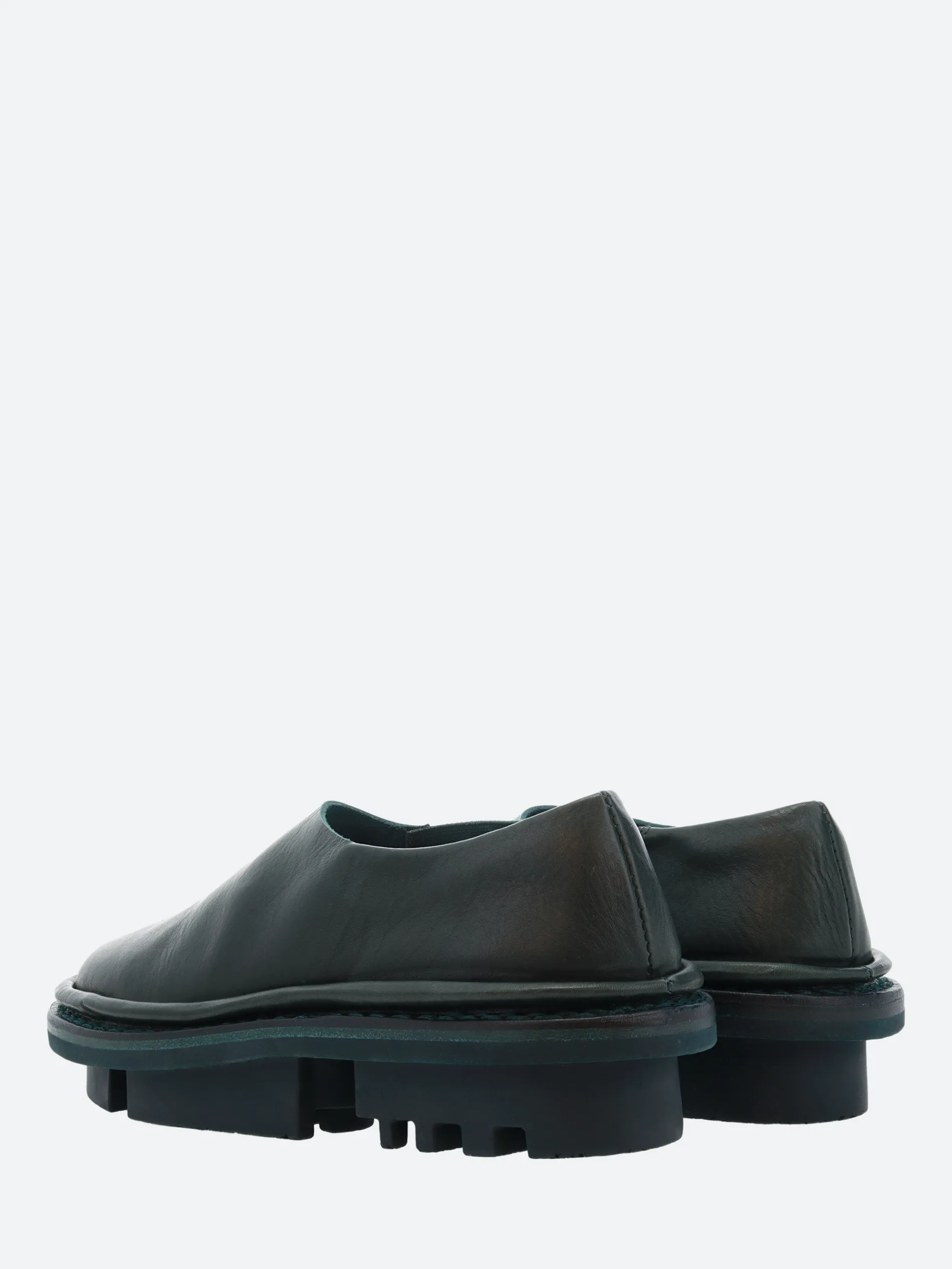The classic Trippen slip-on style receives a makeover with the wide leather tube around the edge.
