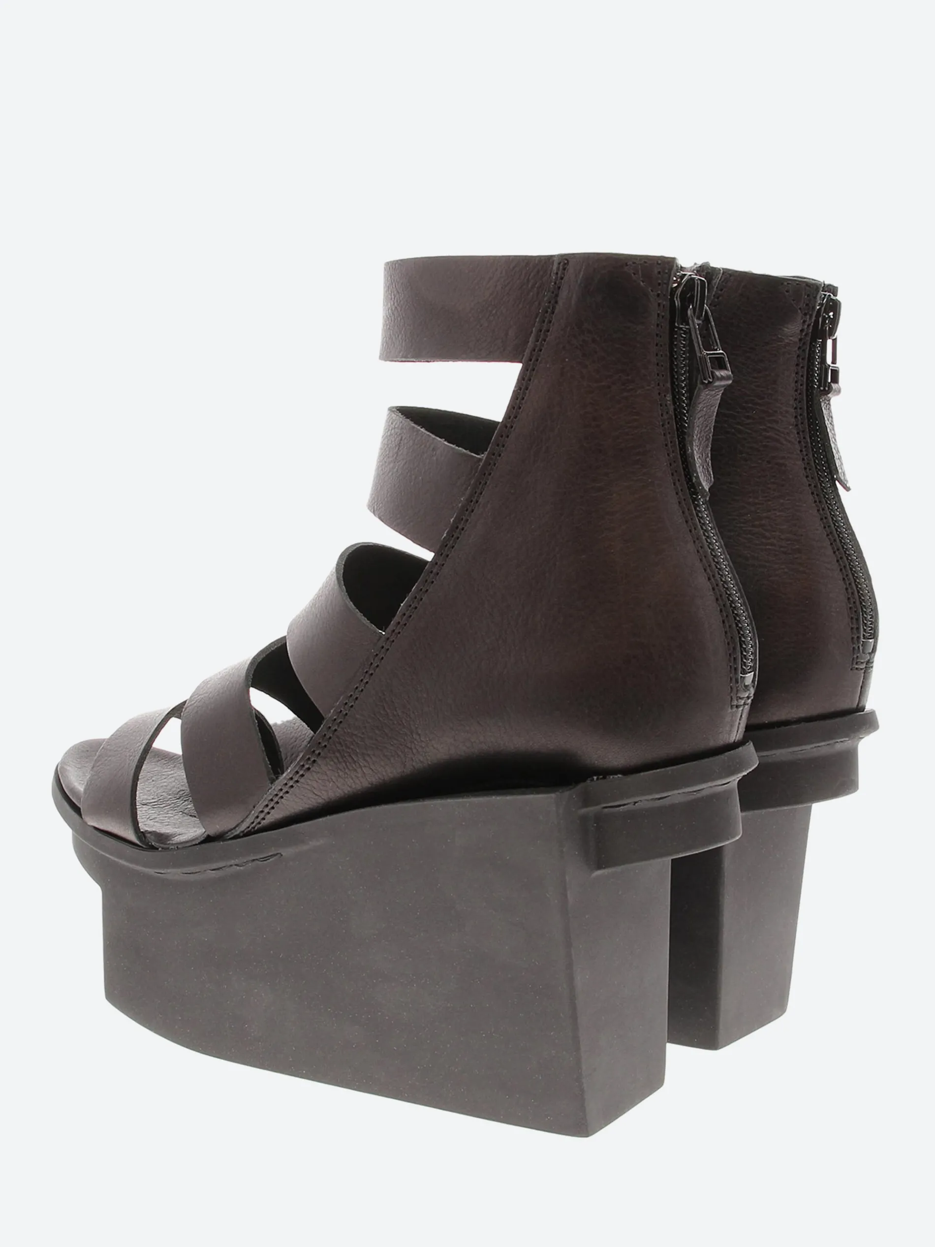 Elegant, graphic platform sandal perched on the sculptural Geisha sole. The zip at the heel enables easy access to this style.