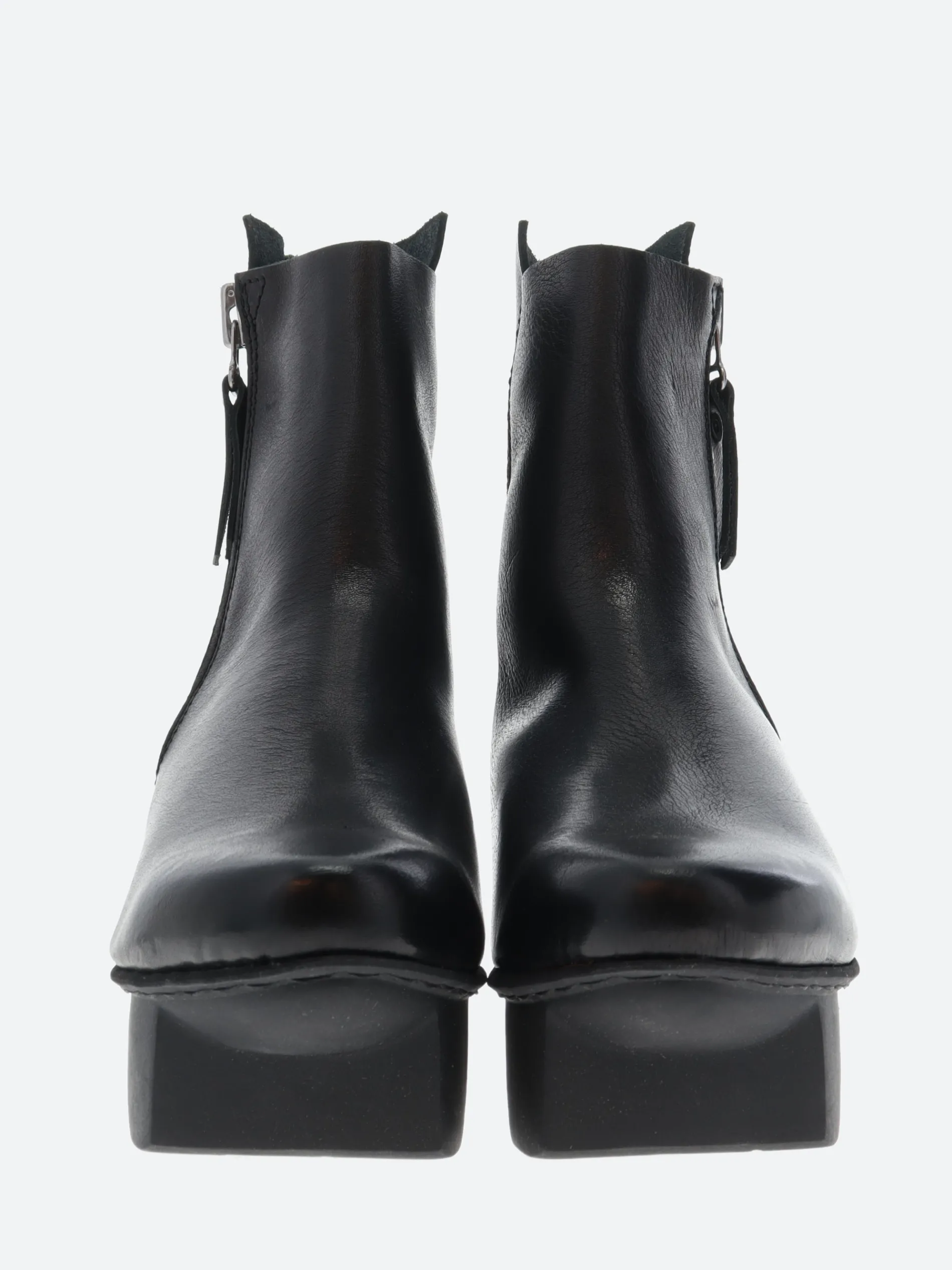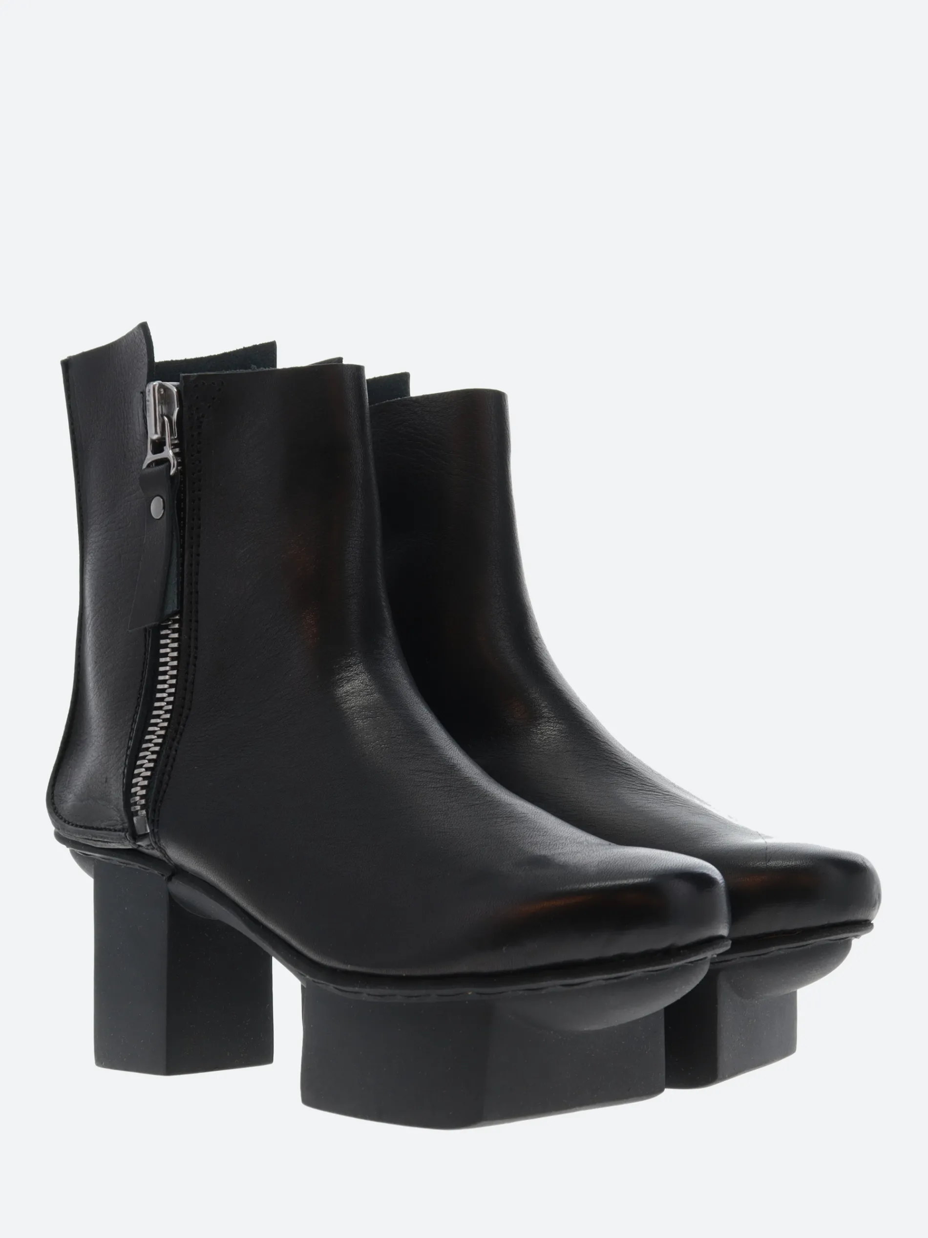 The metal zip fastener is placed on the outside, thus transforming a merely functional element into a design feature.