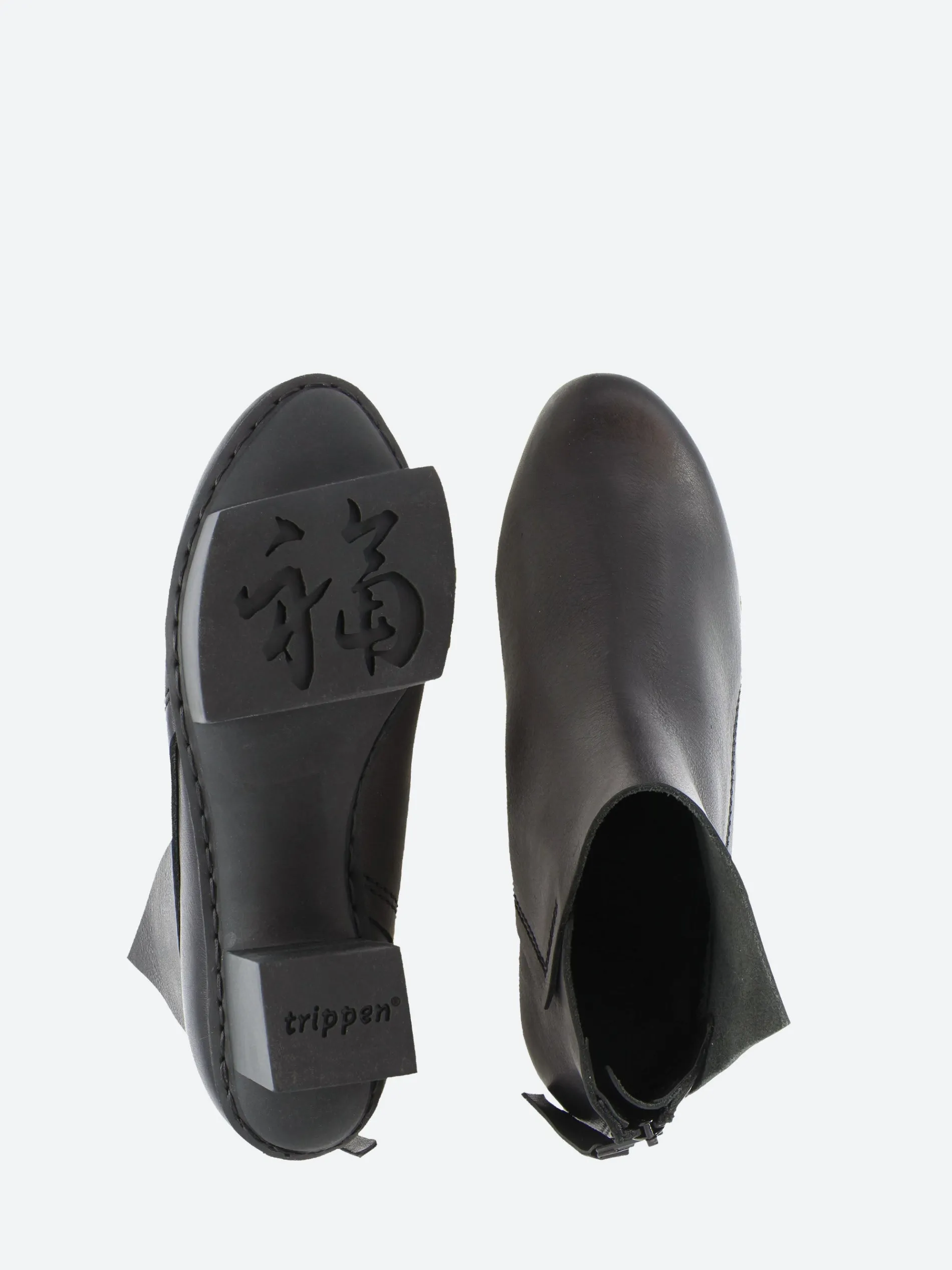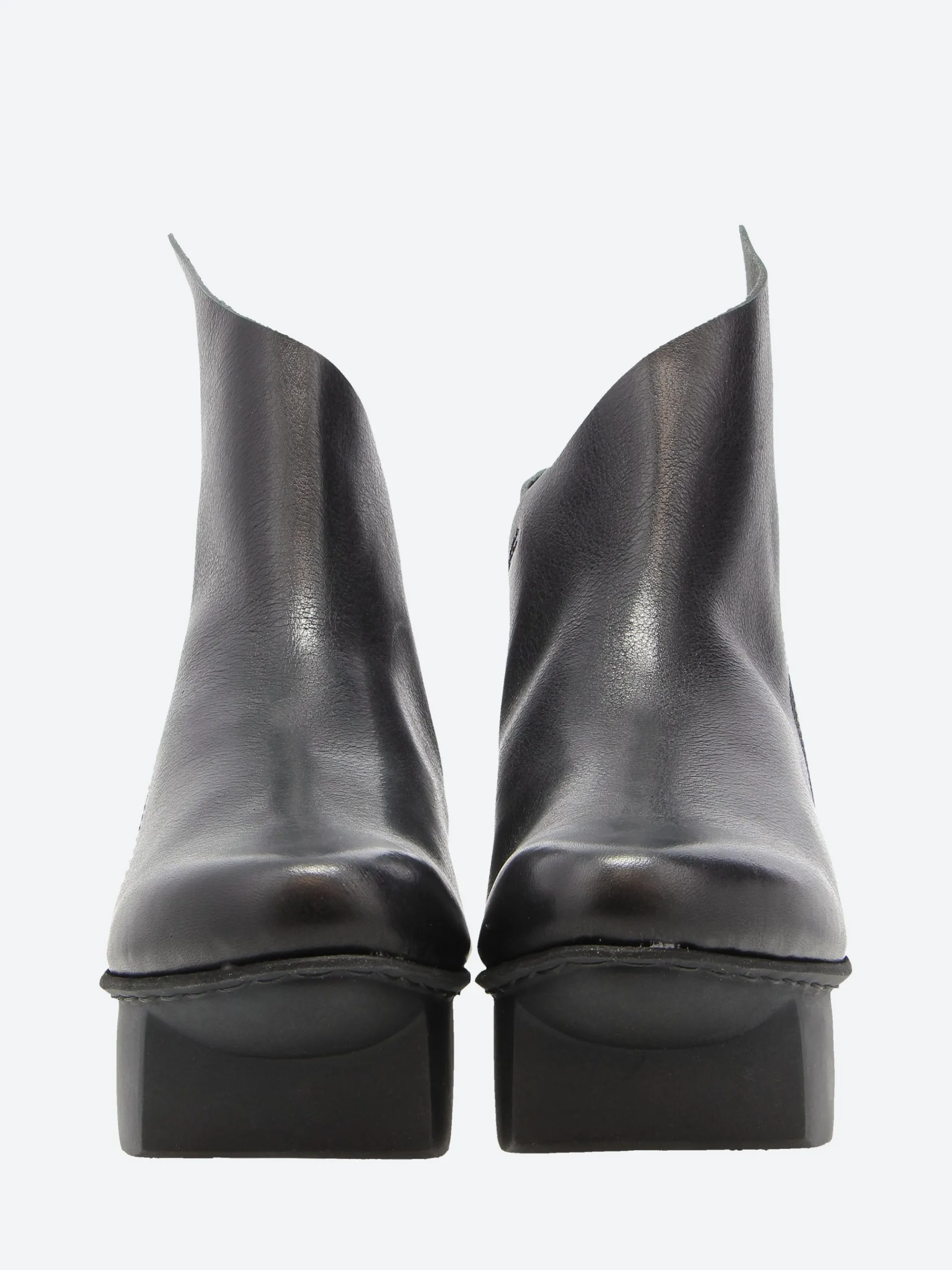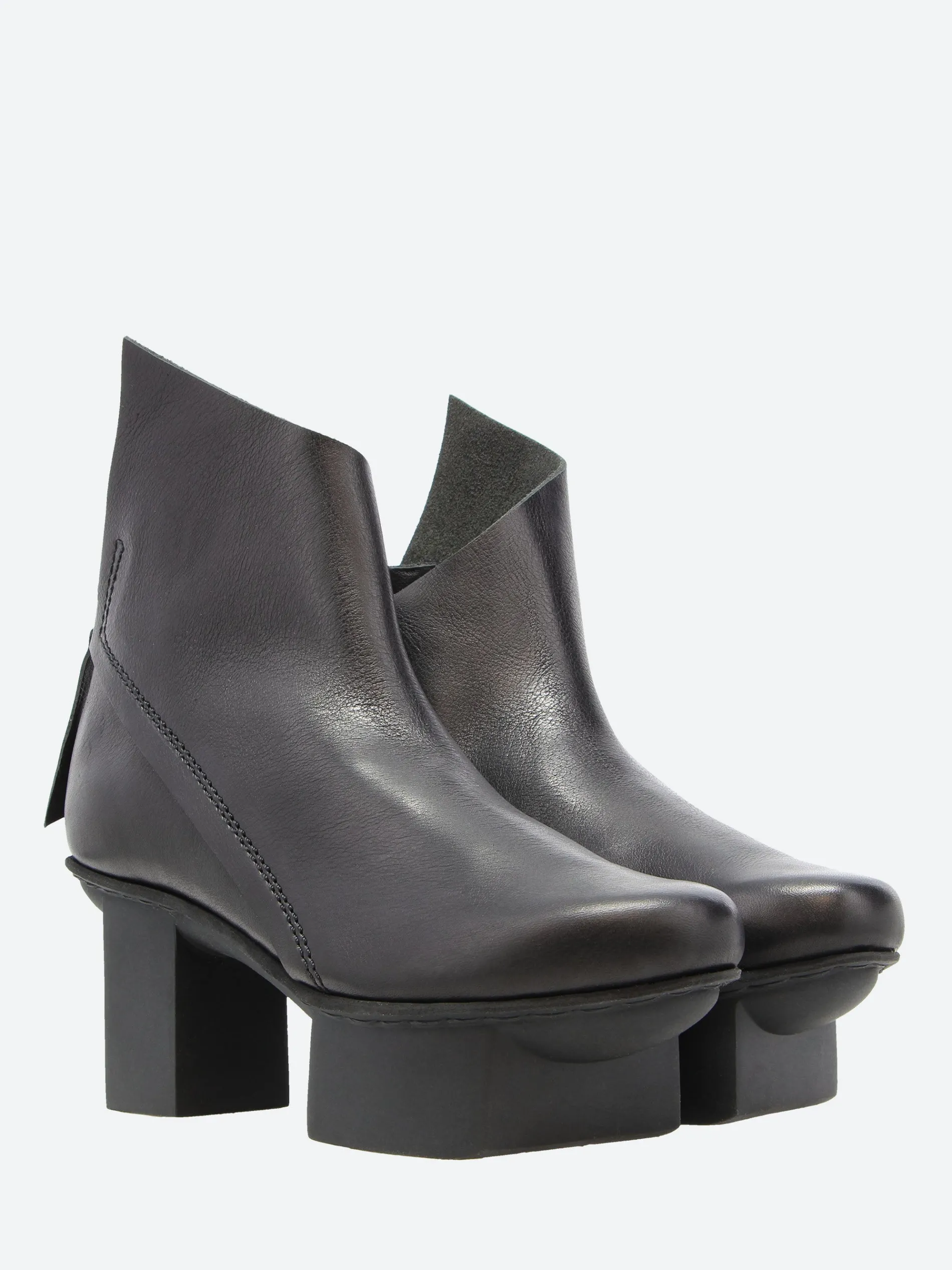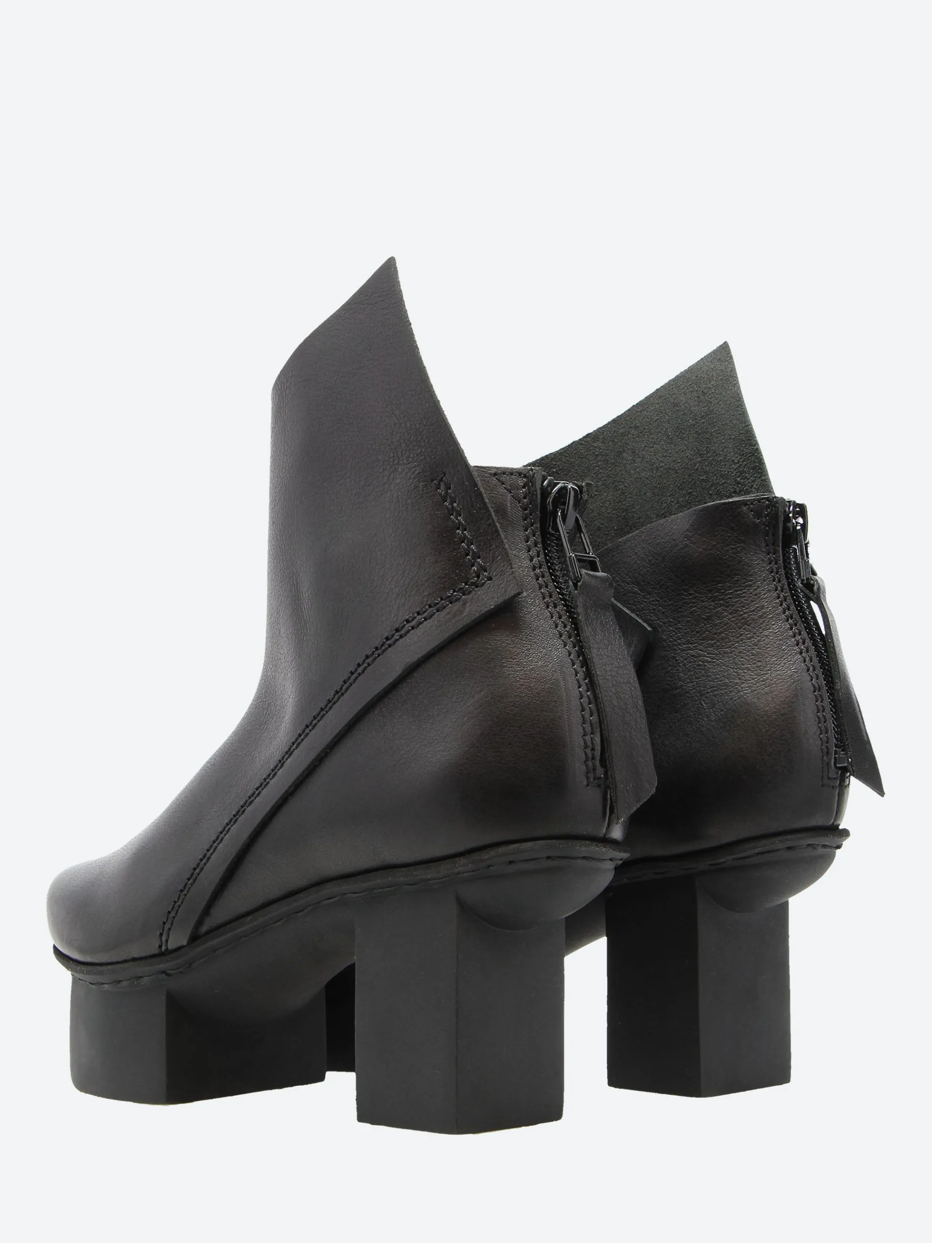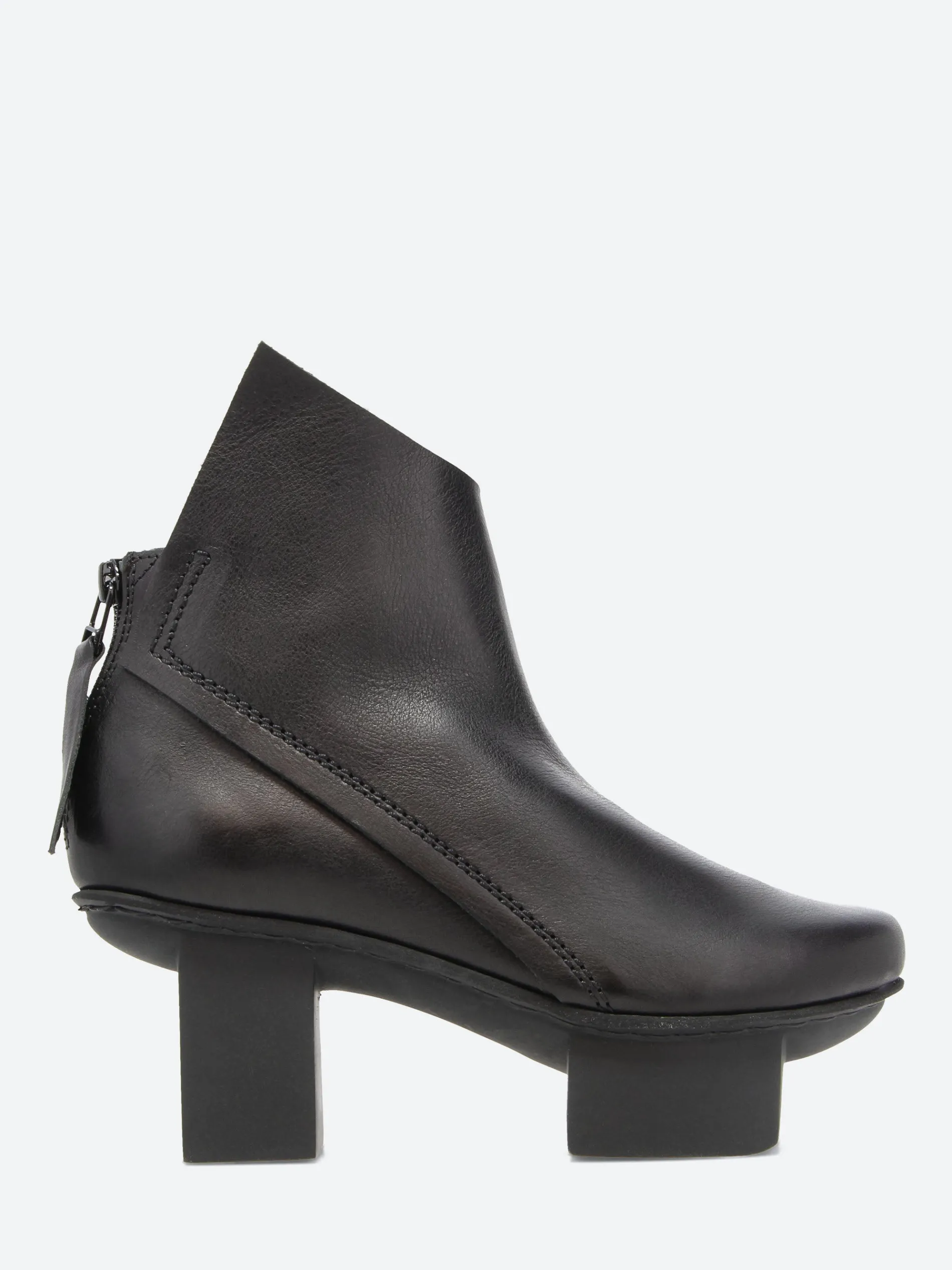Prospect’s asymmetrical lines create a statement above the outer ankle. The boot is finished with a zipper closure at the back.