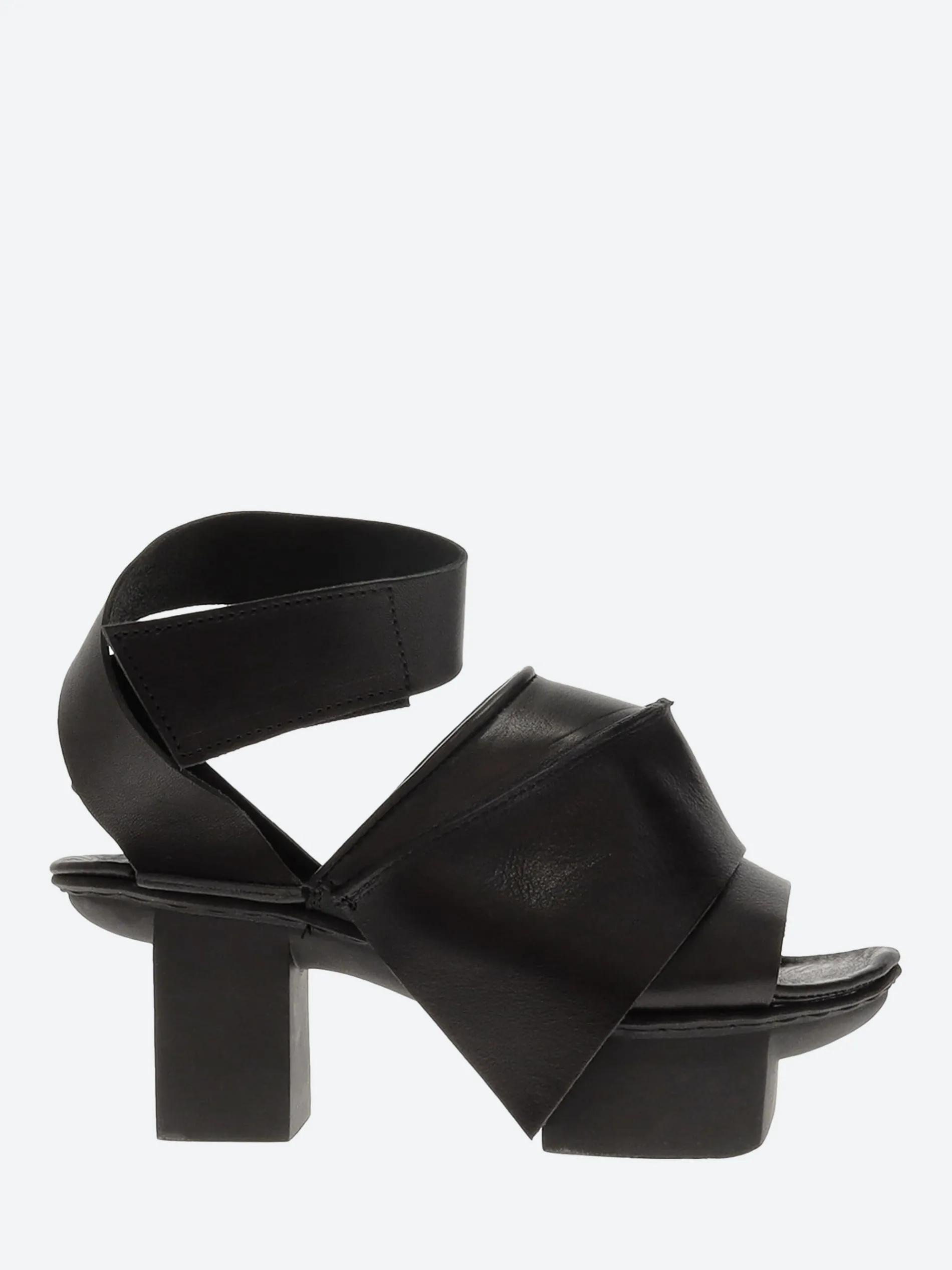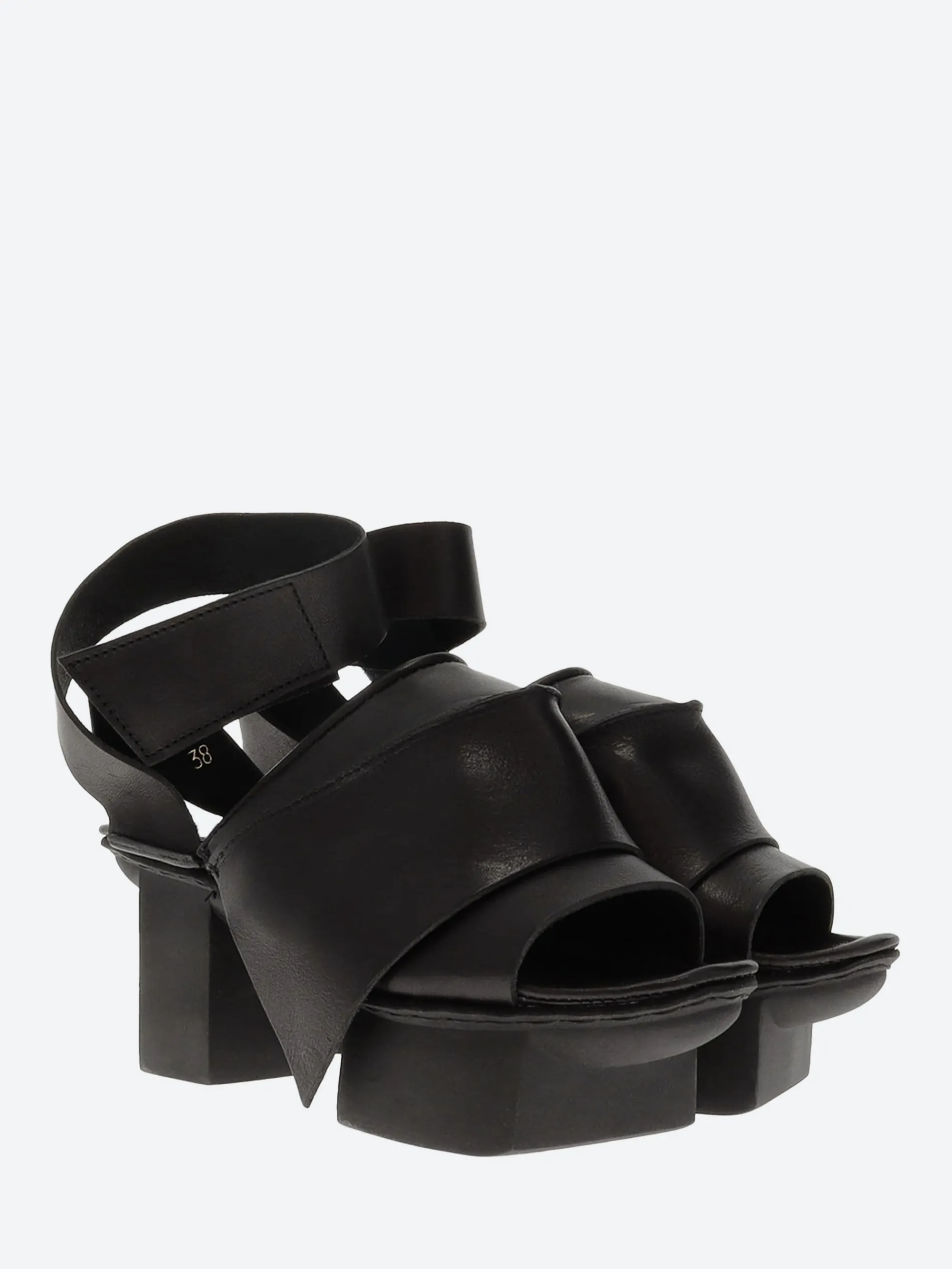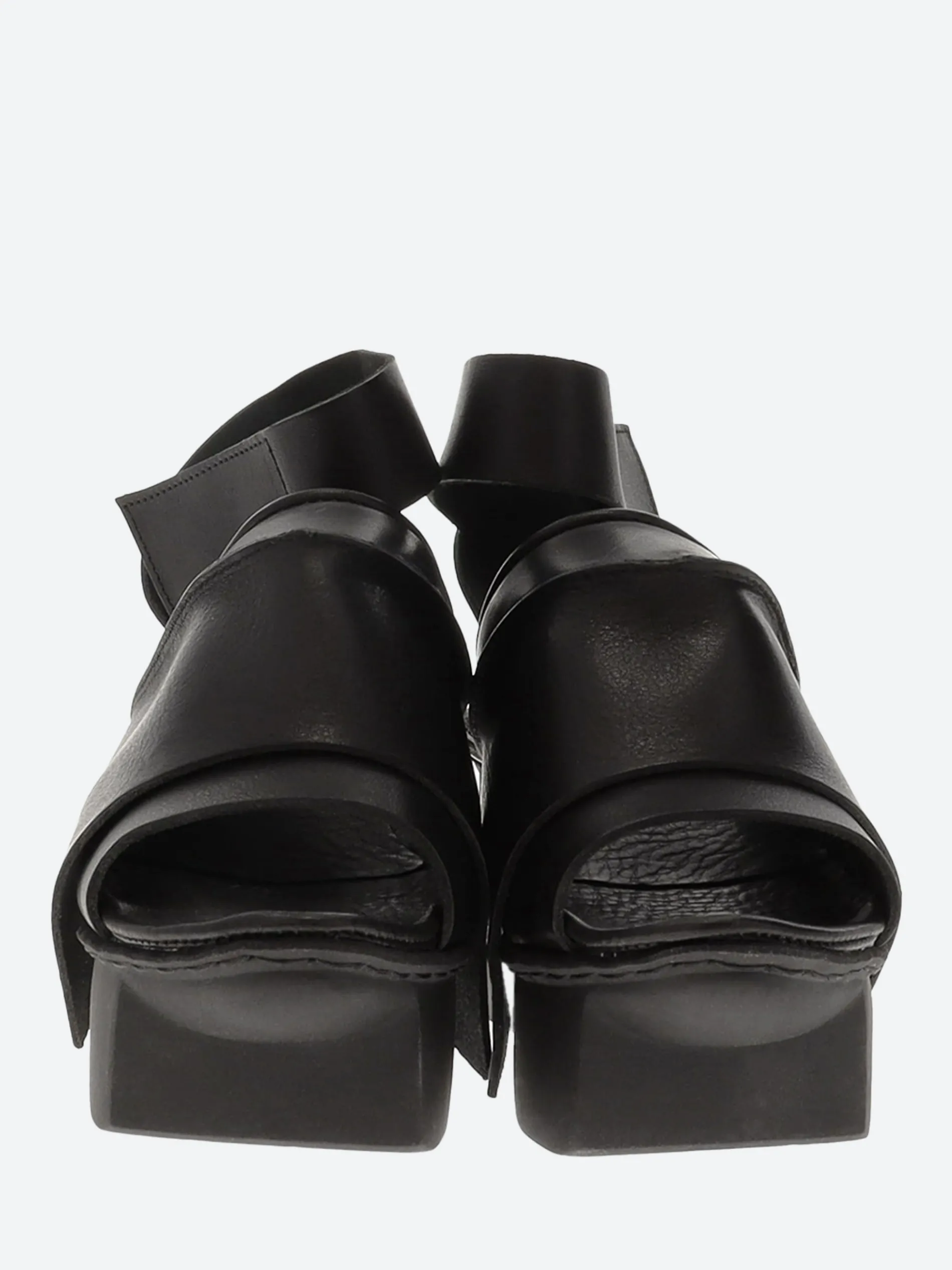 Trippen Happy Vigilant, a cubist three-dimensional sandal with an elegant crossed ankle strap to secure the foot.