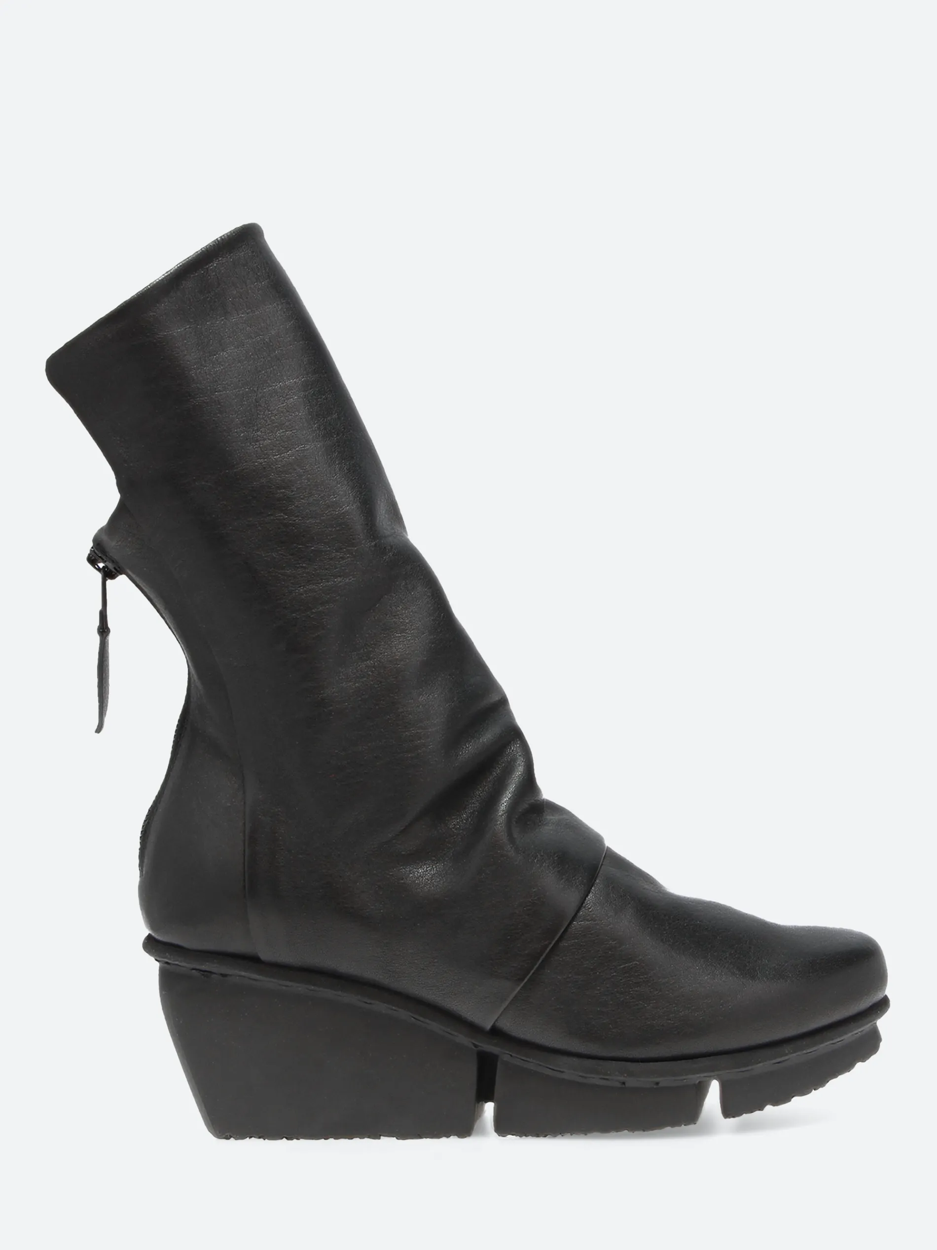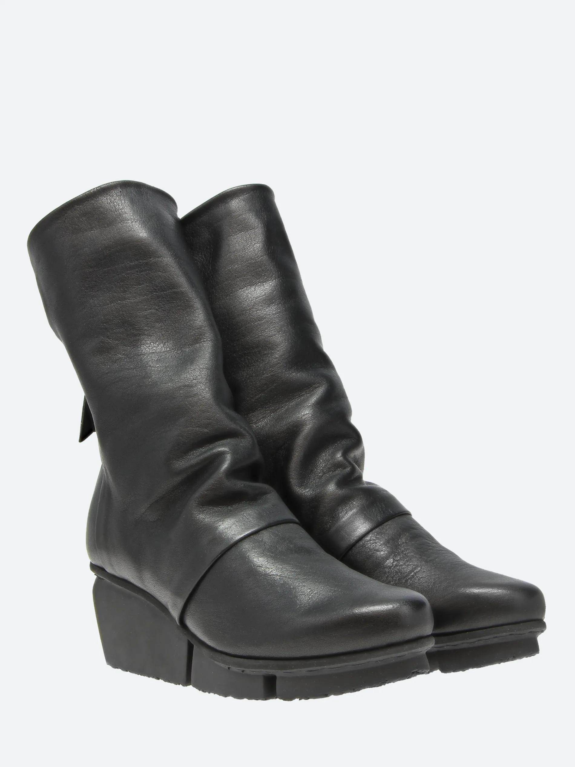 Mid-high, softly crafted boot that folds over the instep in soft pleats. The strikingly raised front part of the shaft promises a special standing.