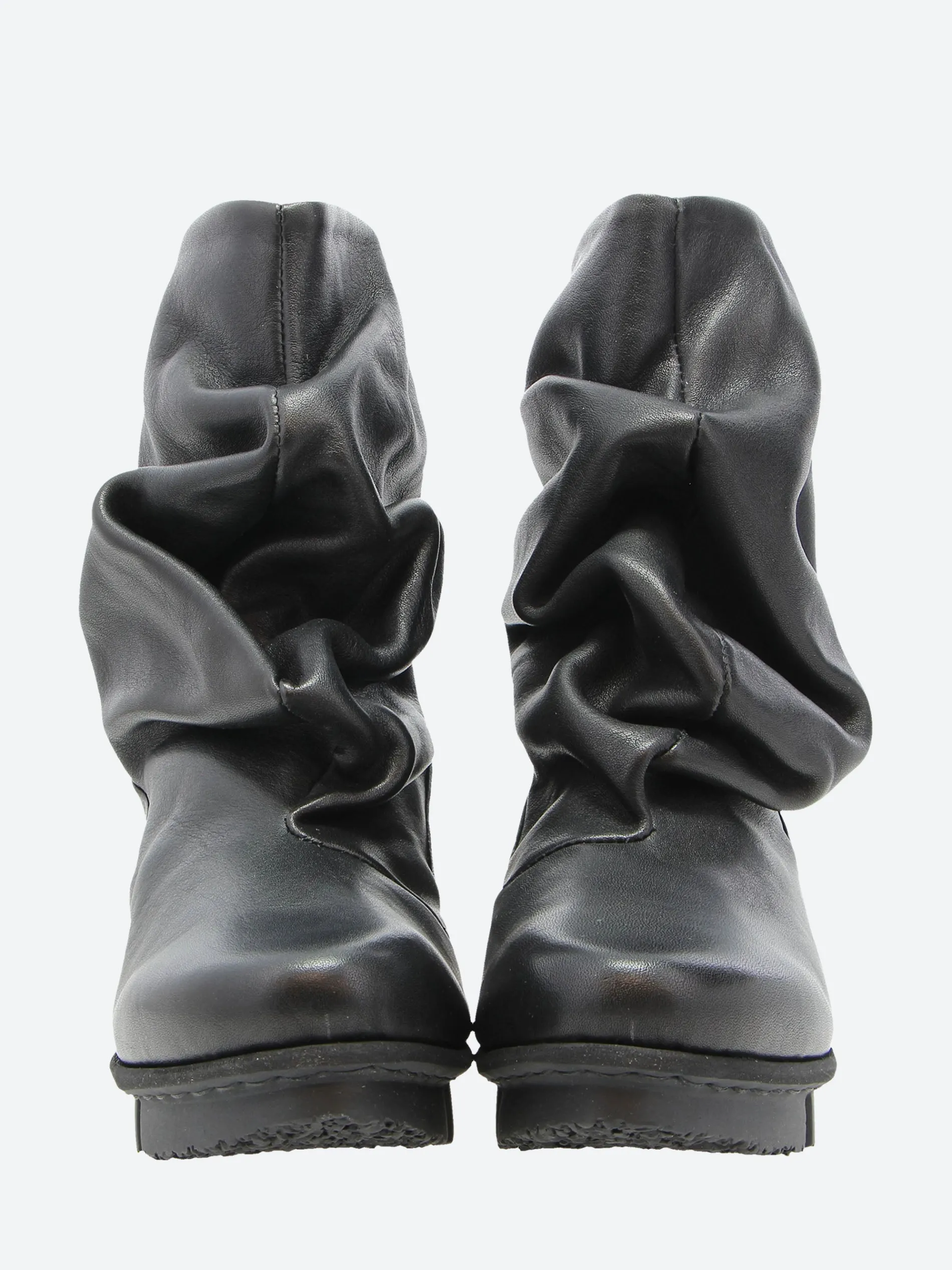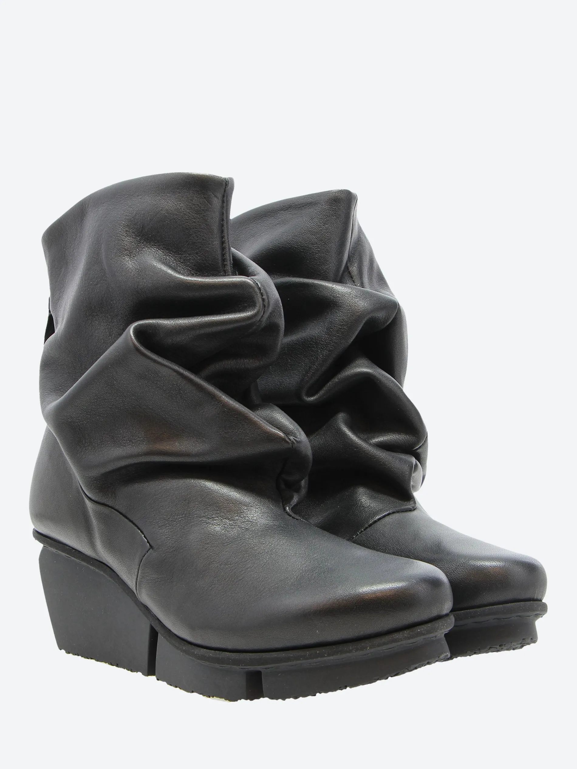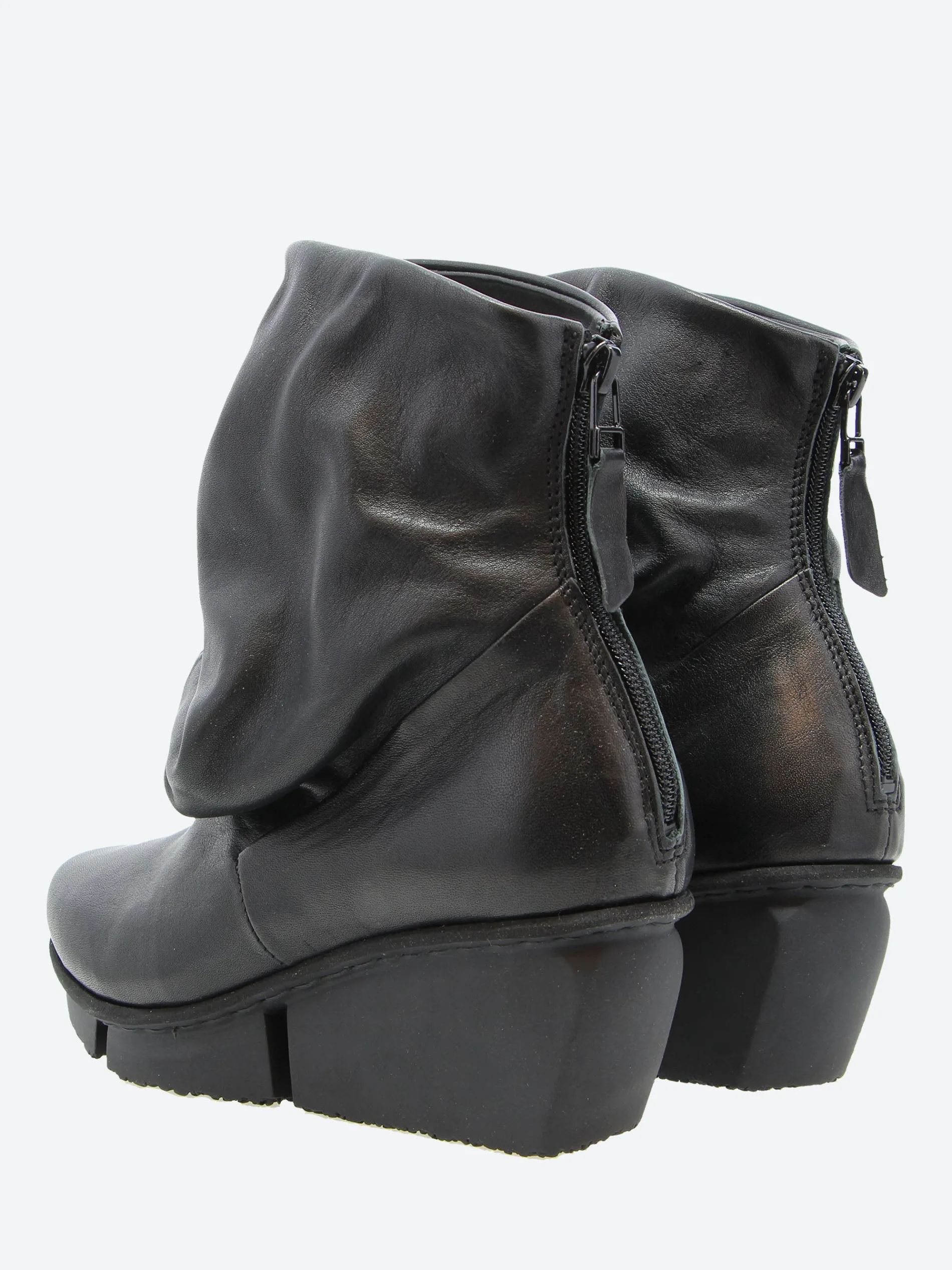 The shape of this casual ankle boot is created by the volume of the soft leather, which folds over the entire front area in gentle waves. The boot fastens with a zipper at the back.