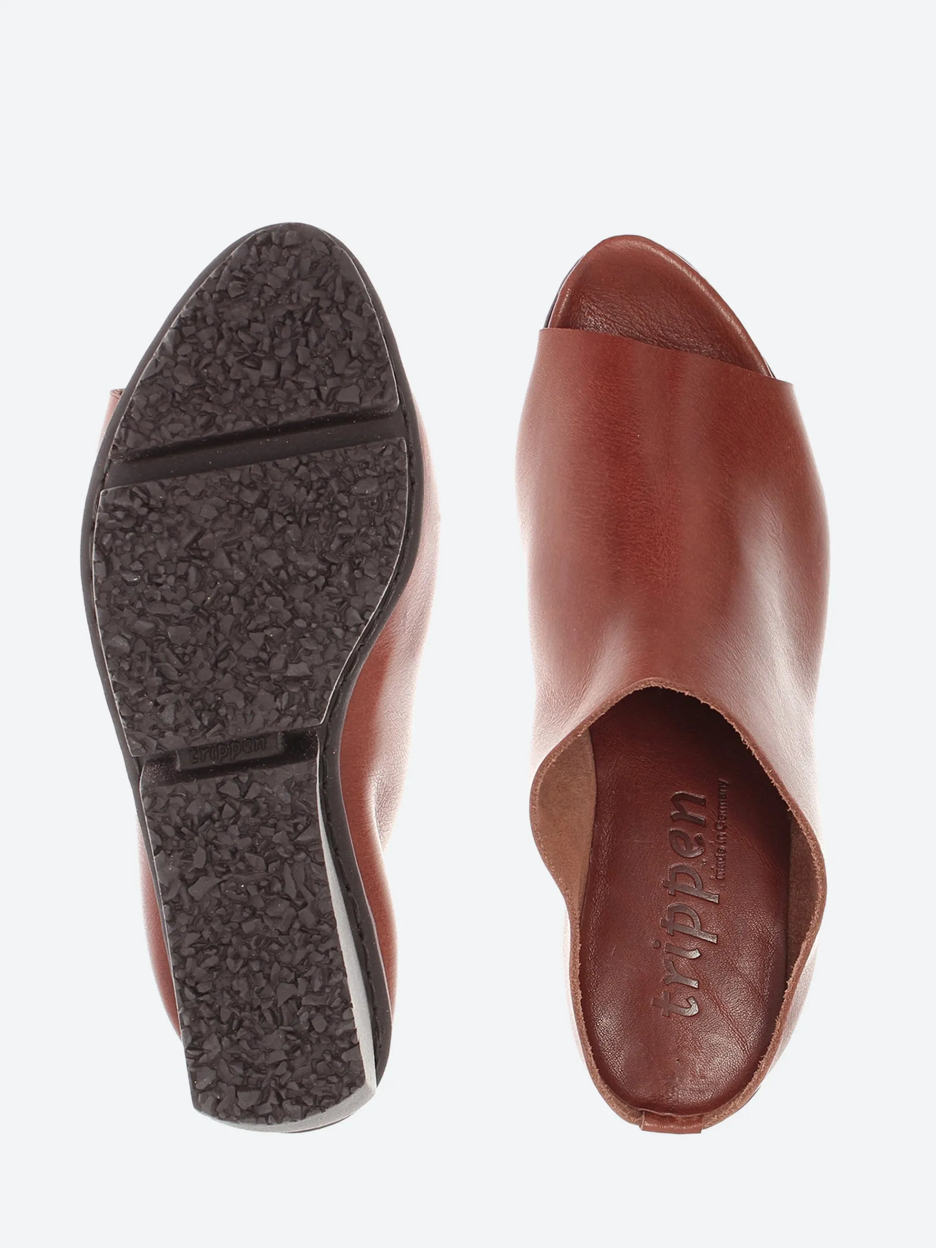 Trippen Solo is a minimalist slip-on shoe with open toe section and modern contours on the Splitt sole.