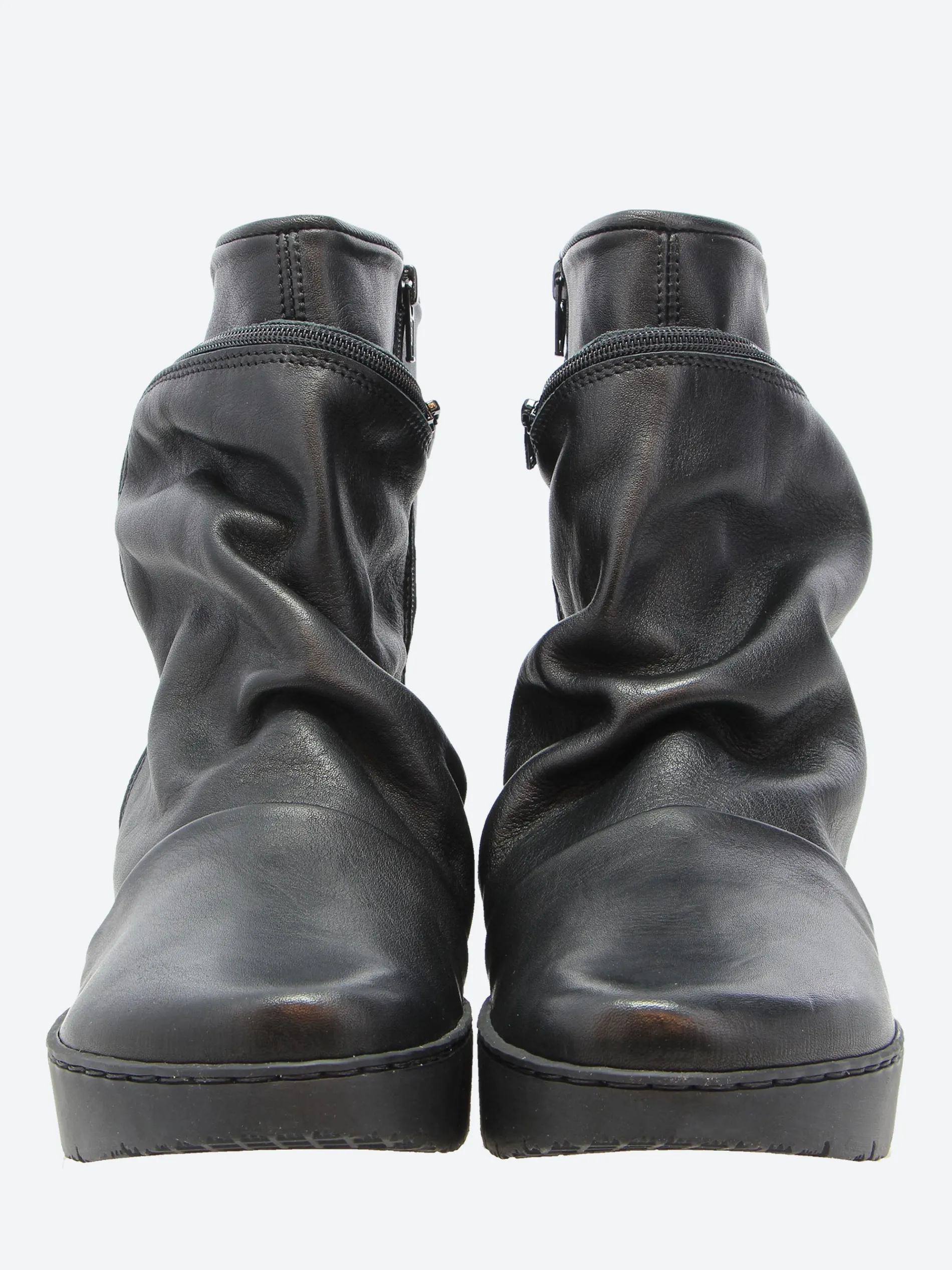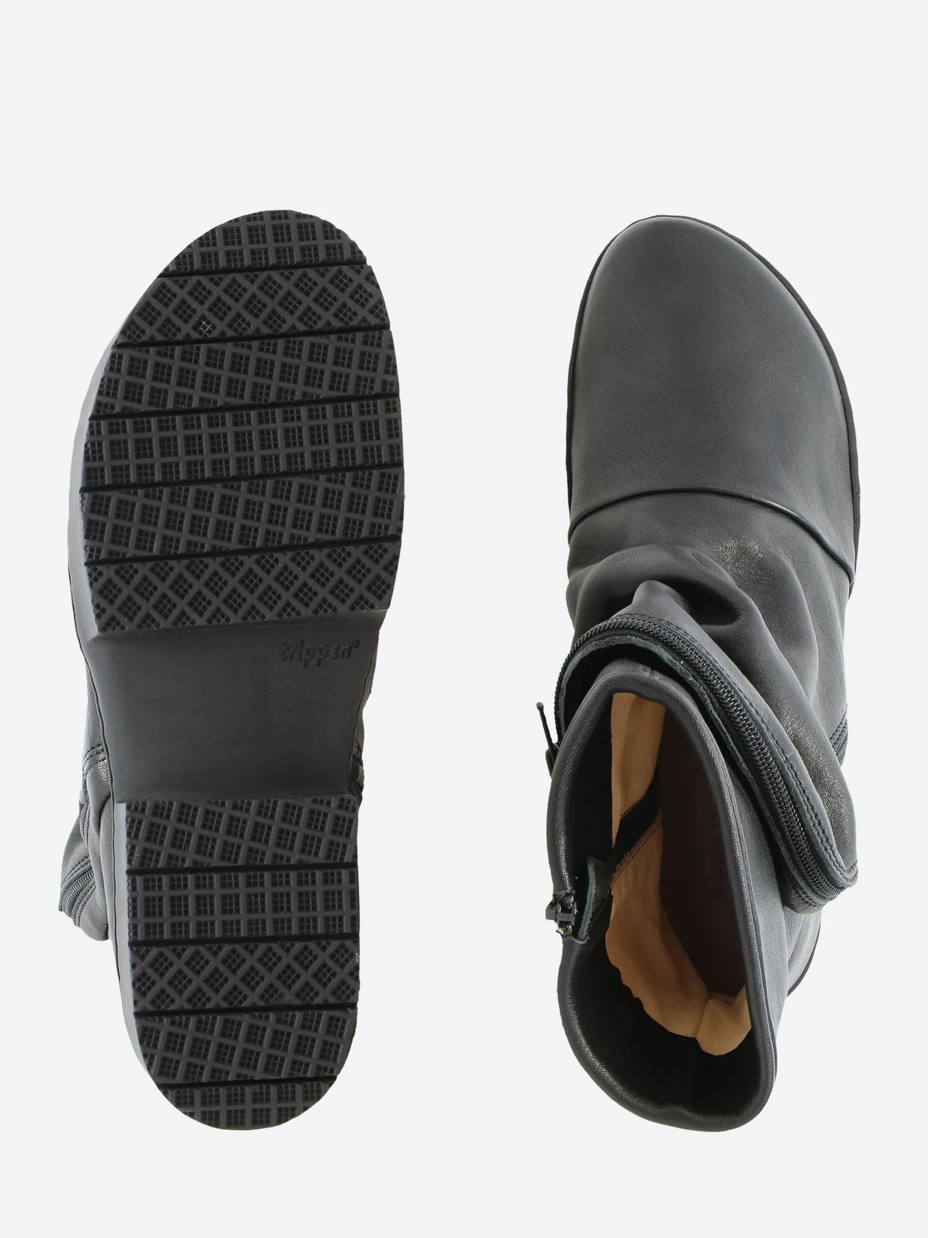 Ankle boot with distinctive zip which is as aesthetic as it is functional. The working pocket attached to the front of this style can be filled and creates a casual impression.