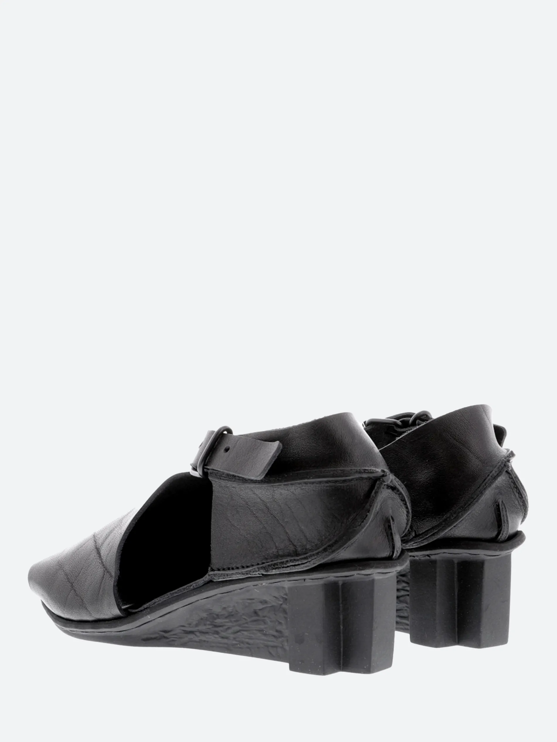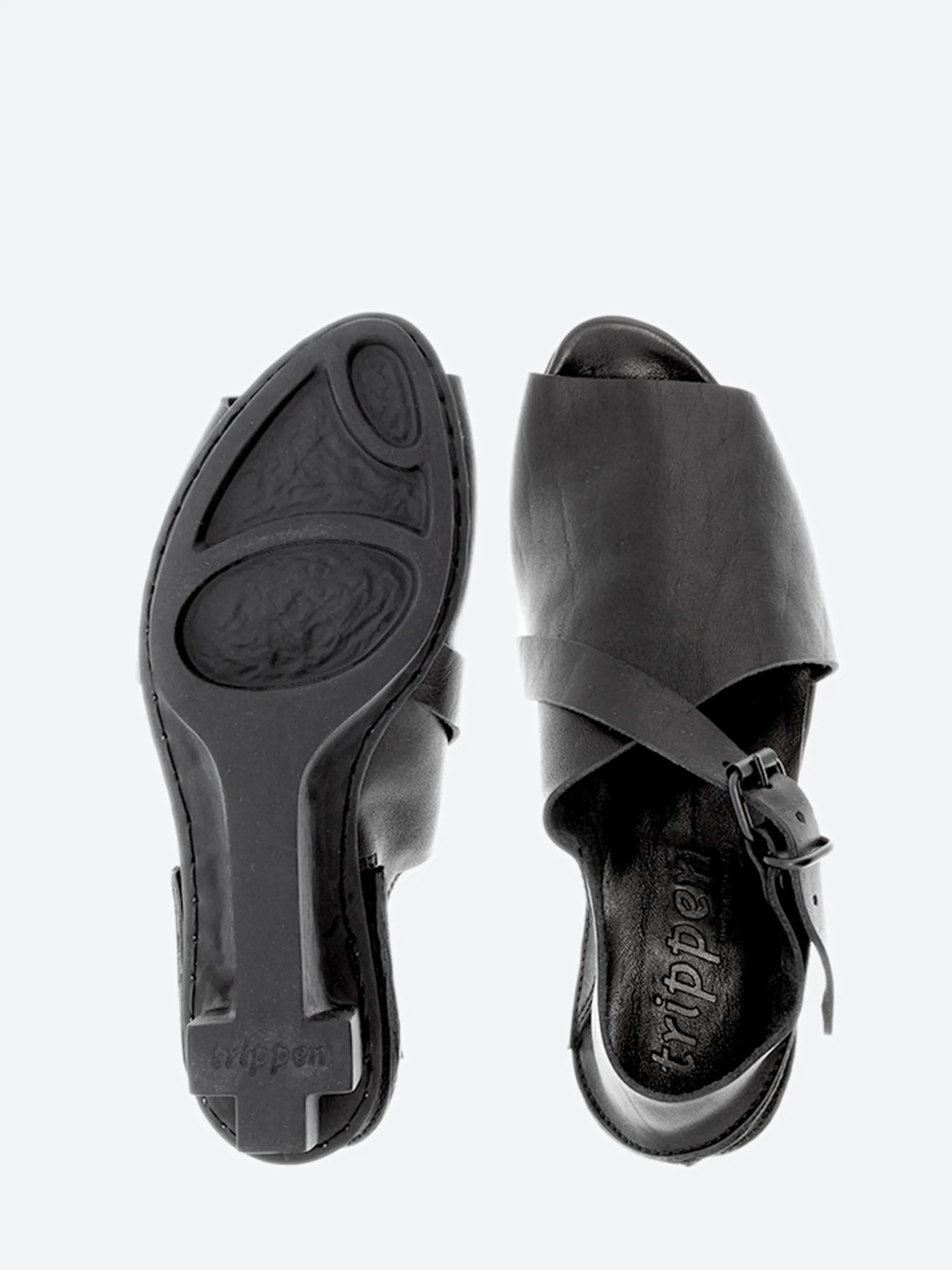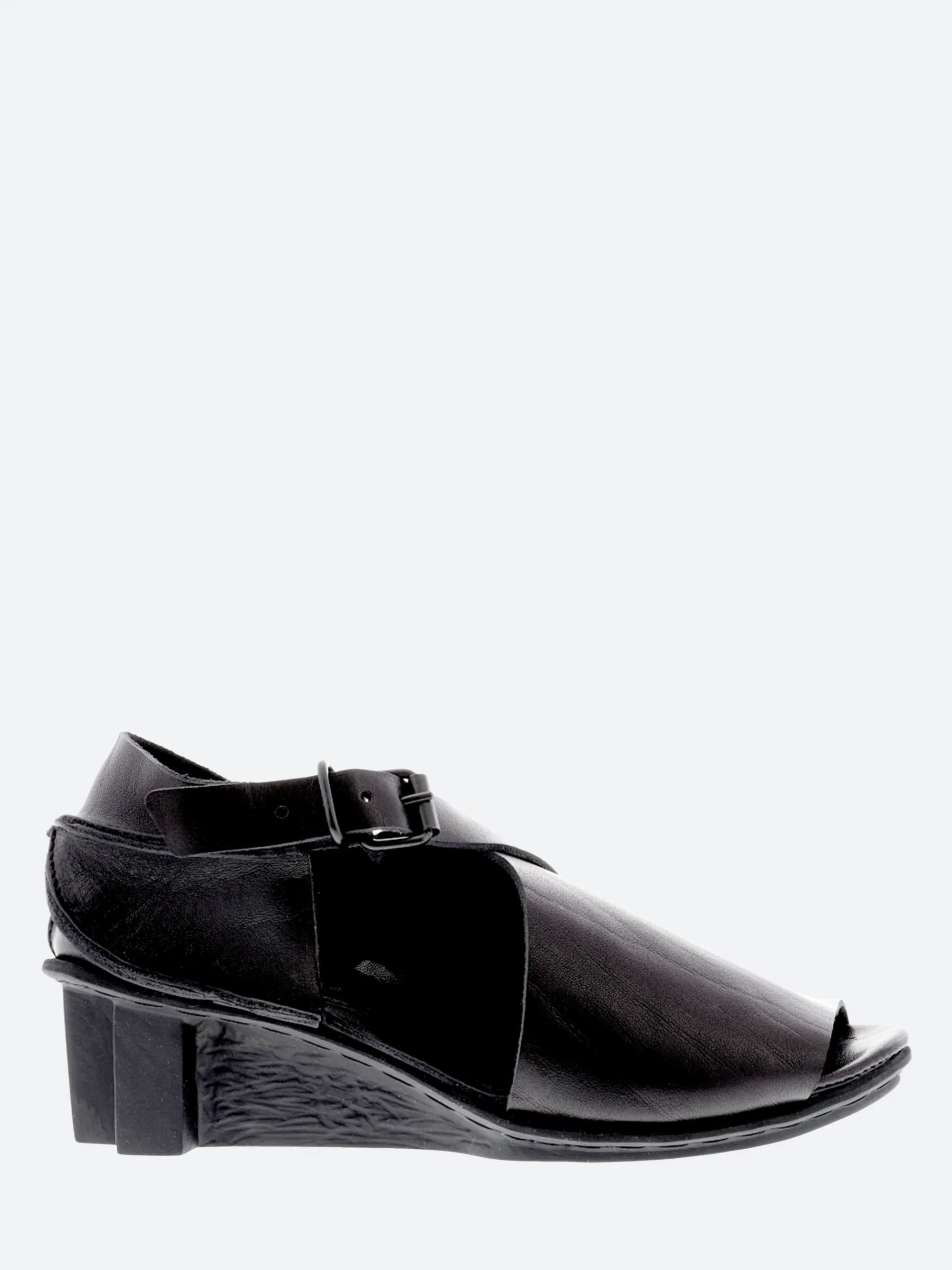 Sandal with dynamic lines, cut deep at the outer side, but closed over the instep and around the heel. The buckled strap running diagonally over the instep provides optimum support.