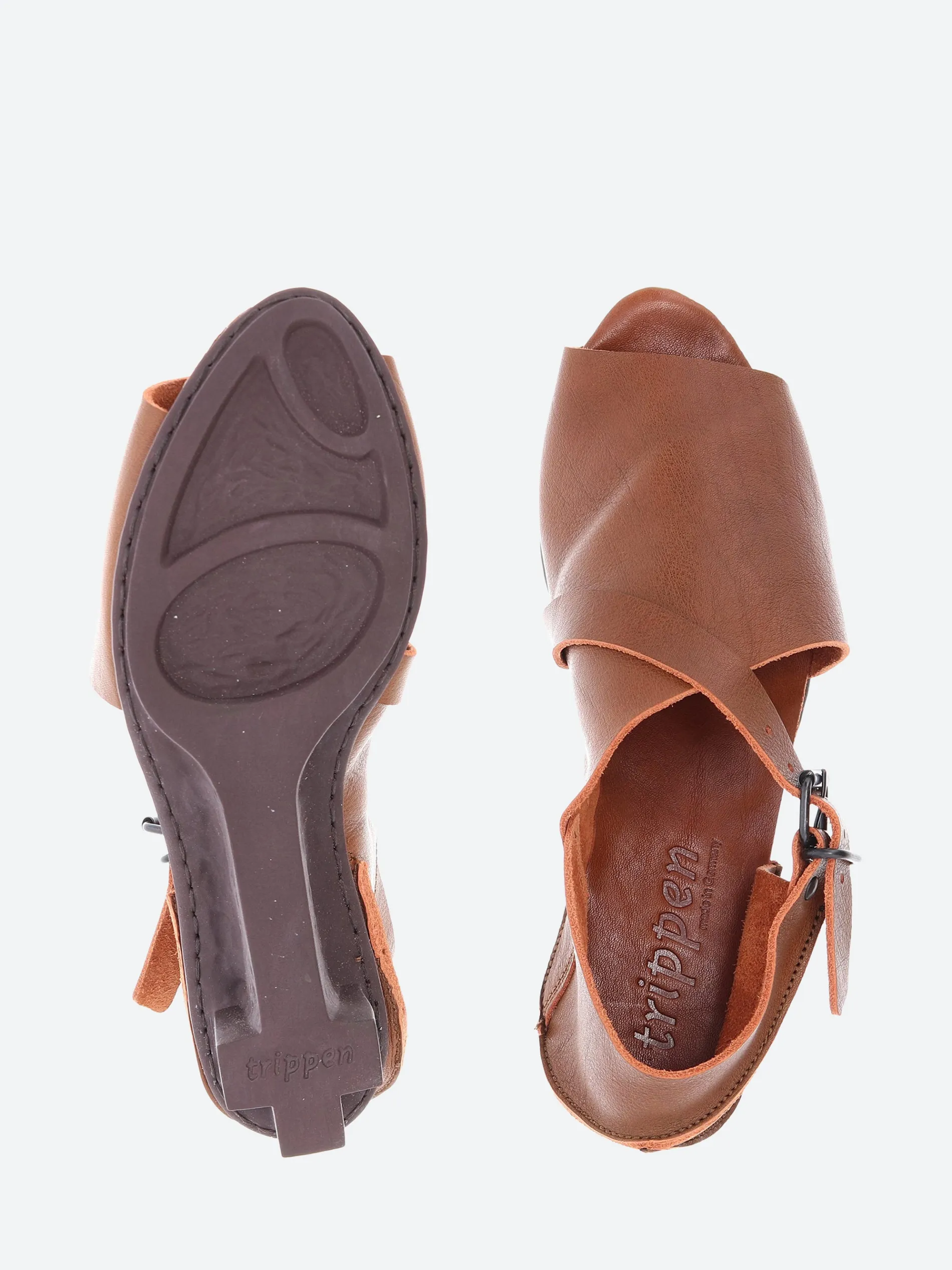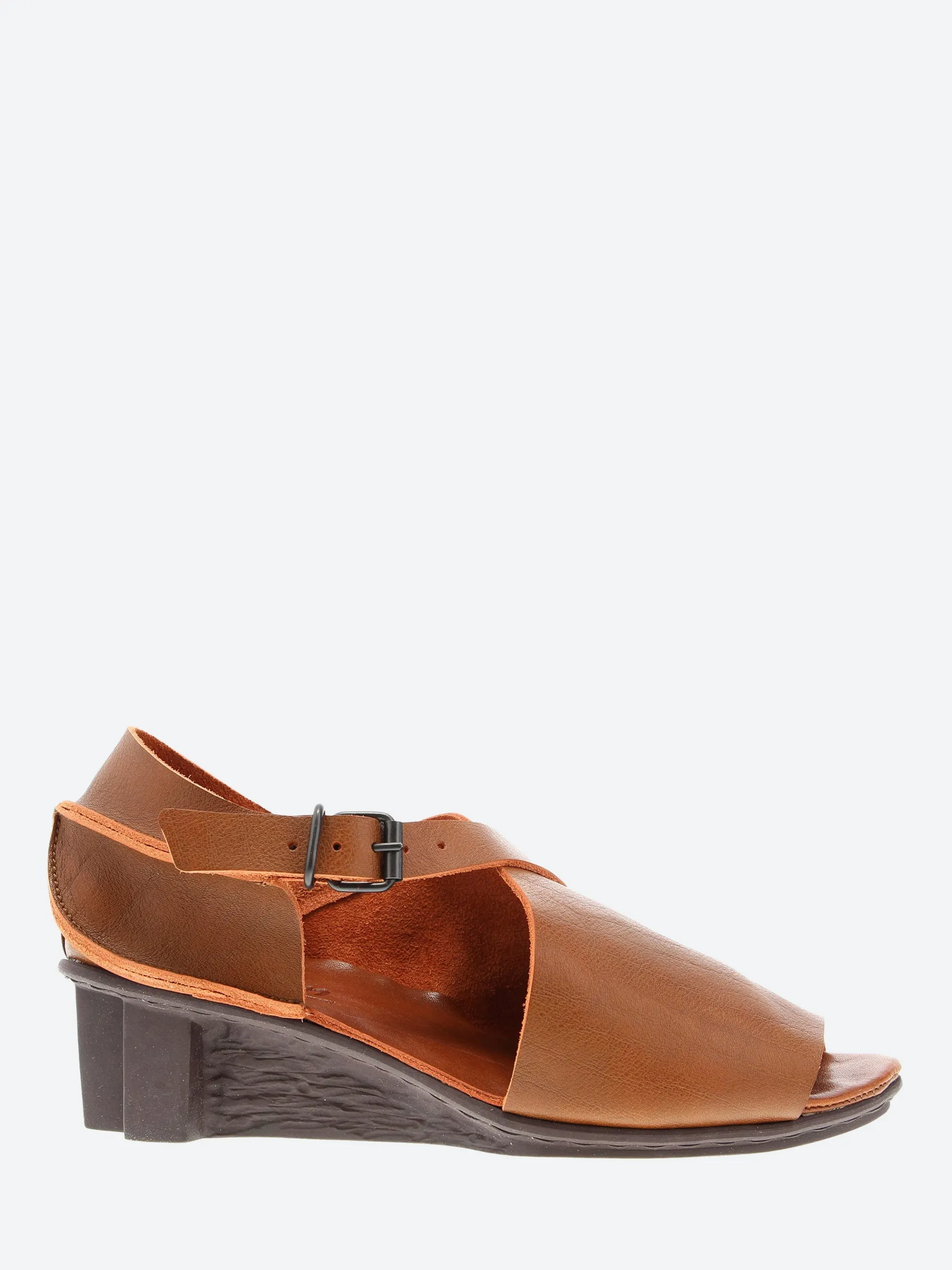 Sandal with dynamic lines, cut deep at the outer side, but closed over the instep and around the heel. The buckled strap running diagonally over the instep provides optimum support.