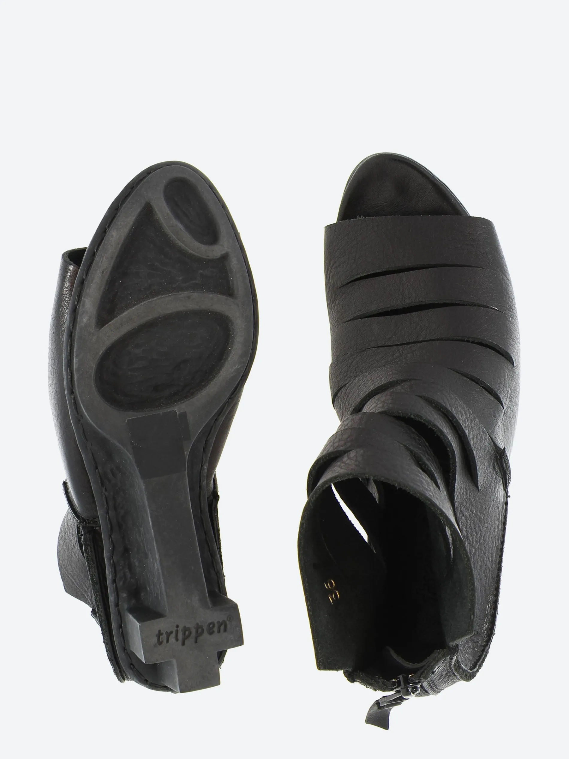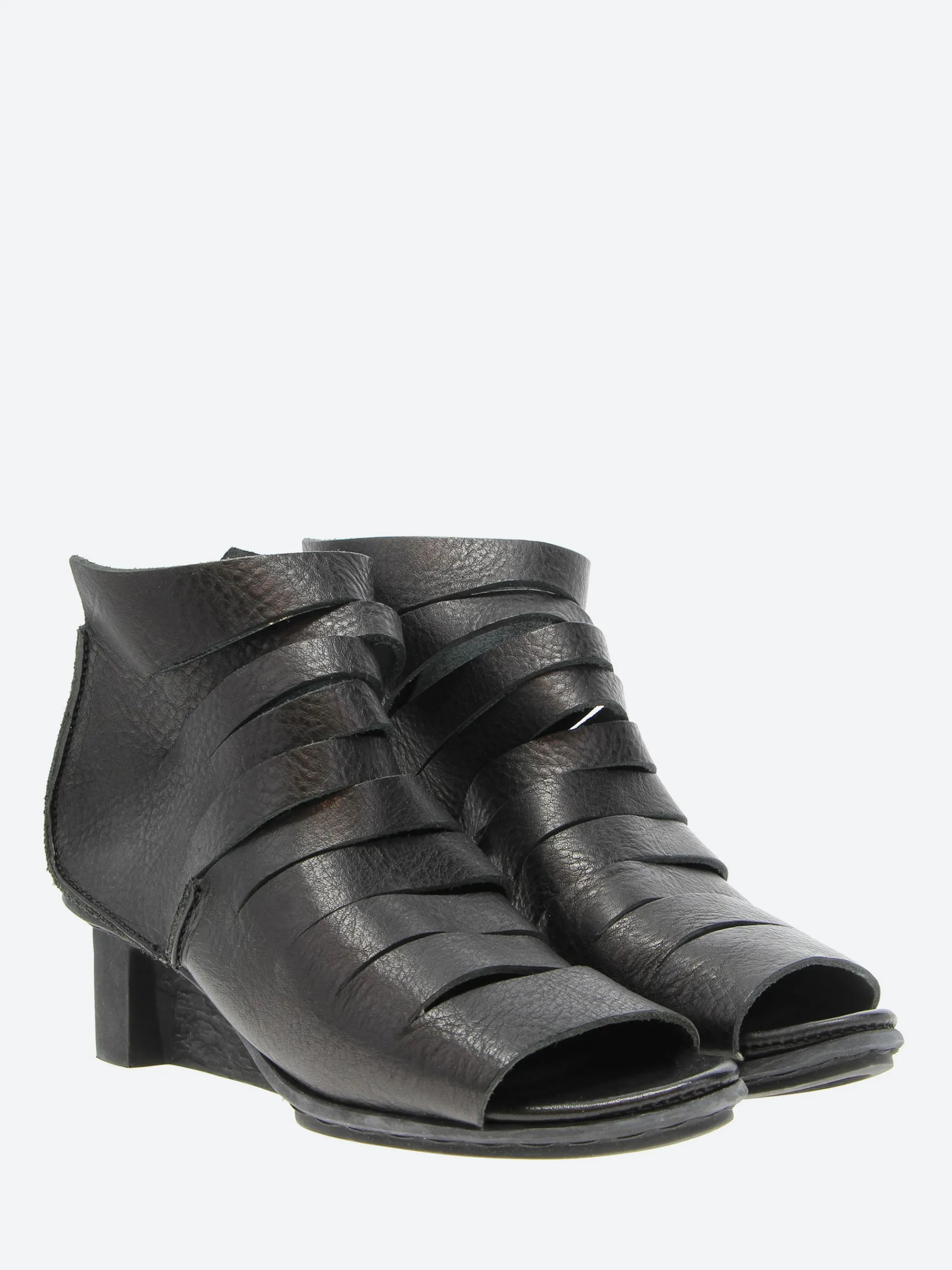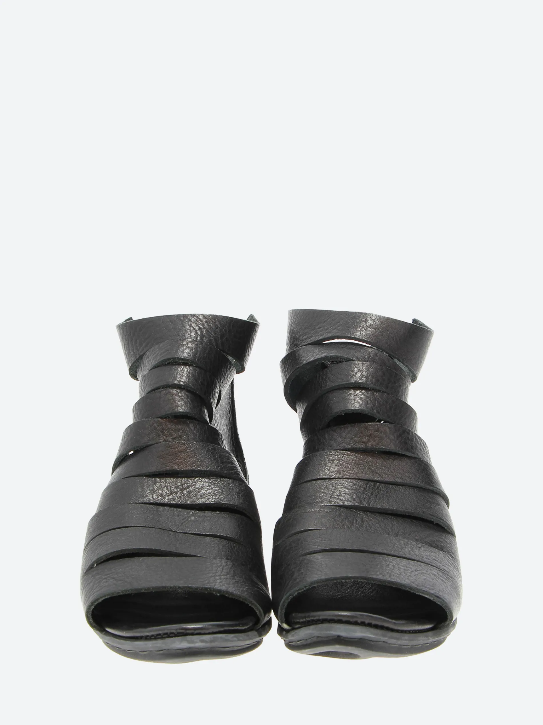 Trippen sandal featuring grooves in the top leather which allows the upper to follow the contours of the foot without the need for a seam on the instep.