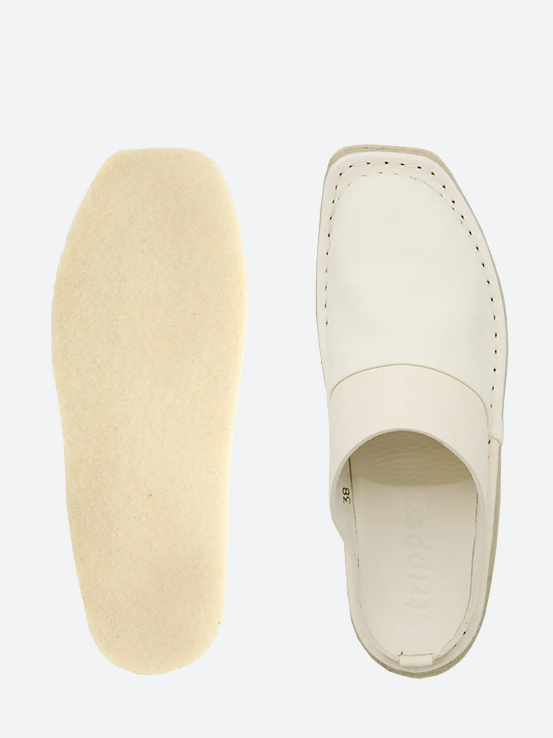 Chic, simple Trippen Pause slip-on shoe featuring a mix of materials. The silhouette of this barefoot style protects the crepe from undue wear and tear. The sole extension creates elegant lines.