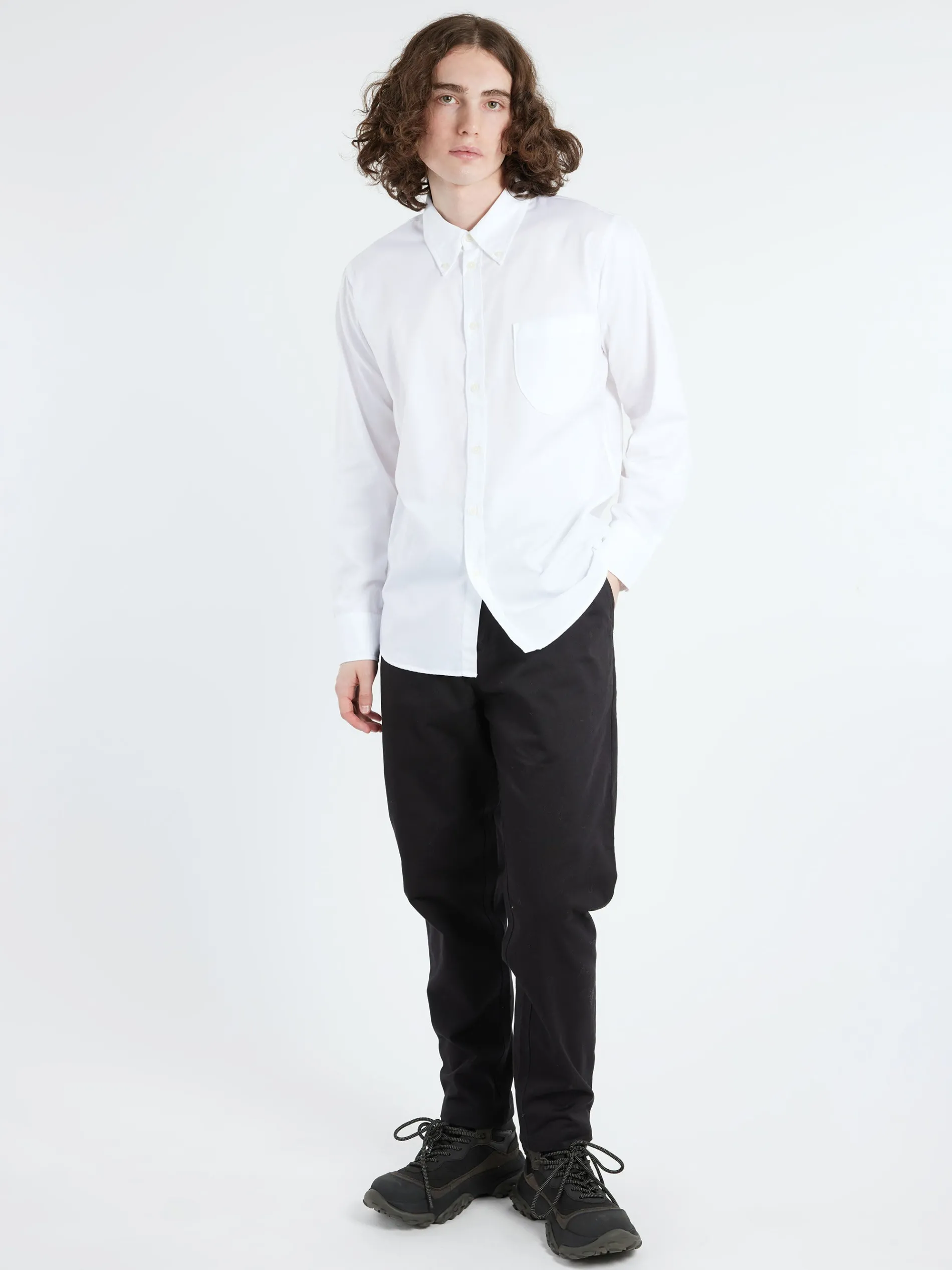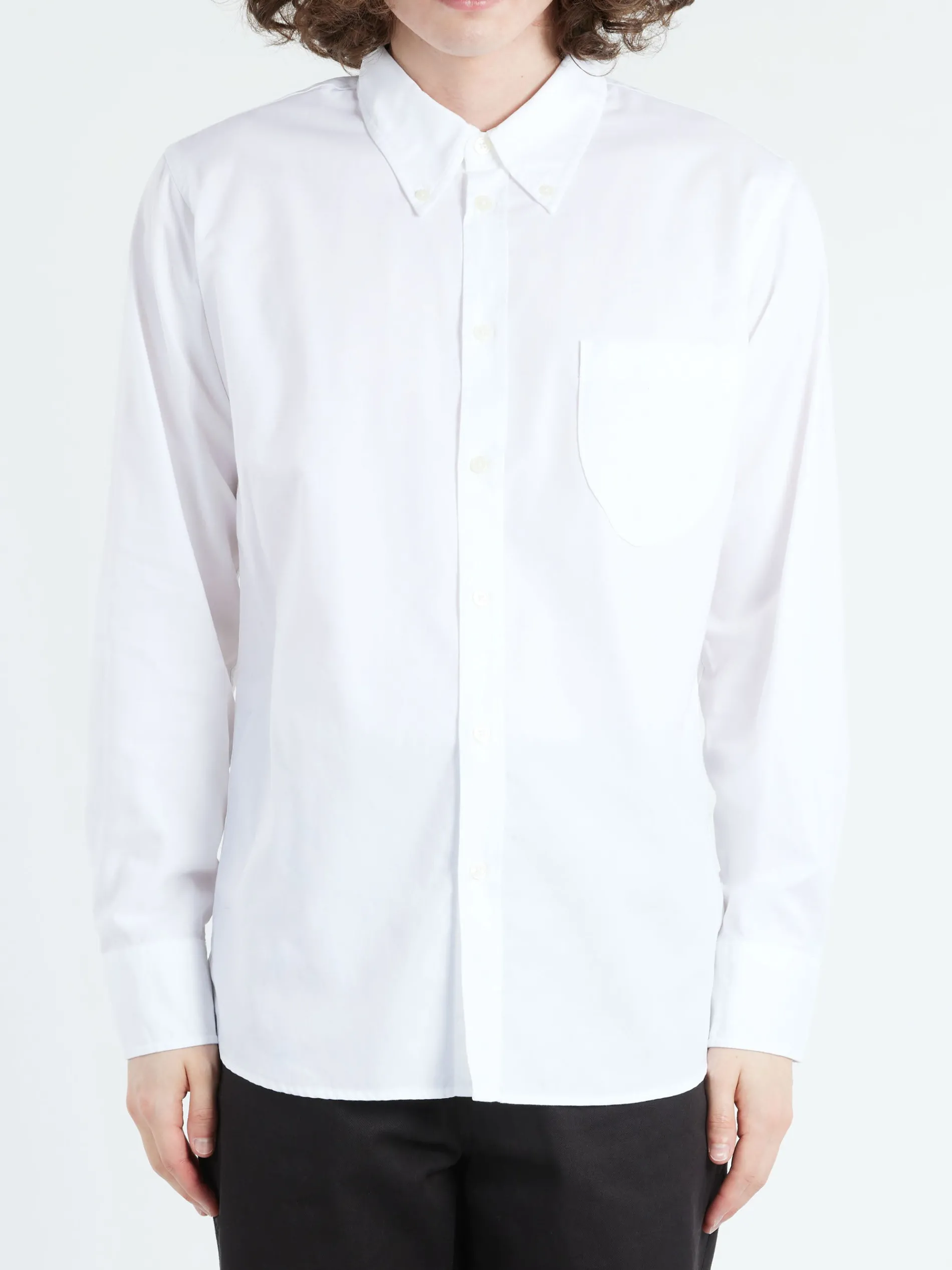 A regular fit, button-down with two piece collar, irregular chest pocket and rear box pleat.