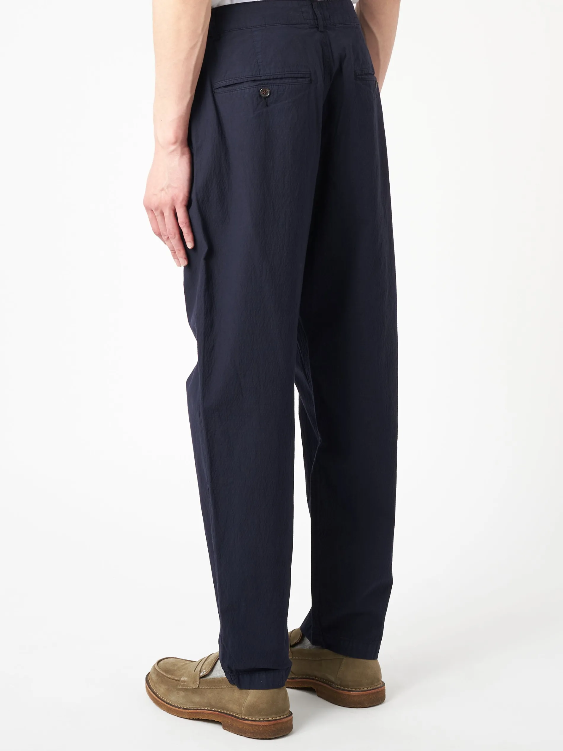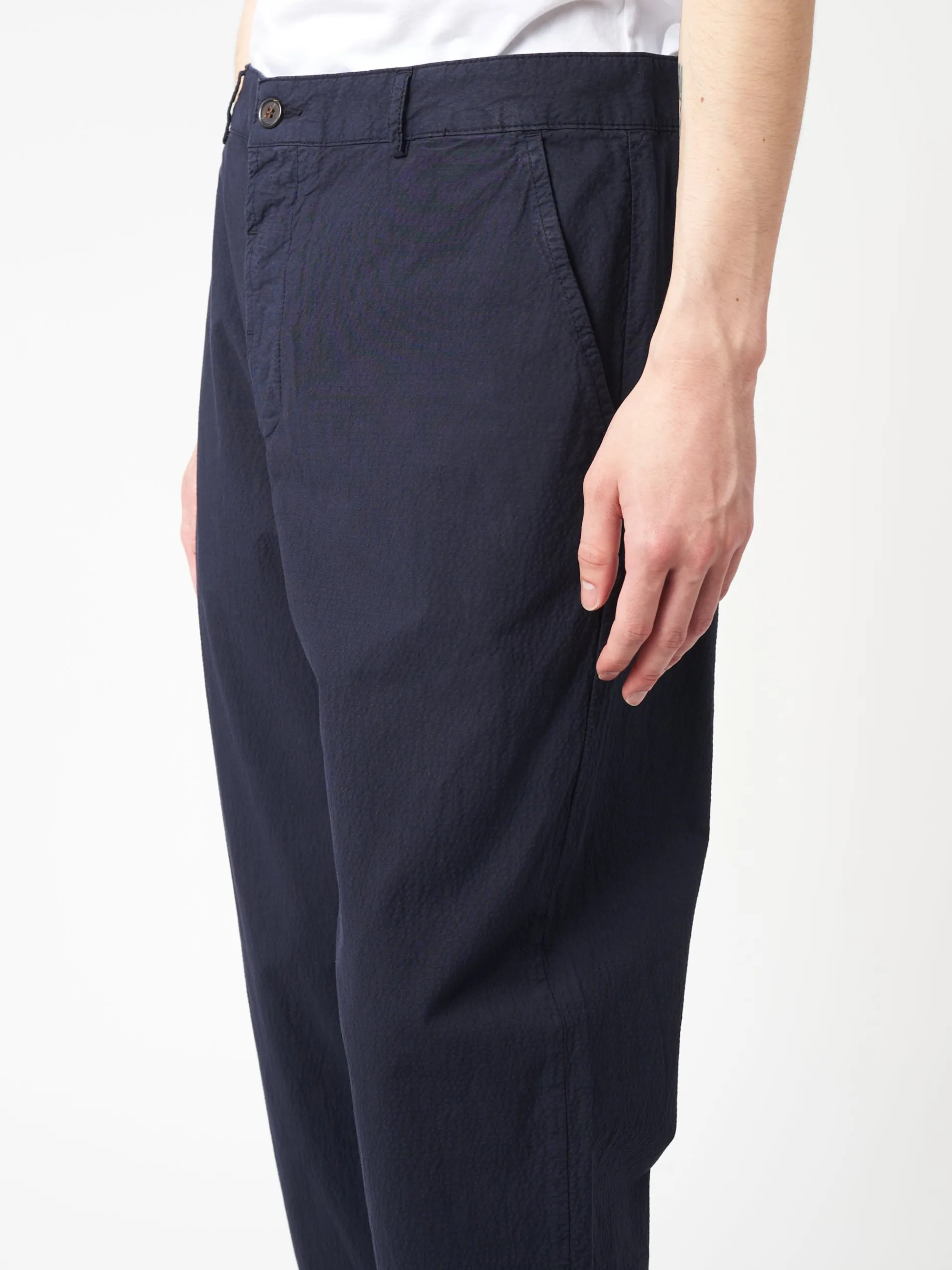 Contemporary classic, great-fitting trouser shape. Crafted from high-quality summer-weight cotton, this fabric features a subtly irregular seersucker finish, providing a unique texture. With comfortable stretch, it effortlessly accommodates ease of wear, making it an ideal choice for warmer days.