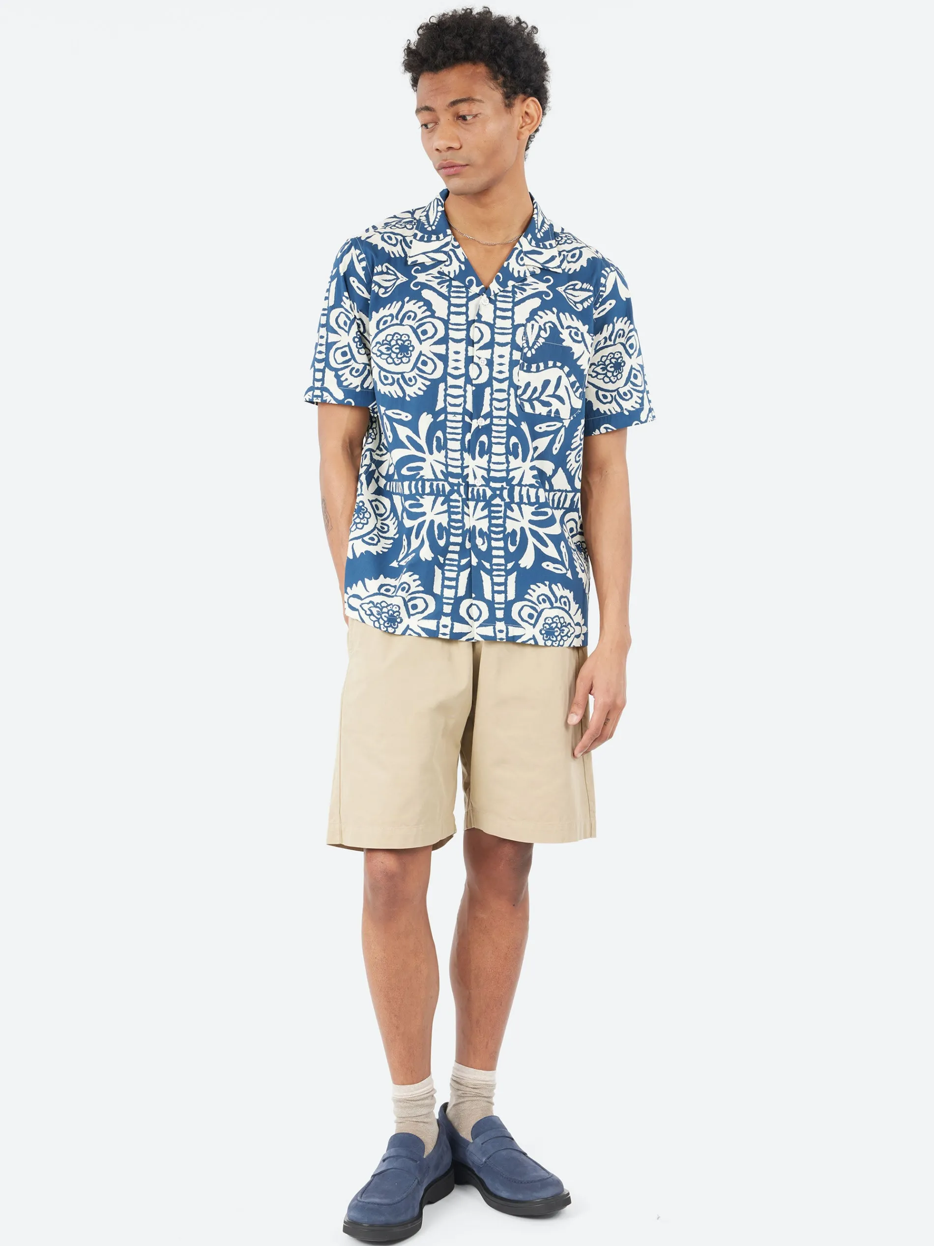 The Universal Works Simple Short is a pair of easy, comfortable shorts designed for everyday wear. They feature an elasticated drawstring waist for a customizable fit and sit above the knee. The shorts are reinforced with taping on the pockets for added durability and strength.