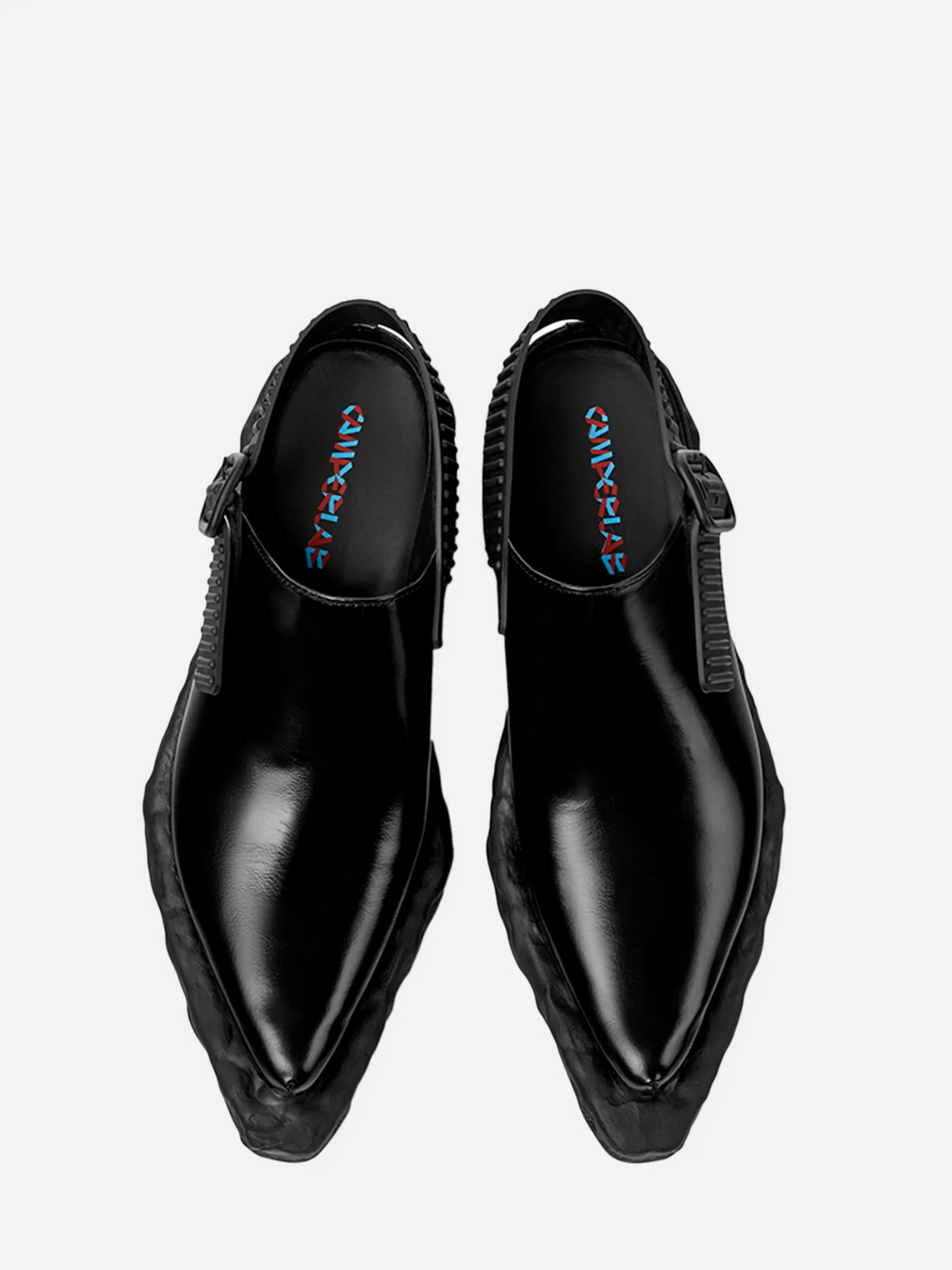 CamperLAB leather clogs with slingback straps and rubber outsoles.