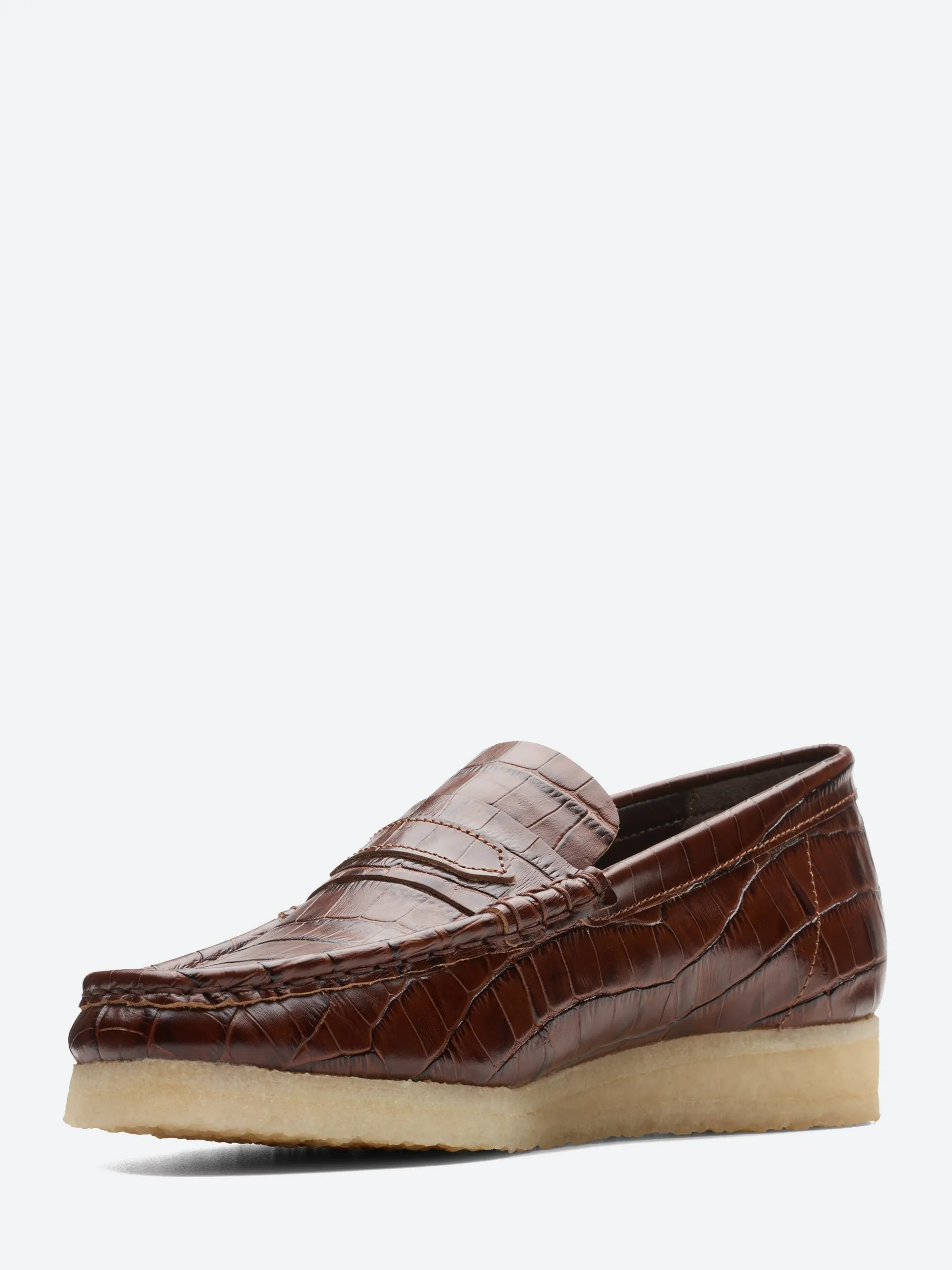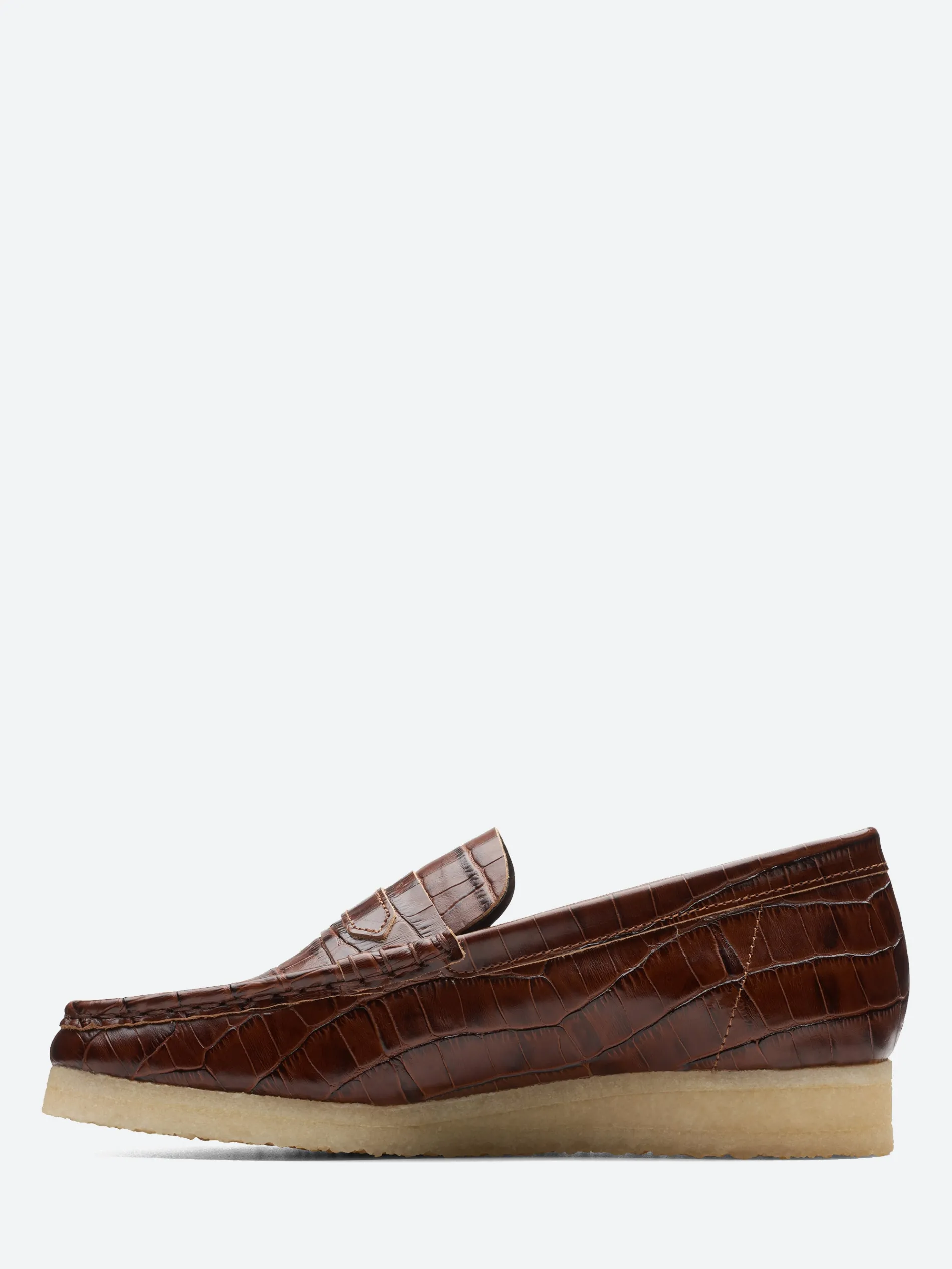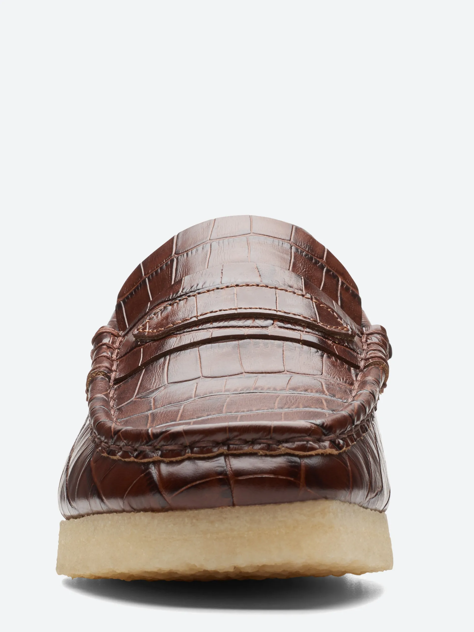 The Wallabee Loafer combines a vintage-inspired croc-effect upper with a chunky crepe sole. Premium leather uppers in a refreshed brown colourway make for effortless styling – while hand stitched apron seams enhance its crafted look.