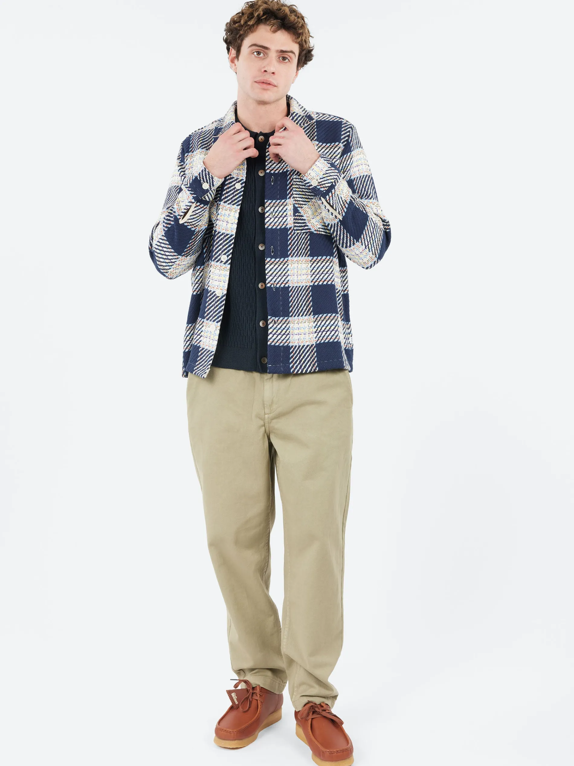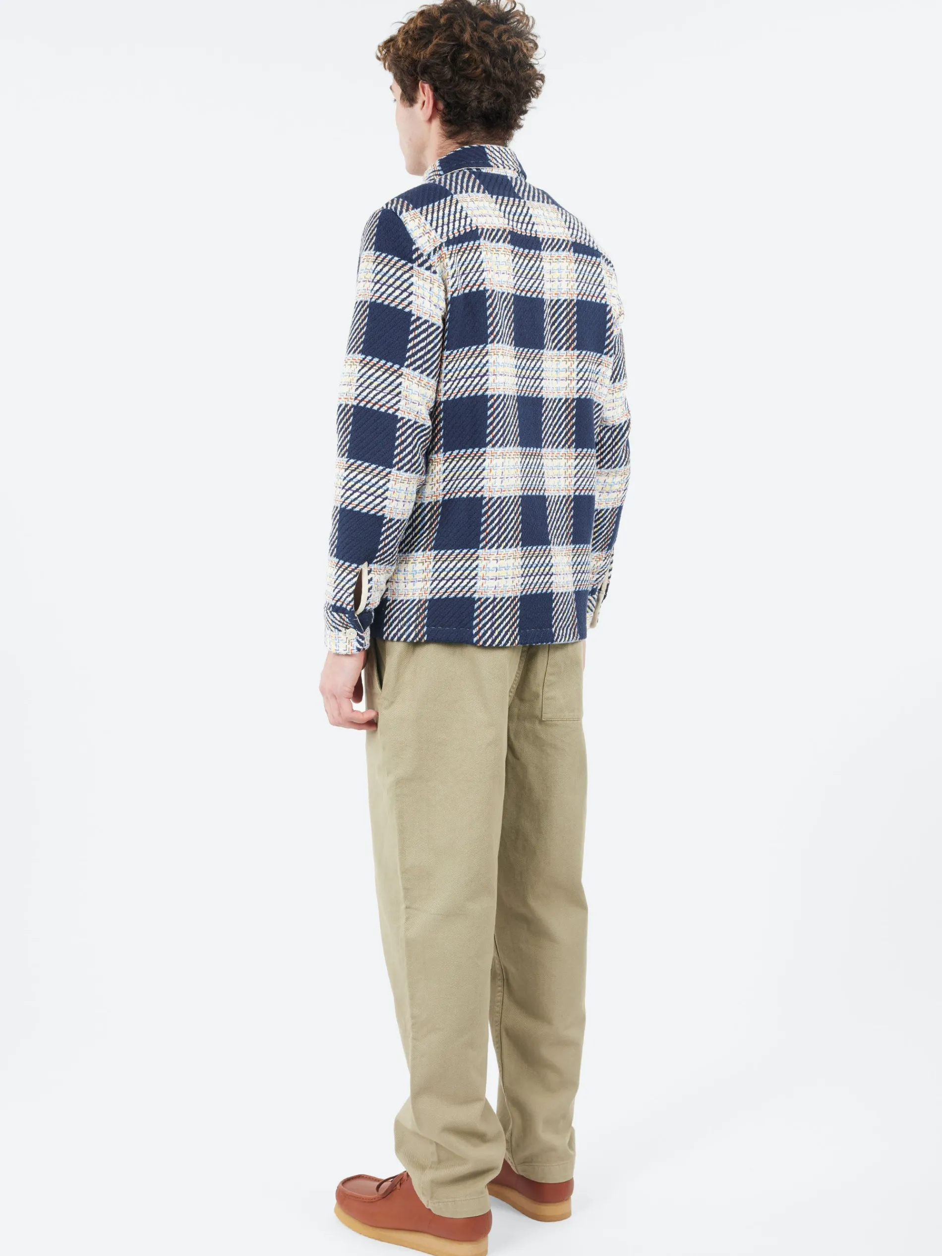 The Wax London signature piece. The Whiting, a year-round staple, returns in a new lake check woven design using mixes navy, ecru, red and yellow yarns. This fabric is made sustainably by a family-run French mill using recycled cotton to create an effortlessly wearable overshirt that combines timeless style with responsible craftsmanship.