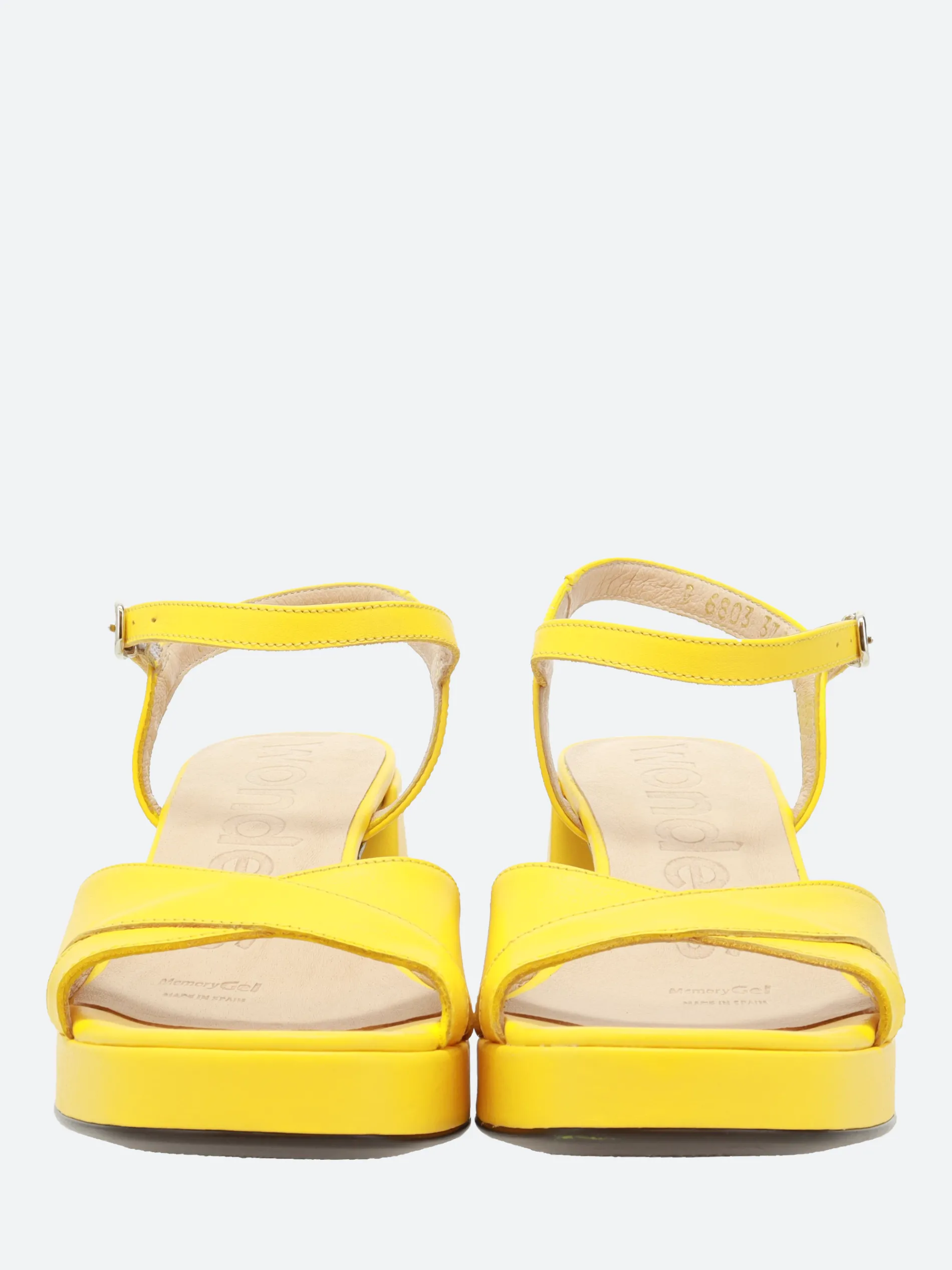 This dress sandal features a feminine design, with a strappy leather upper and ankle strap. It also boasts a comfortable flared block heel and platform for ease of wear.